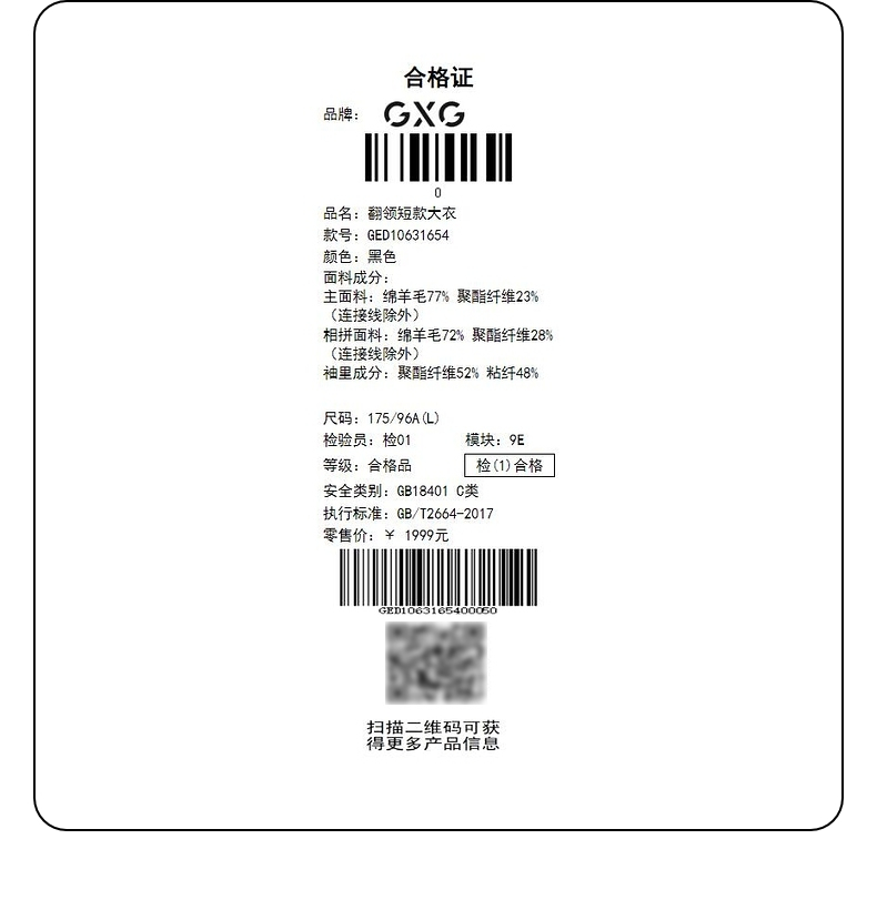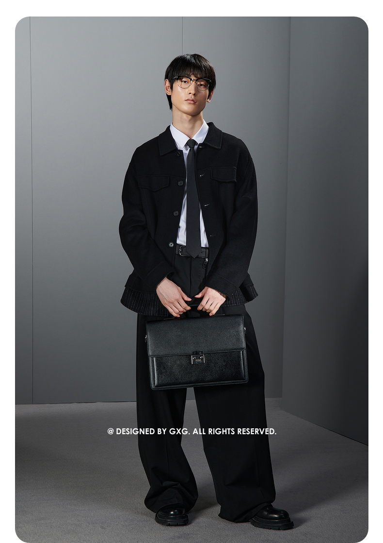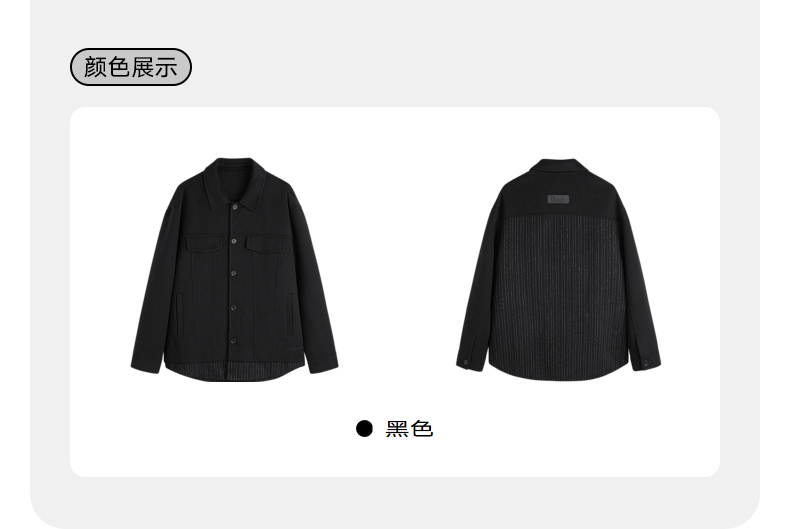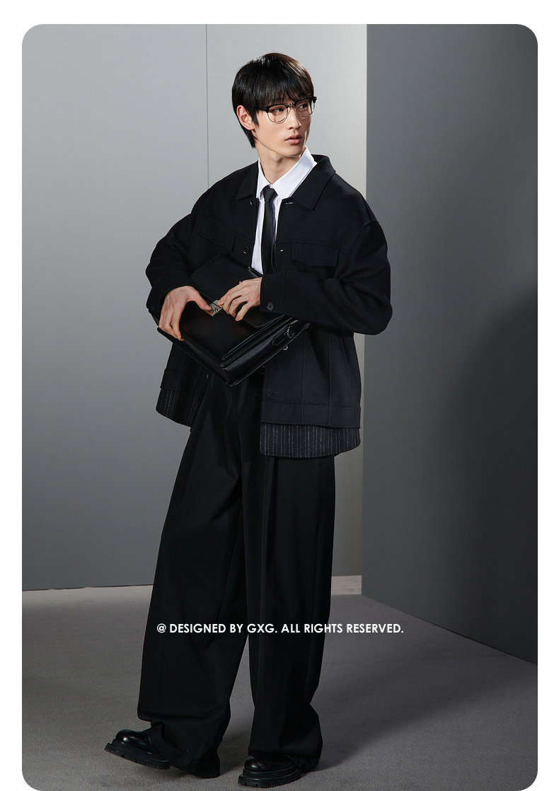 GXG男装 黑色拼接宽松含羊毛时尚短大衣毛呢外套 冬季热卖气质大衣
