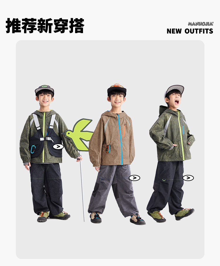 马拉丁旗下的城市户外潮童品牌,为3-12岁的孩子提供实用与细节设计的时尚度童装,打造现代简潮和城市户外感的着装,man游童年的冒险jia!