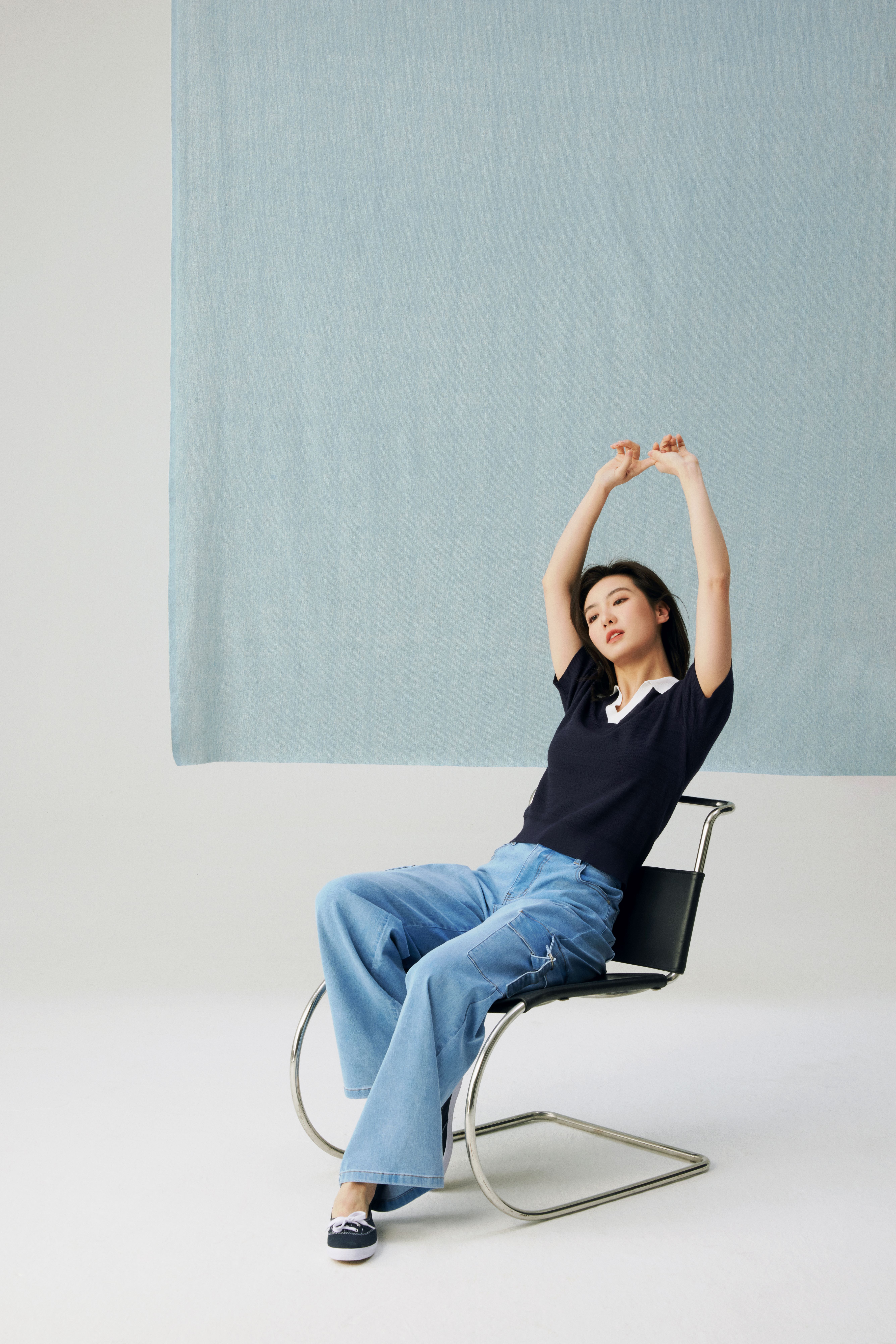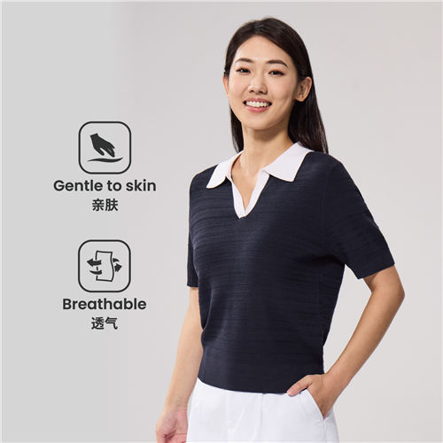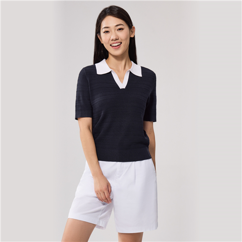 佐丹奴女装25年新款蔚蓝经典系列针织翻领上衣05355302