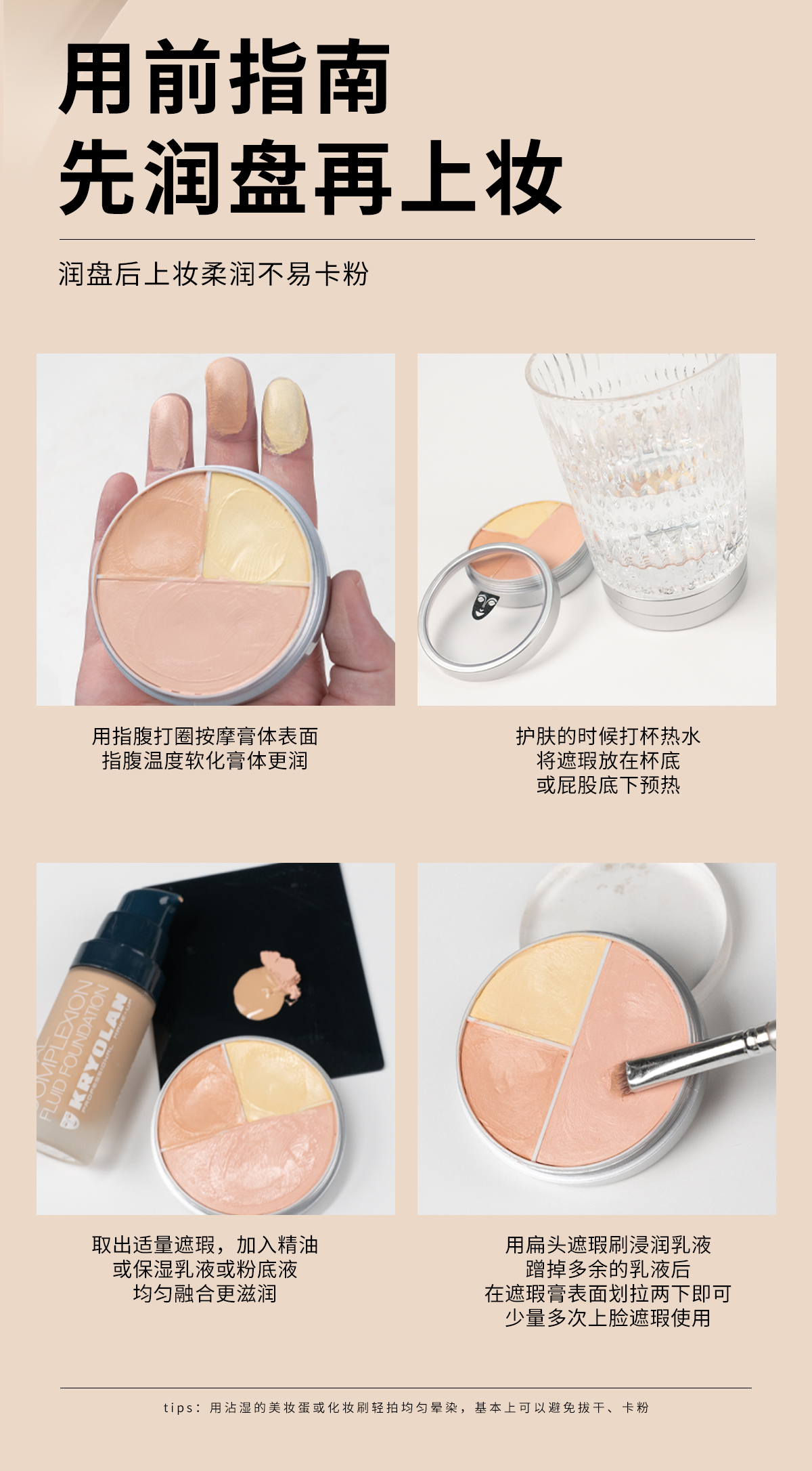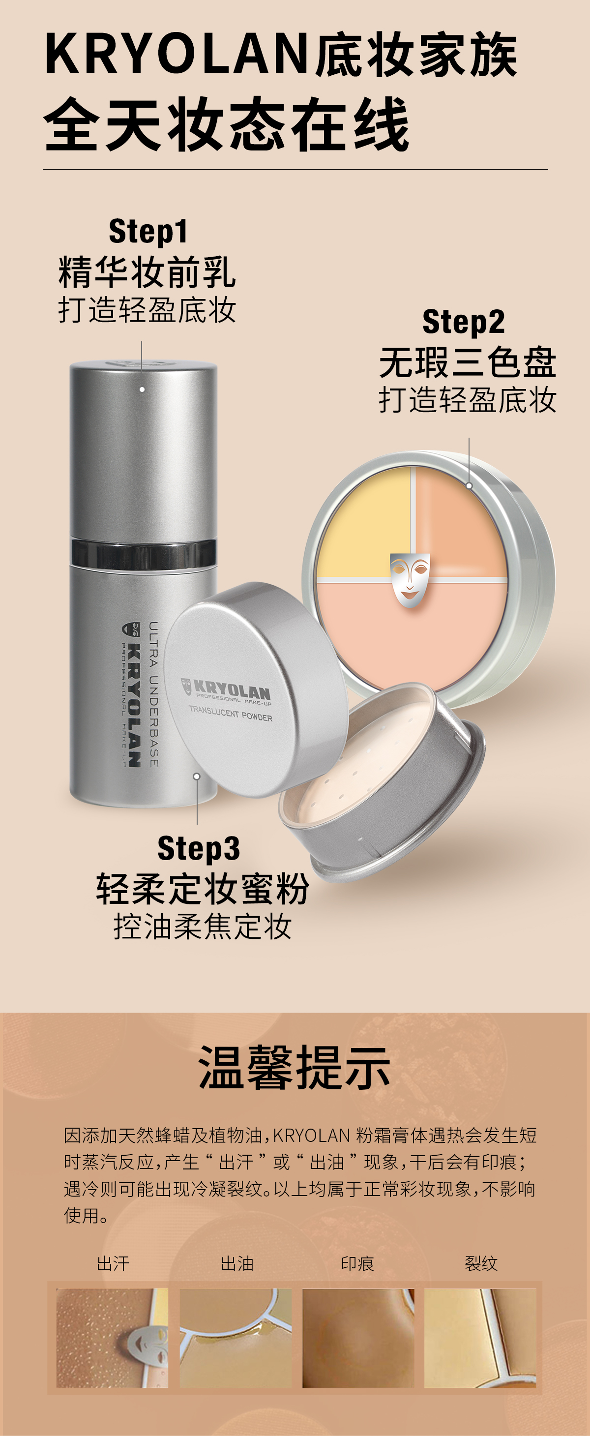 KRYOLAN德国面具 经典3色初学者眼影盘 大地色珠光哑光防水不晕染