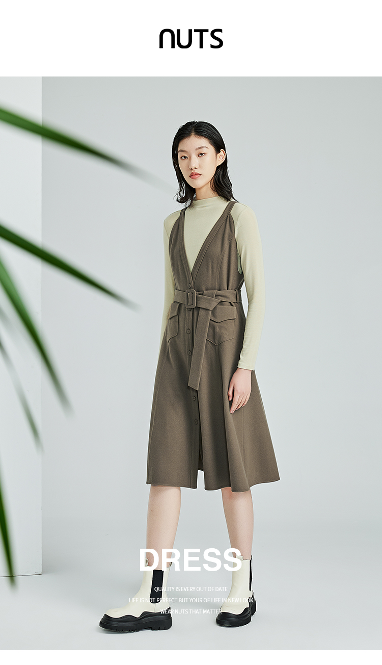 NUTS春季新品时尚气质百搭通勤两件套长袖连衣裙312103030B