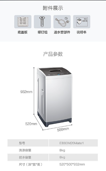 海尔(EB80M20Mate1)8公斤全自动家用波轮洗衣机 桶自洁 海立方内桶 智能双水位