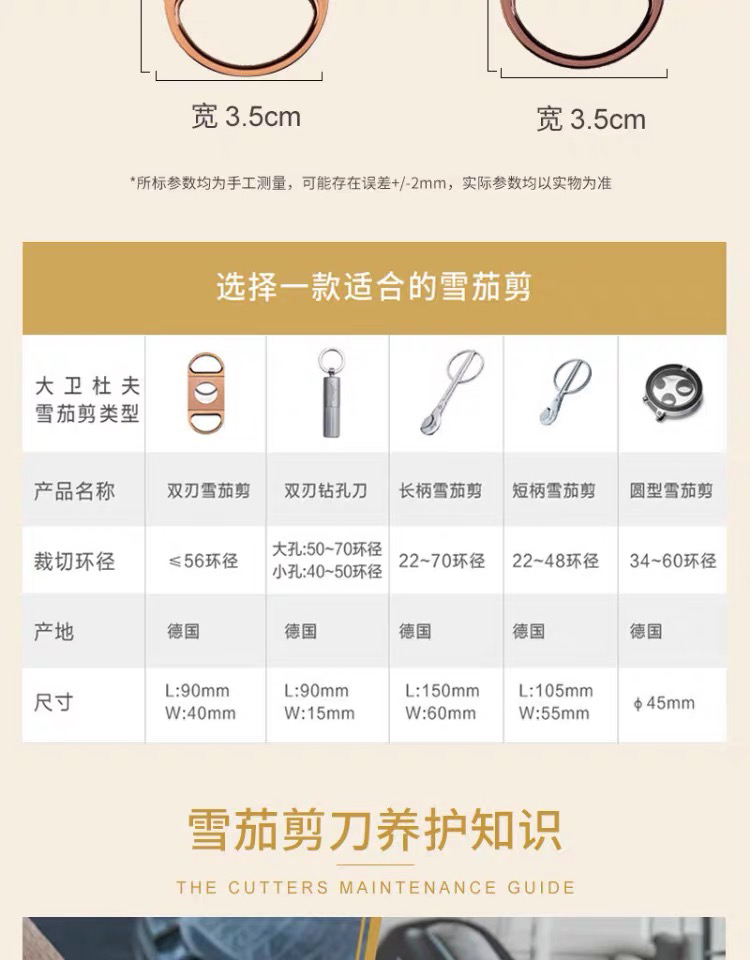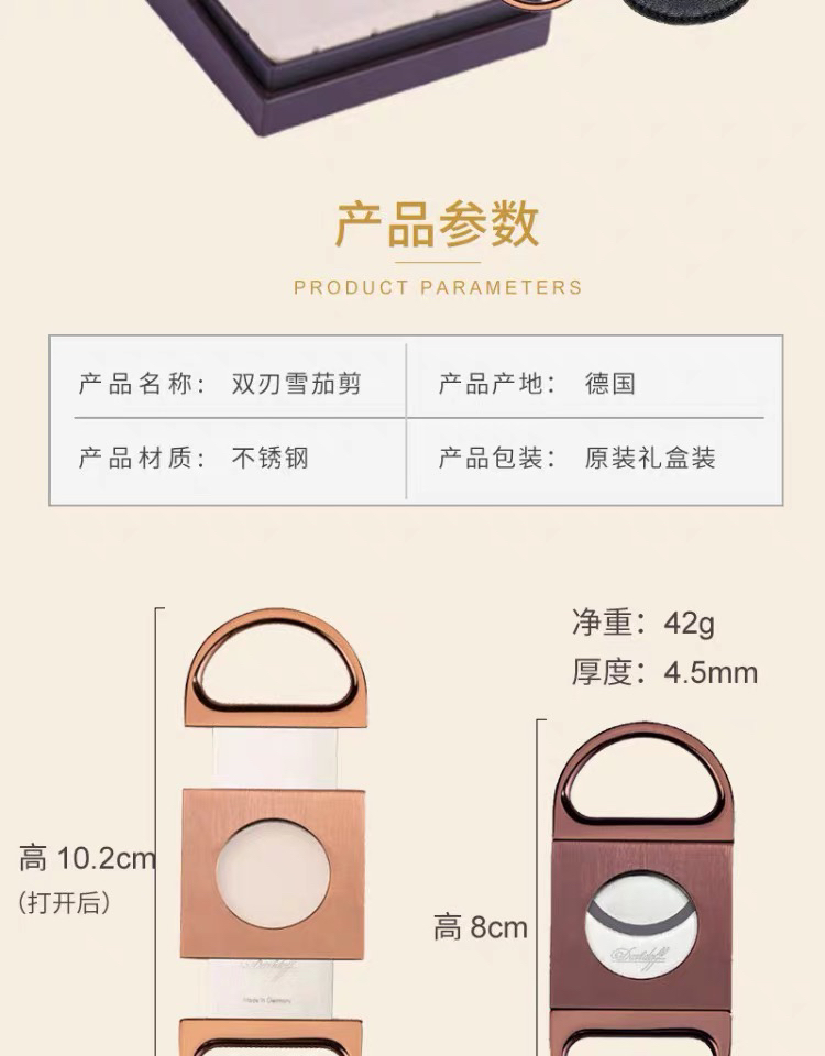 Davidoff/大卫杜夫双刃雪茄剪刀平口不锈钢德国进口
