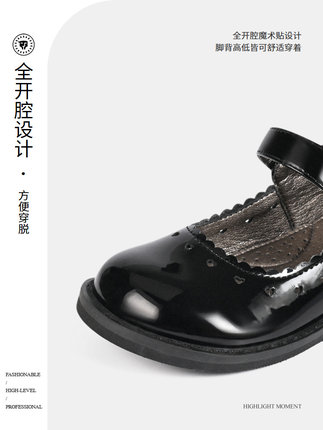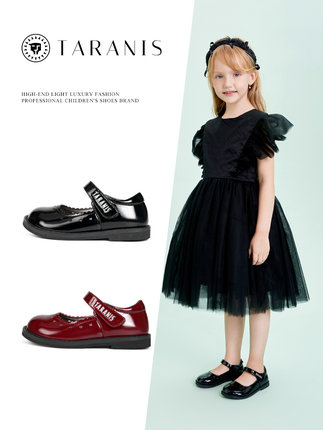 泰兰尼斯春季新款女童鞋儿童公主鞋黑色复古单鞋校园演出鞋小皮鞋
