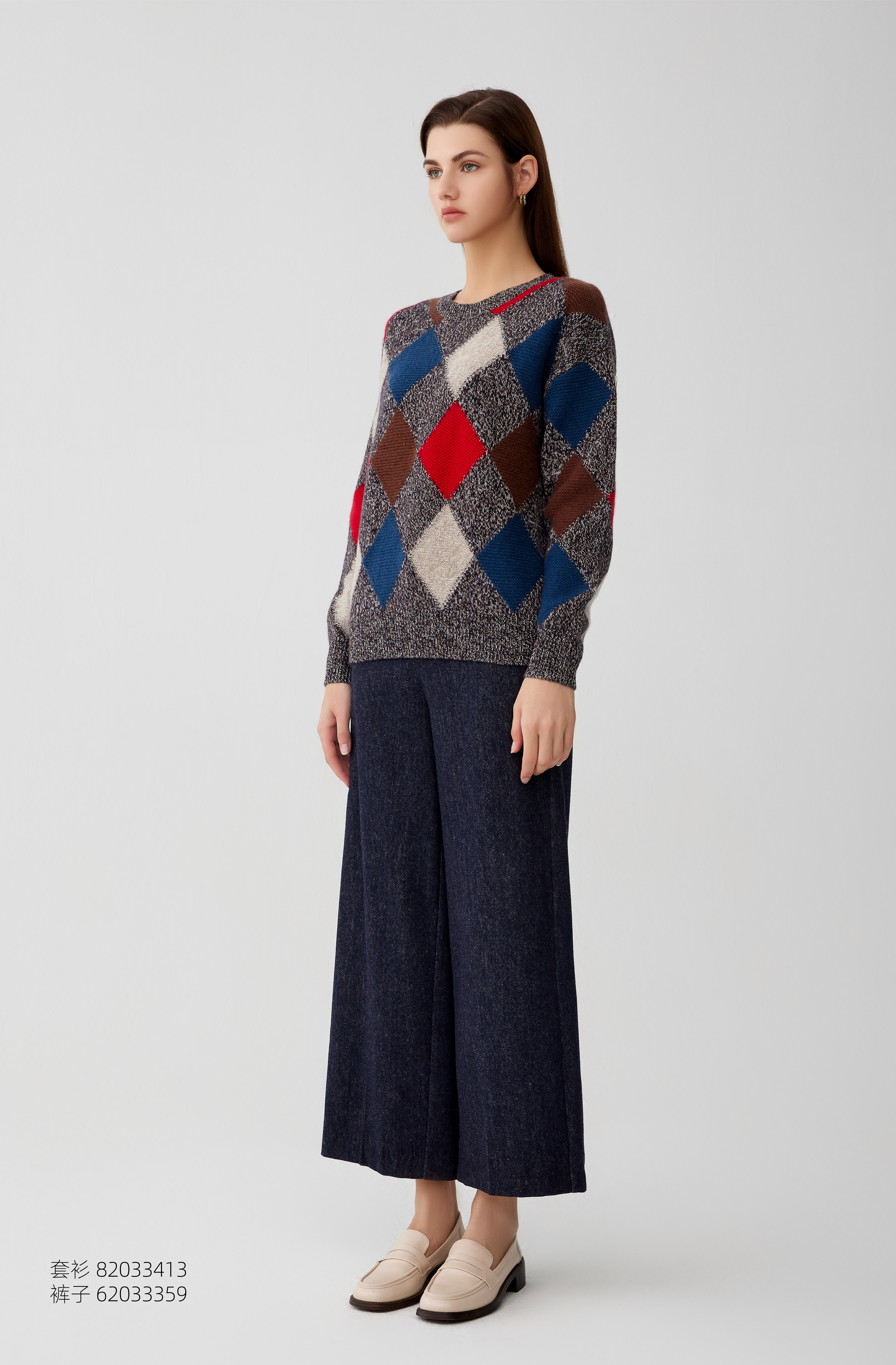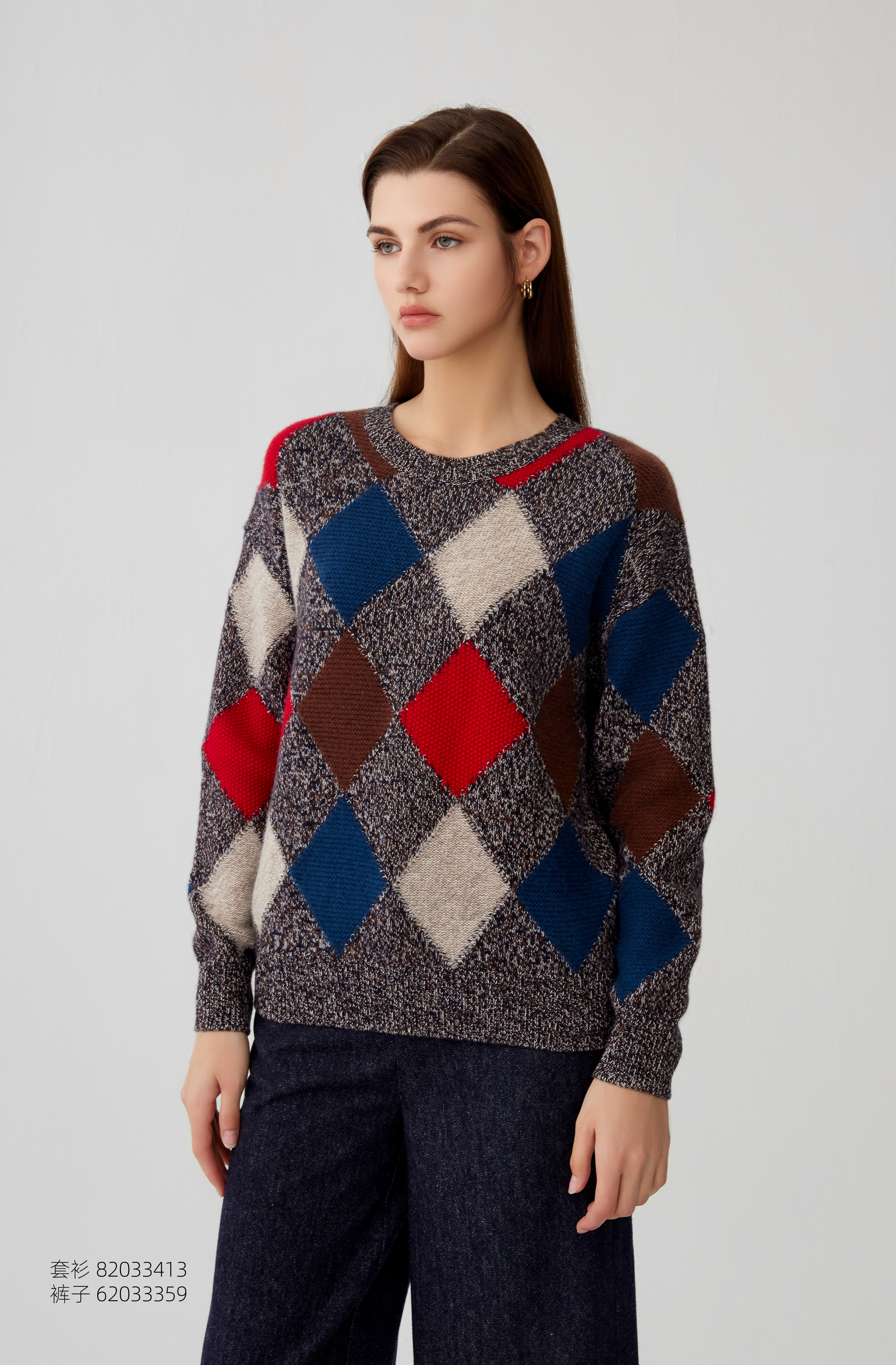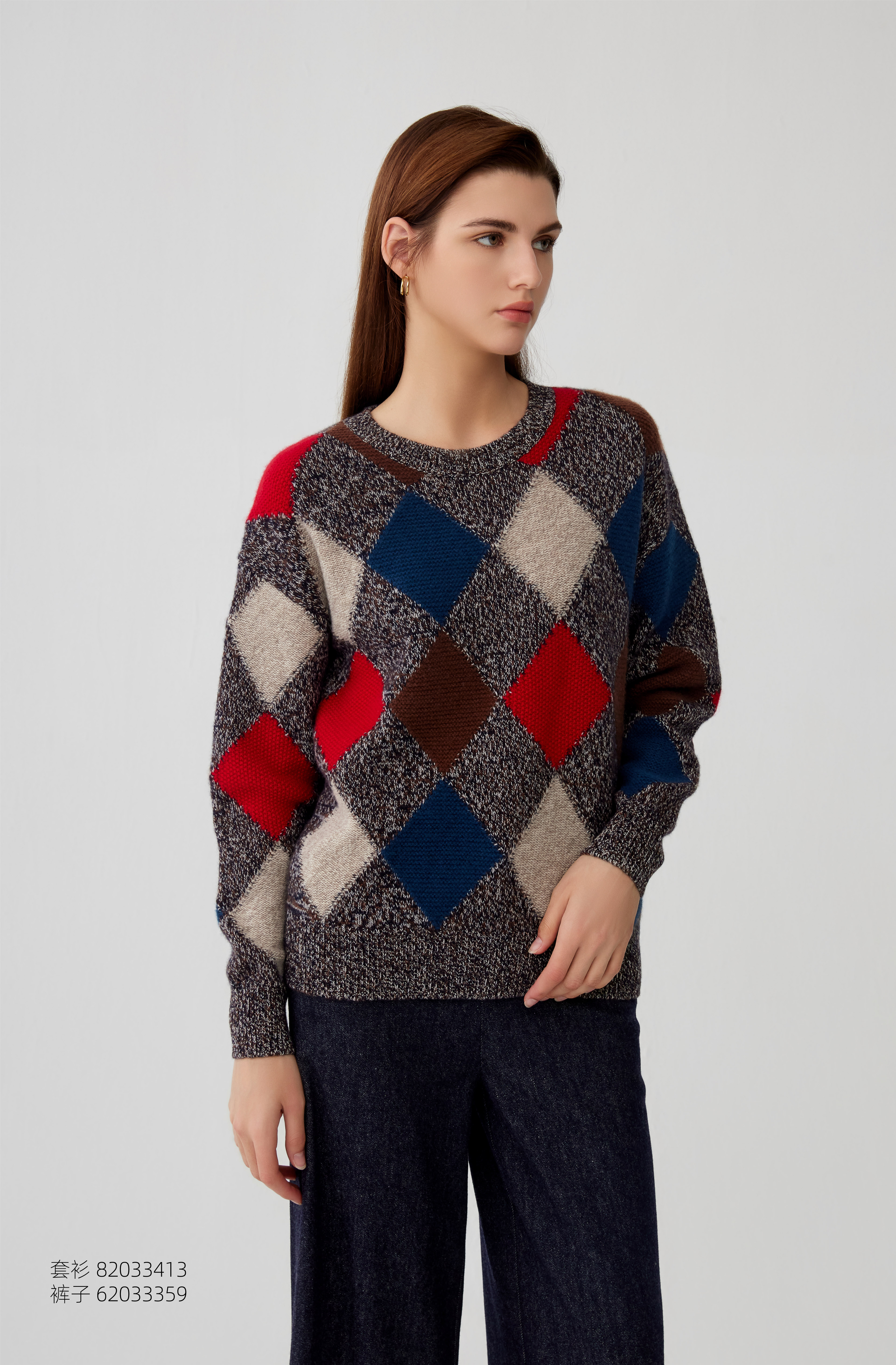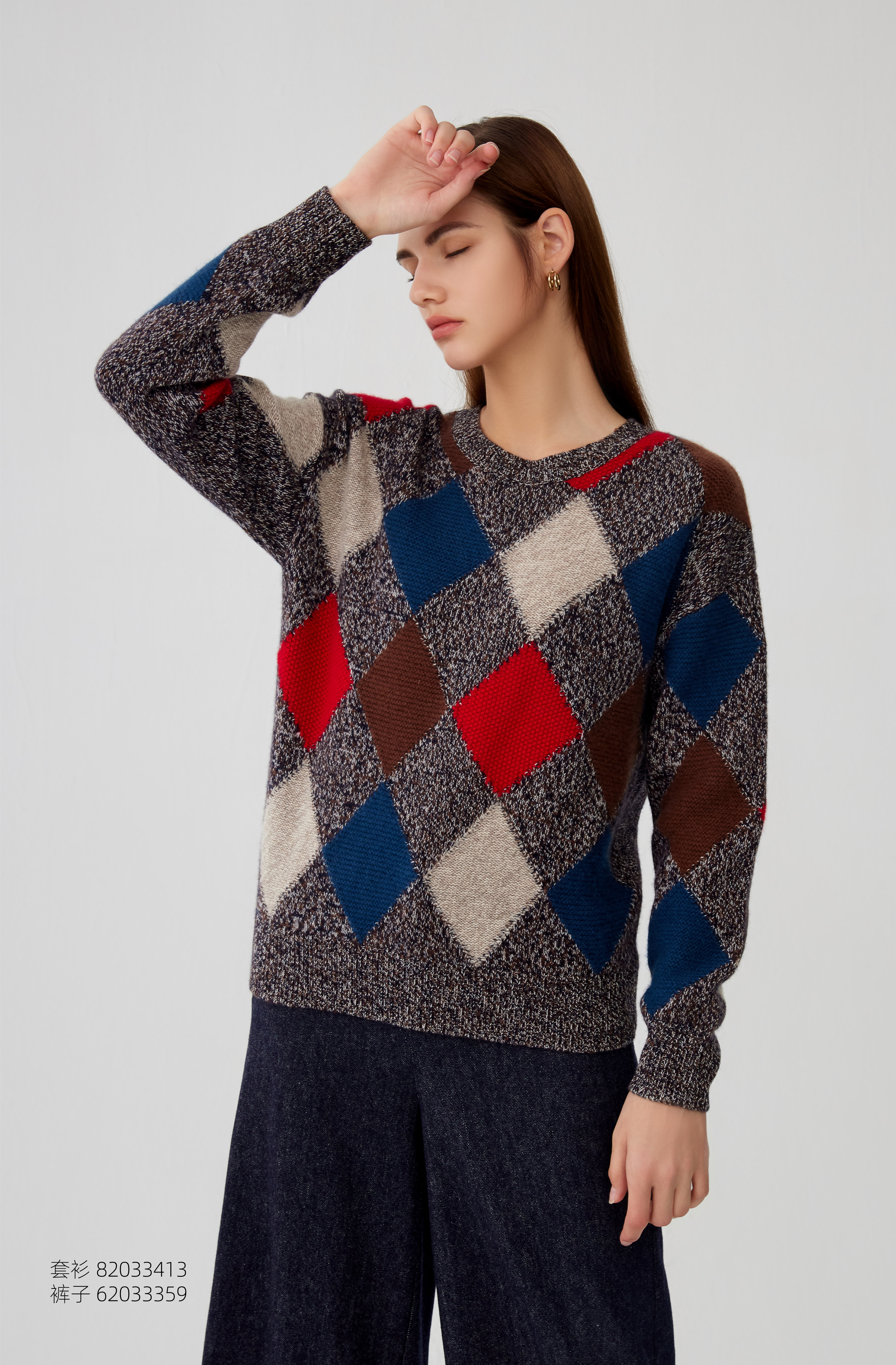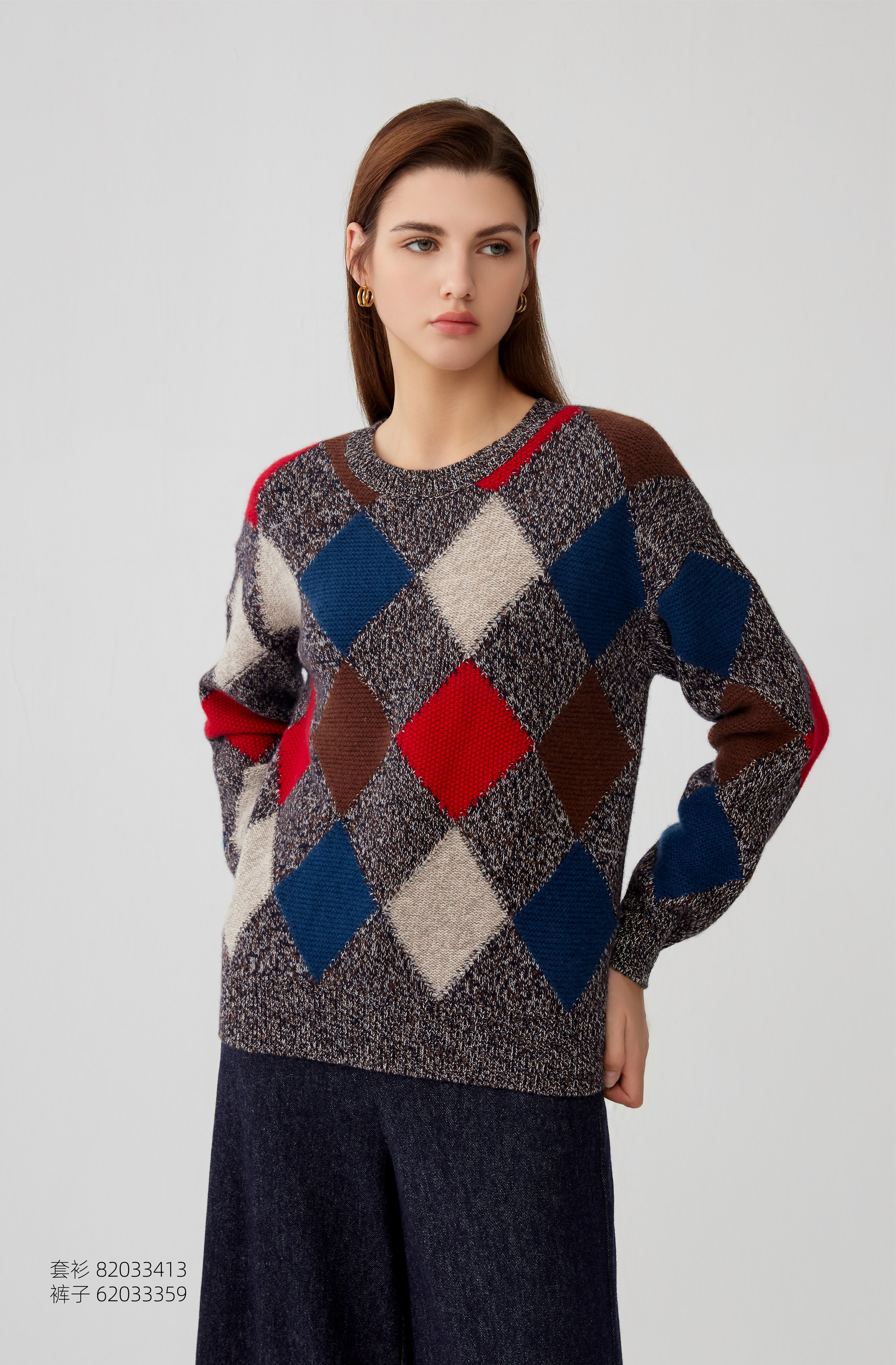 【菱形印花羊绒衫】羊绒世家秋冬新品女士100%山羊绒圆领内搭保暖毛衣