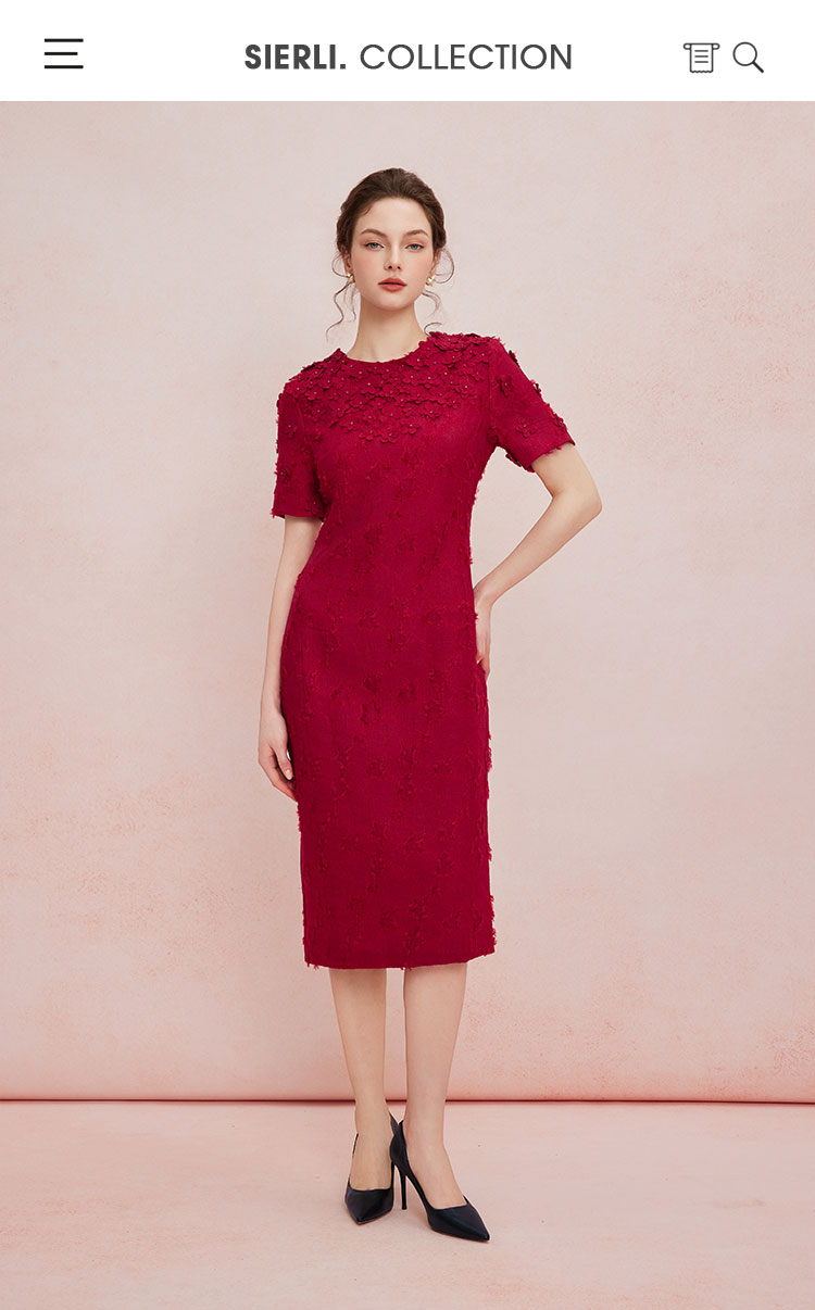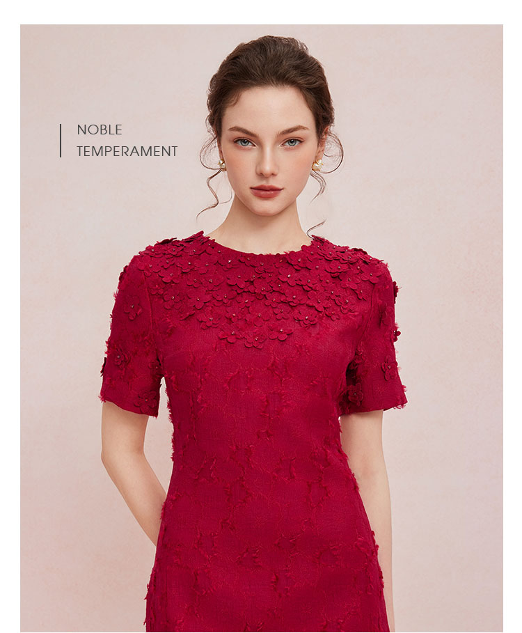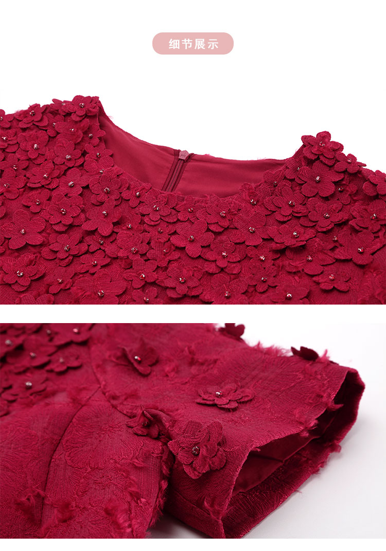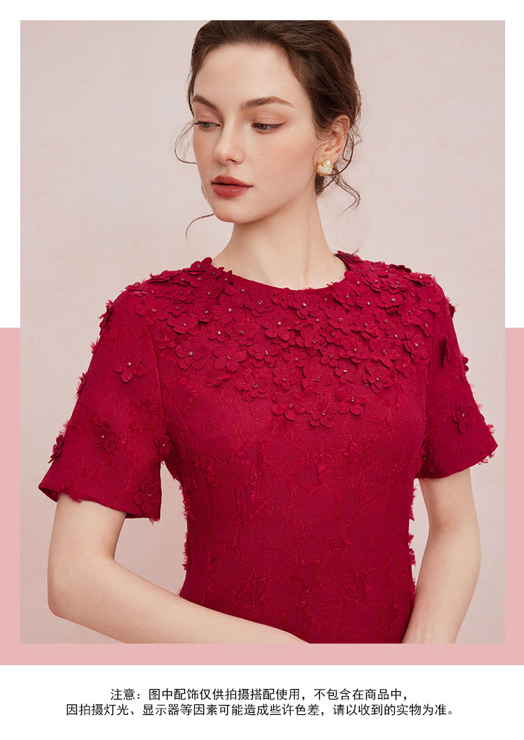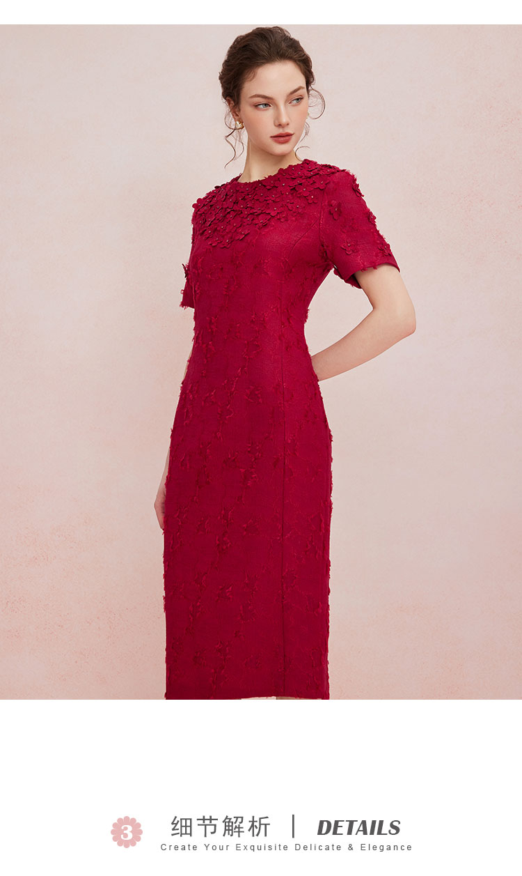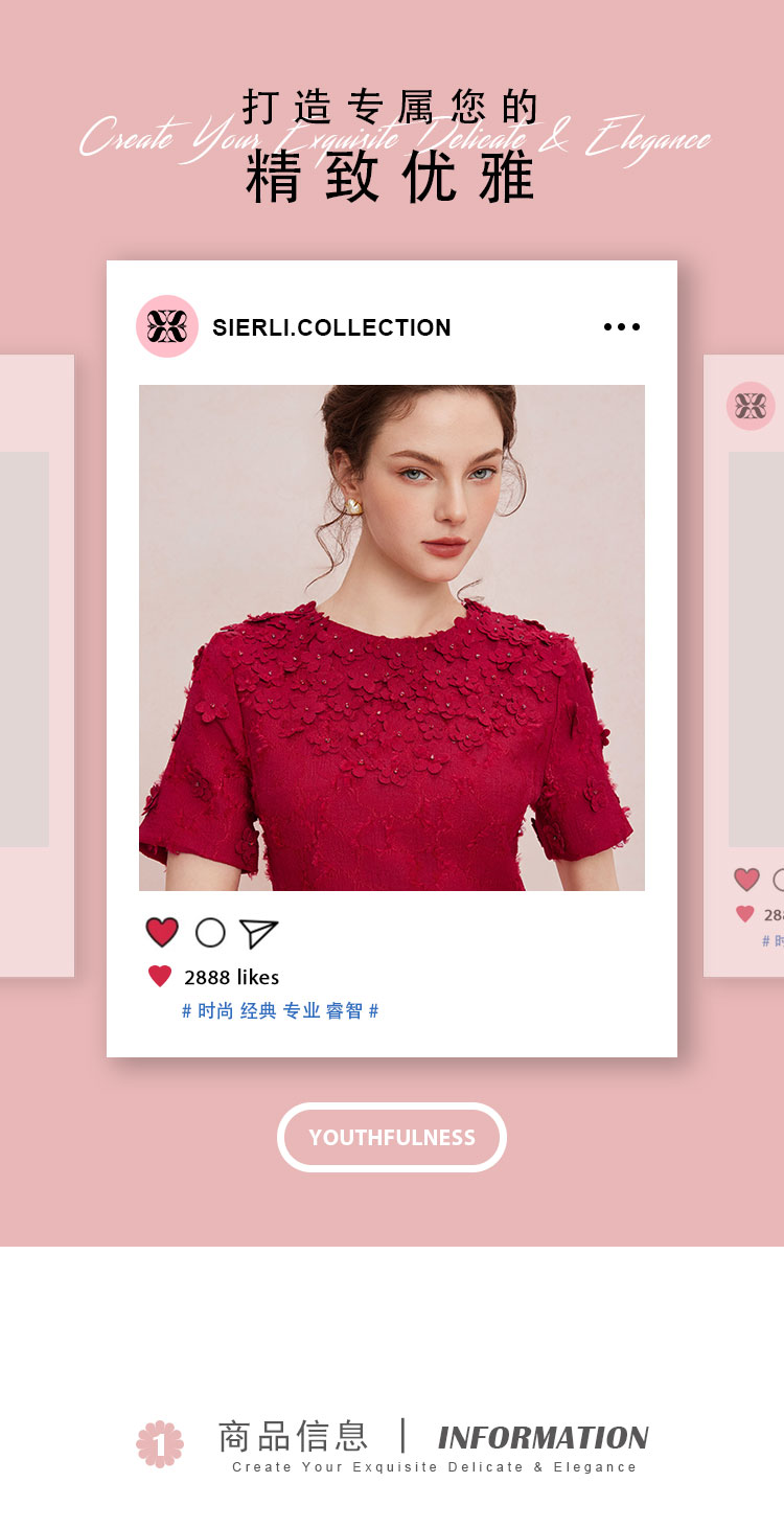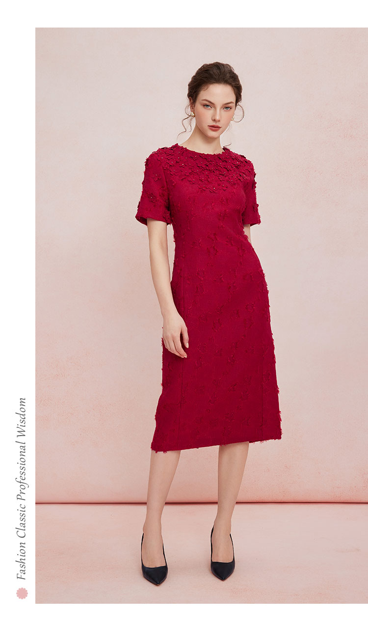 QF871斯尔丽2025夏季新款礼服商场同款礼服提花面料立体手工缝制连衣裙