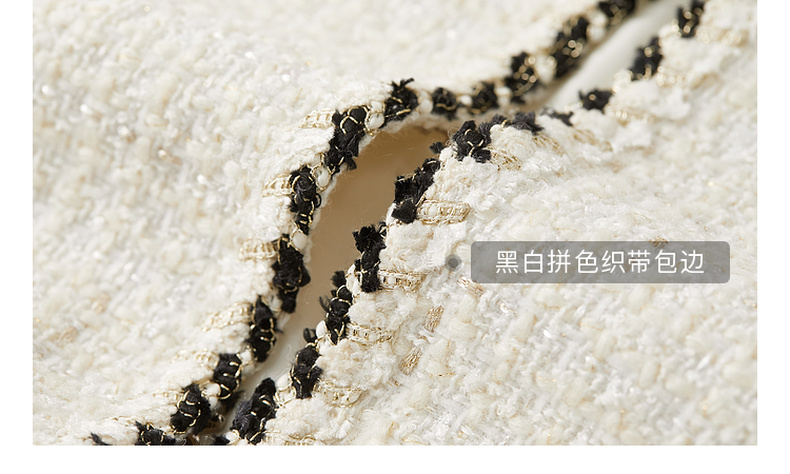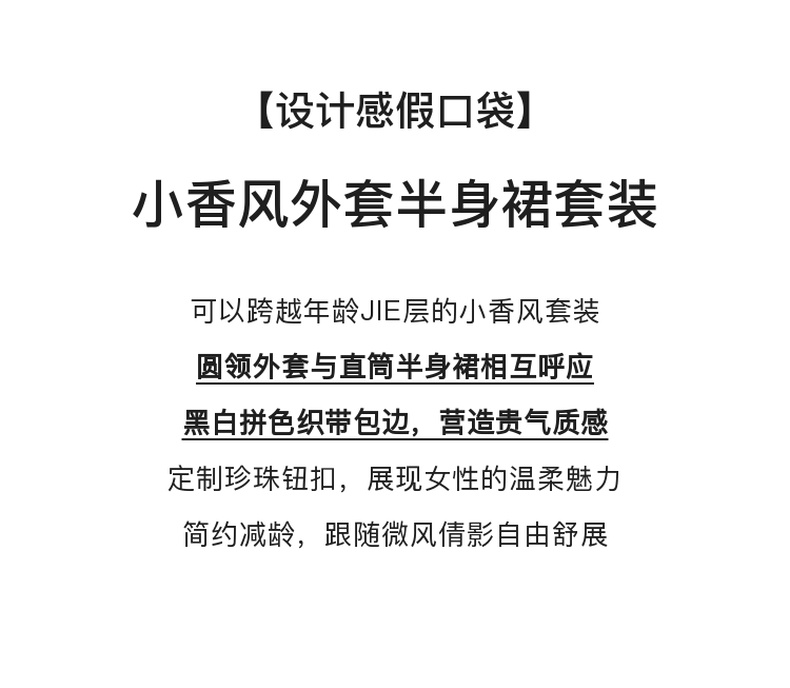 【内购】时尚优雅拼色织带圆领小香风外套直筒裙套装-153ZC3586X
