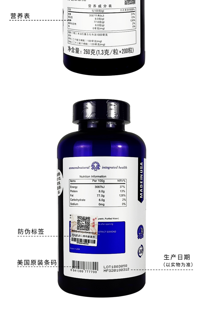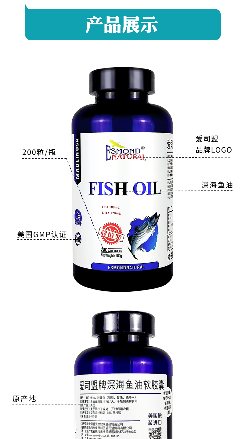 爱司盟 深海鱼油软胶囊Omega-3 每瓶200粒 现货(一般贸易)