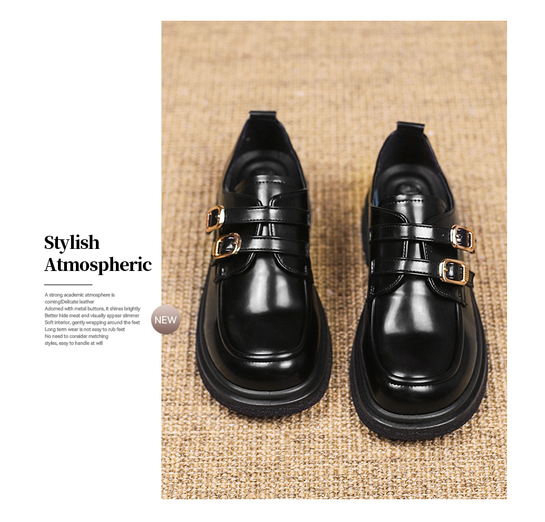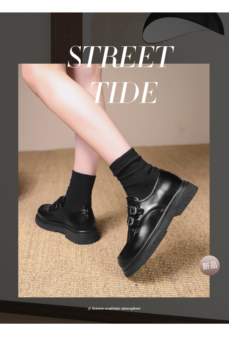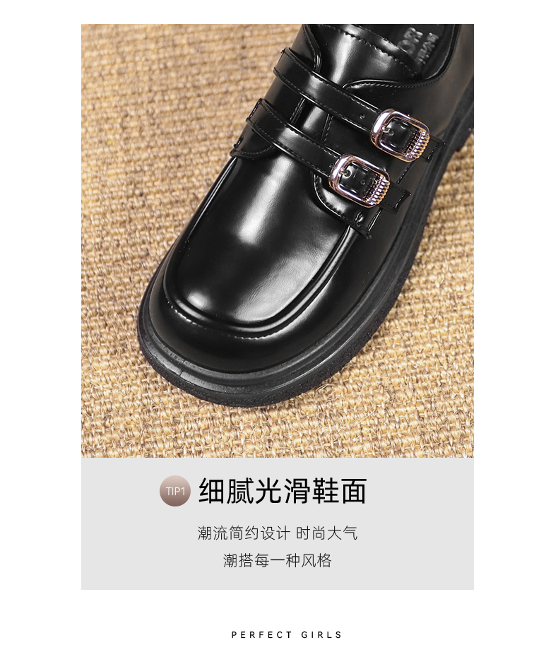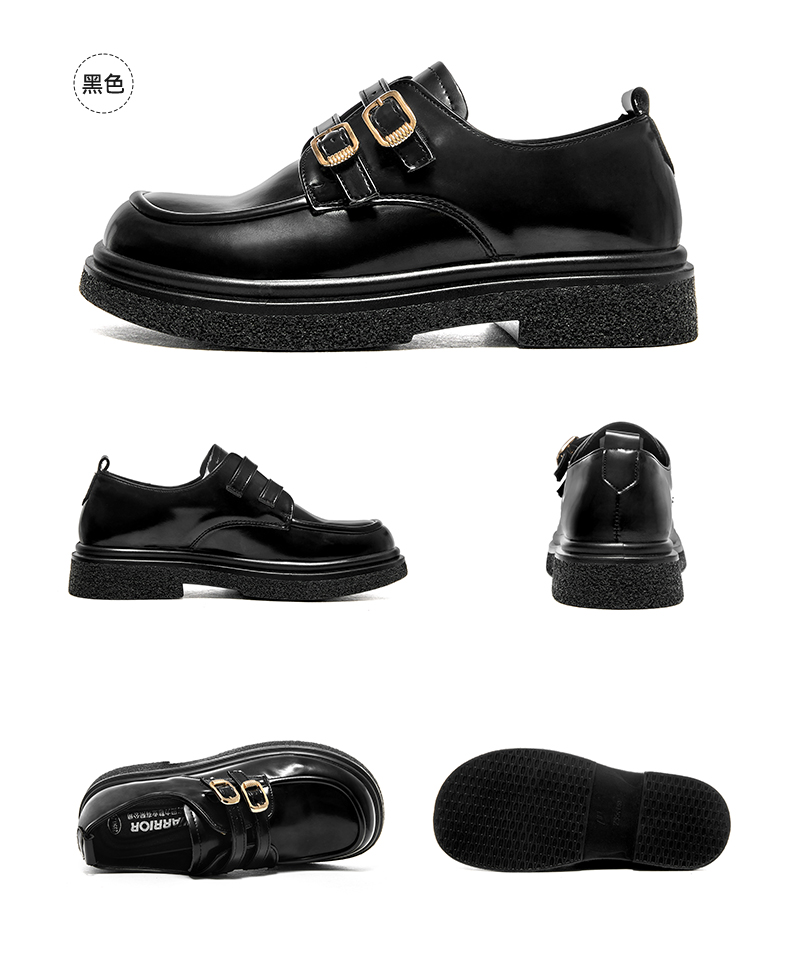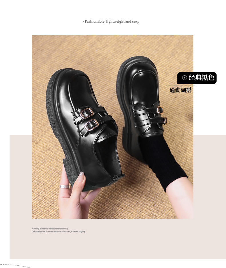 回力黑色乐福鞋女新款春秋厚底玛丽珍鞋黑色英伦风小皮鞋加绒1860