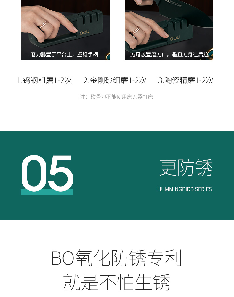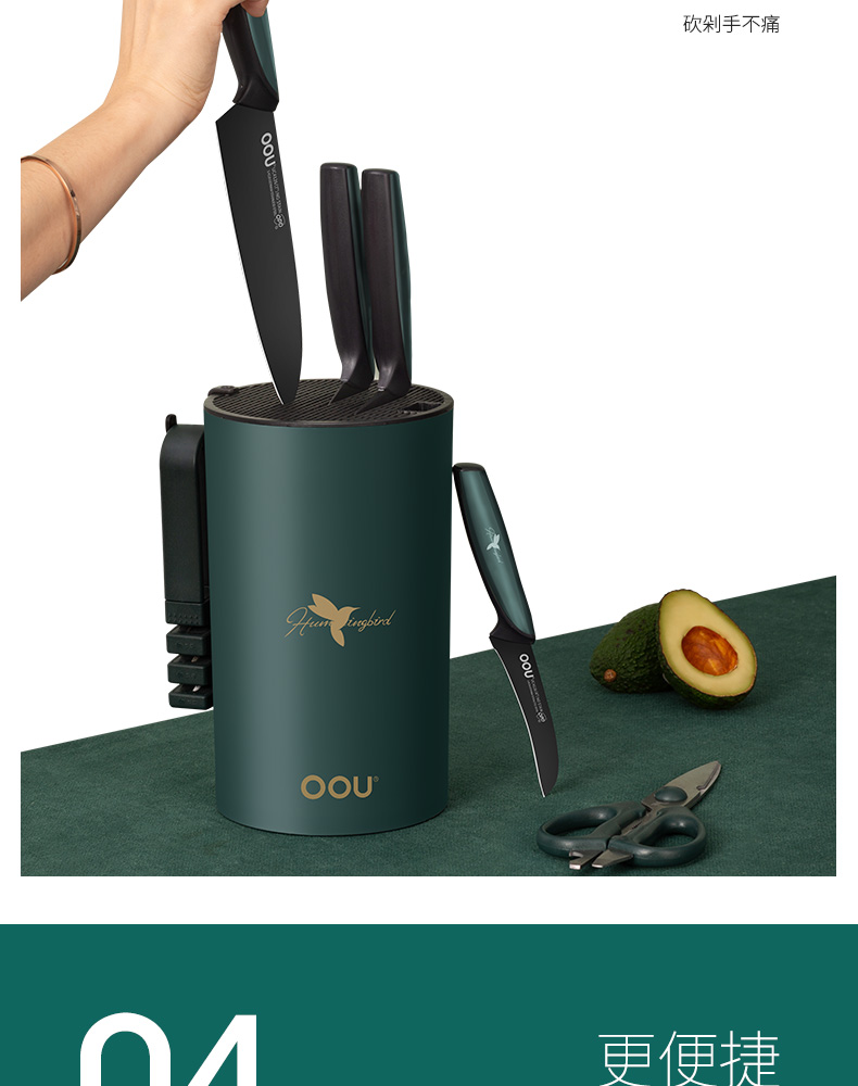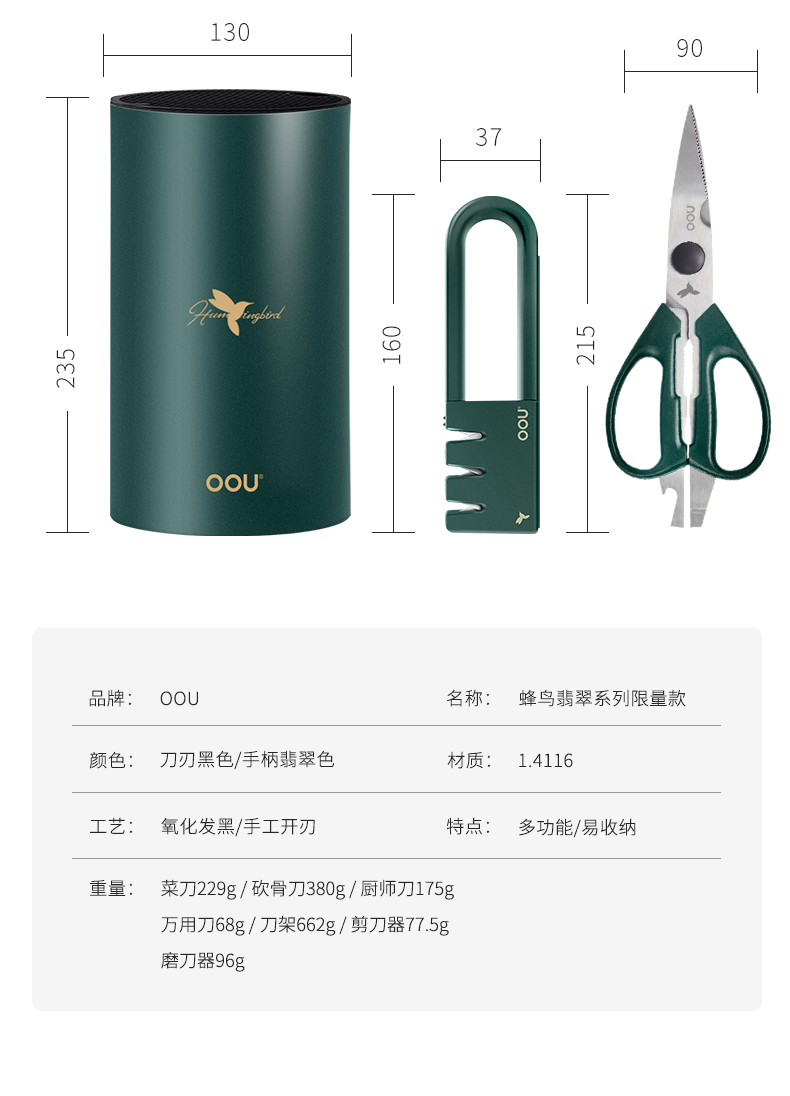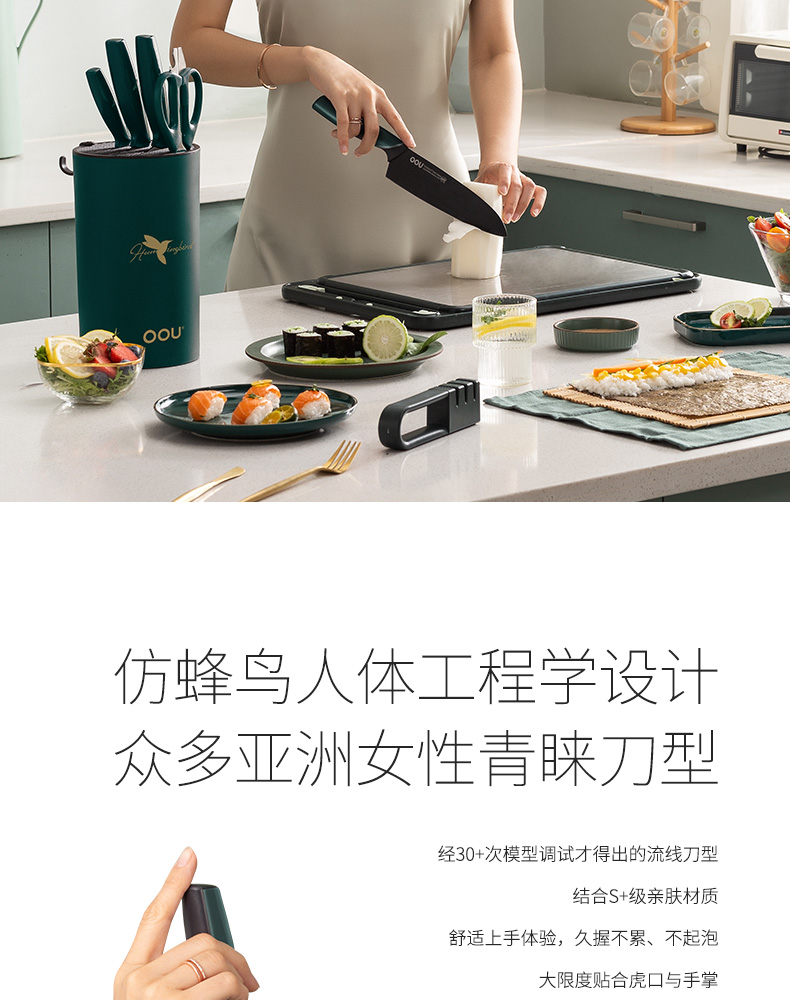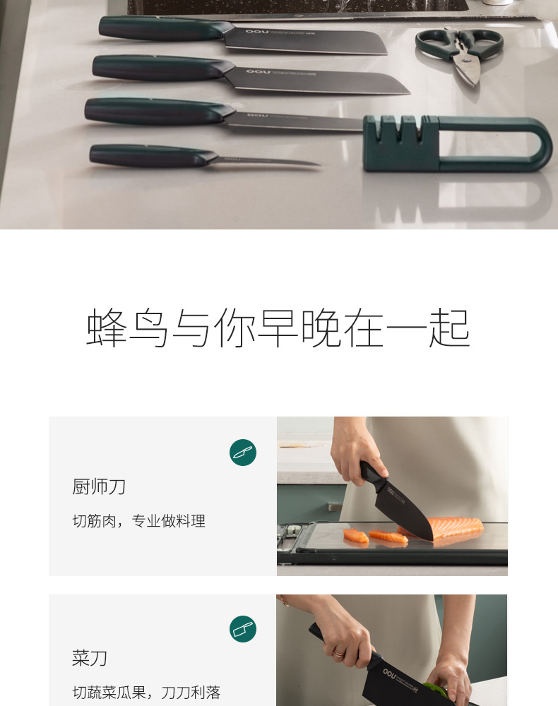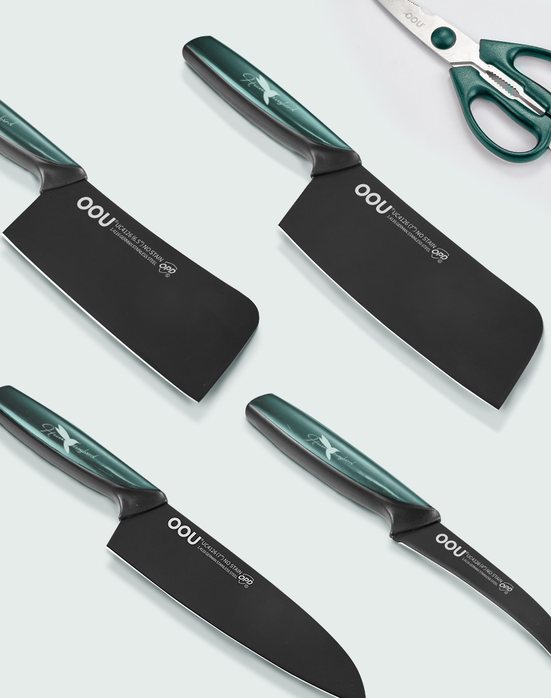 OOU!翡翠绿蜂鸟七件套厨房家用斩骨刀菜刀厨师刀水果刀全套组合厨具黑刀翡翠蜂鸟【德国钢7件套】