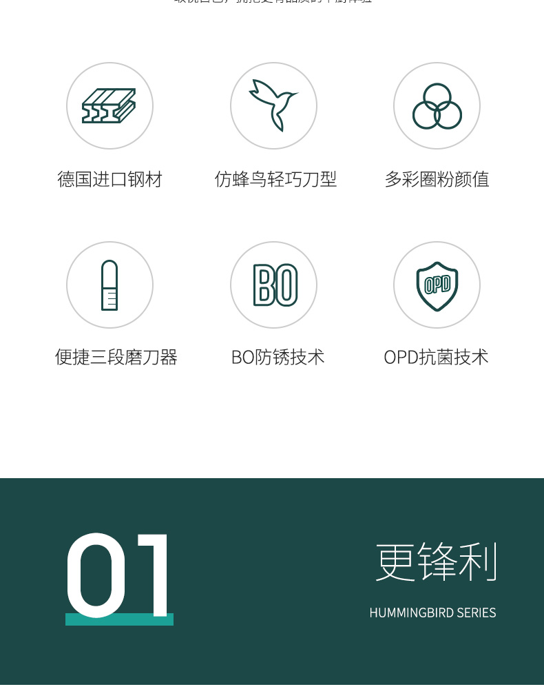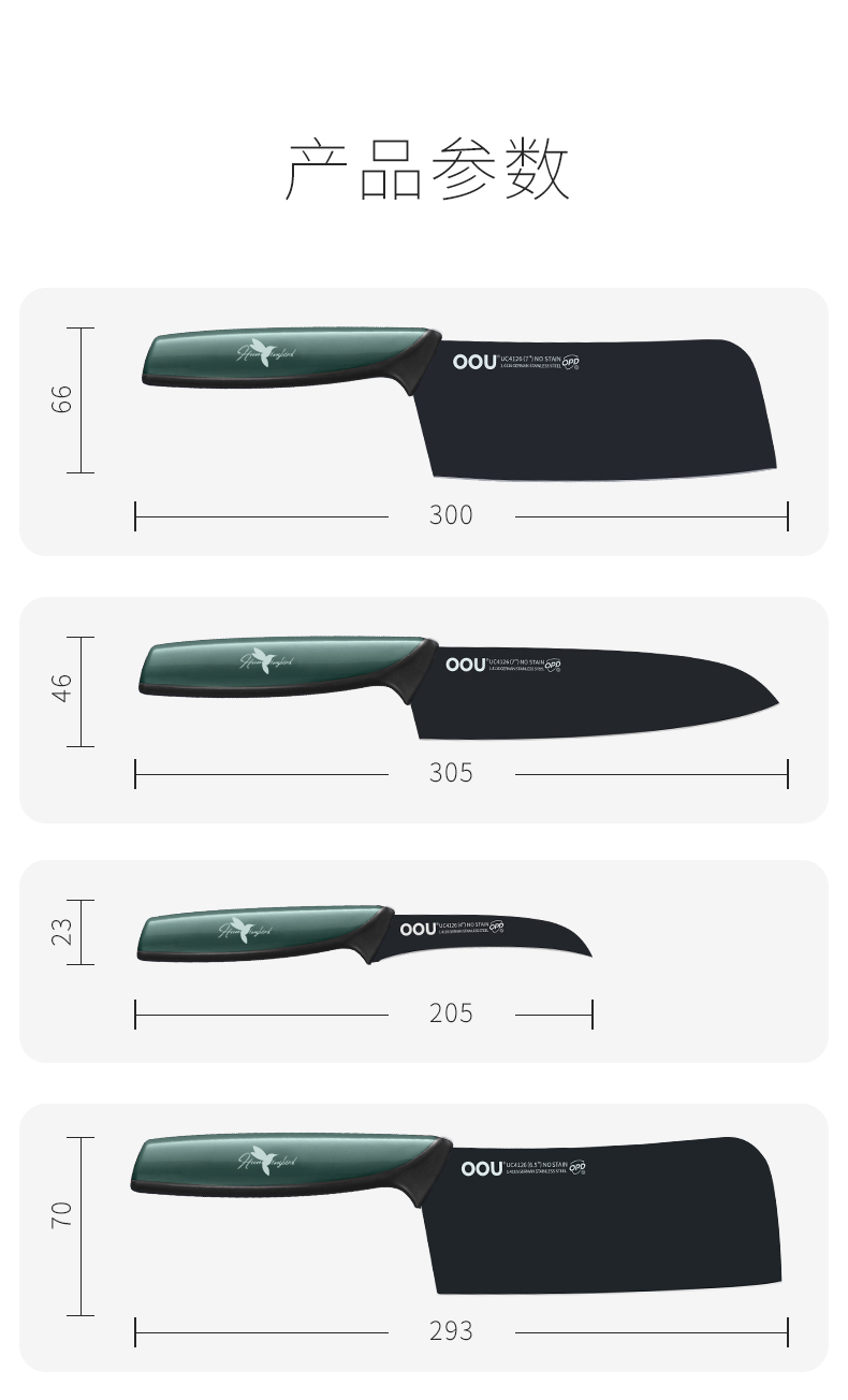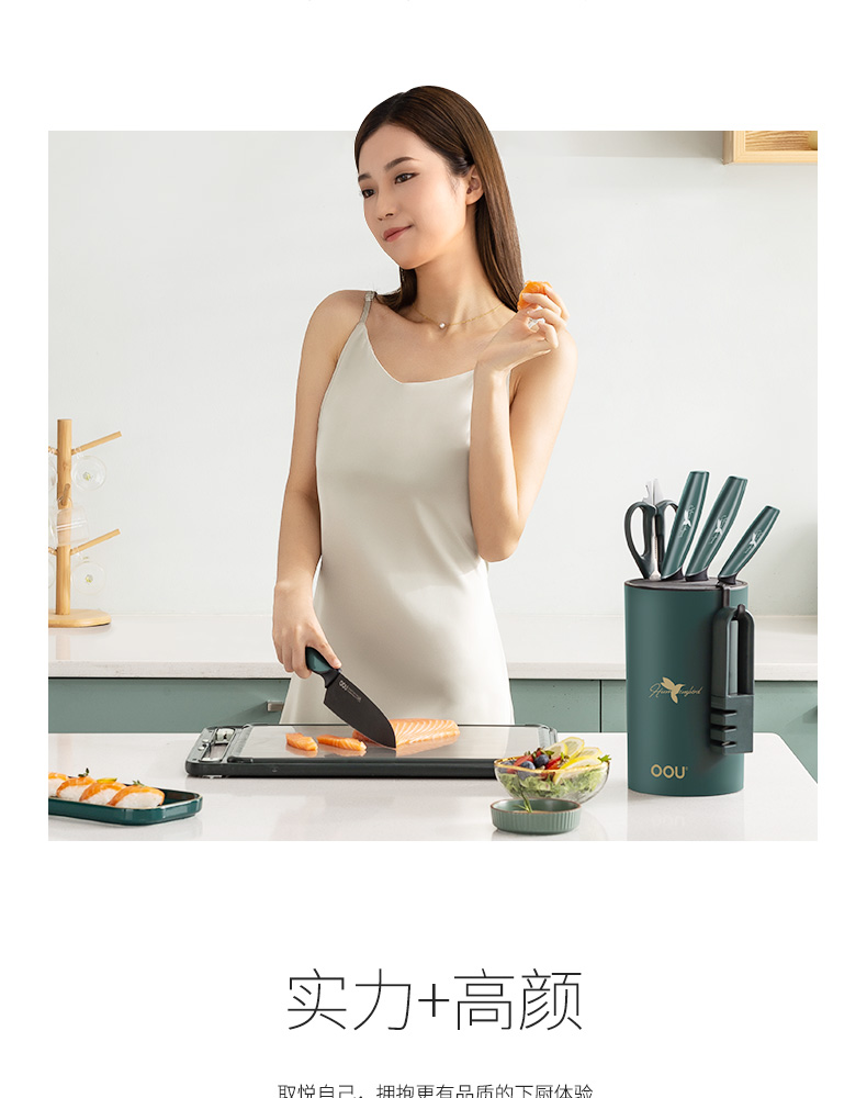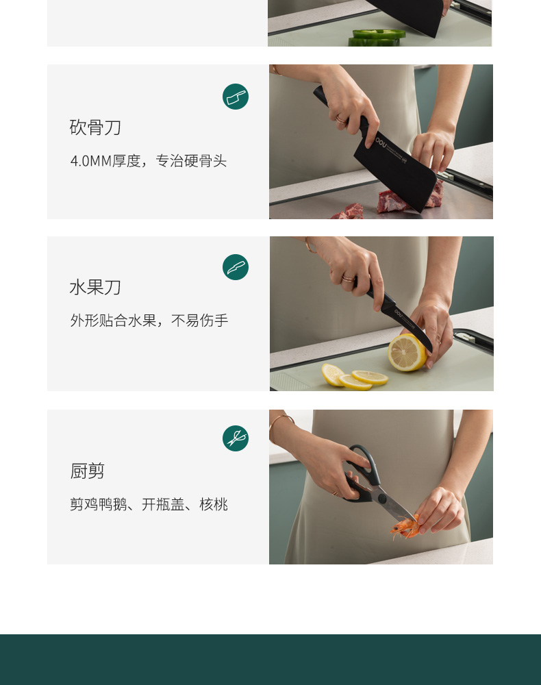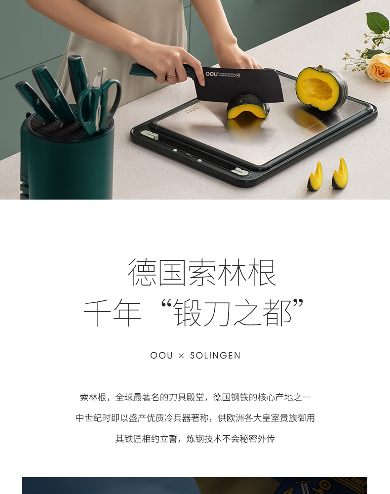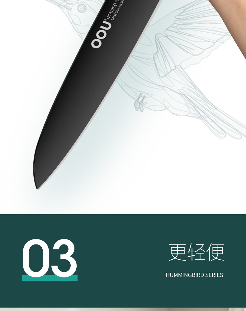 OOU!翡翠绿蜂鸟七件套厨房家用斩骨刀菜刀厨师刀水果刀全套组合厨具黑刀翡翠蜂鸟【德国钢7件套】
