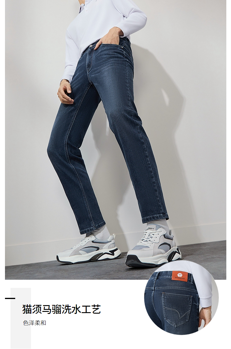 【巴玛石】柒牌男装牛仔裤男2024秋冬新款休闲商务中青年直筒长裤 127H71500