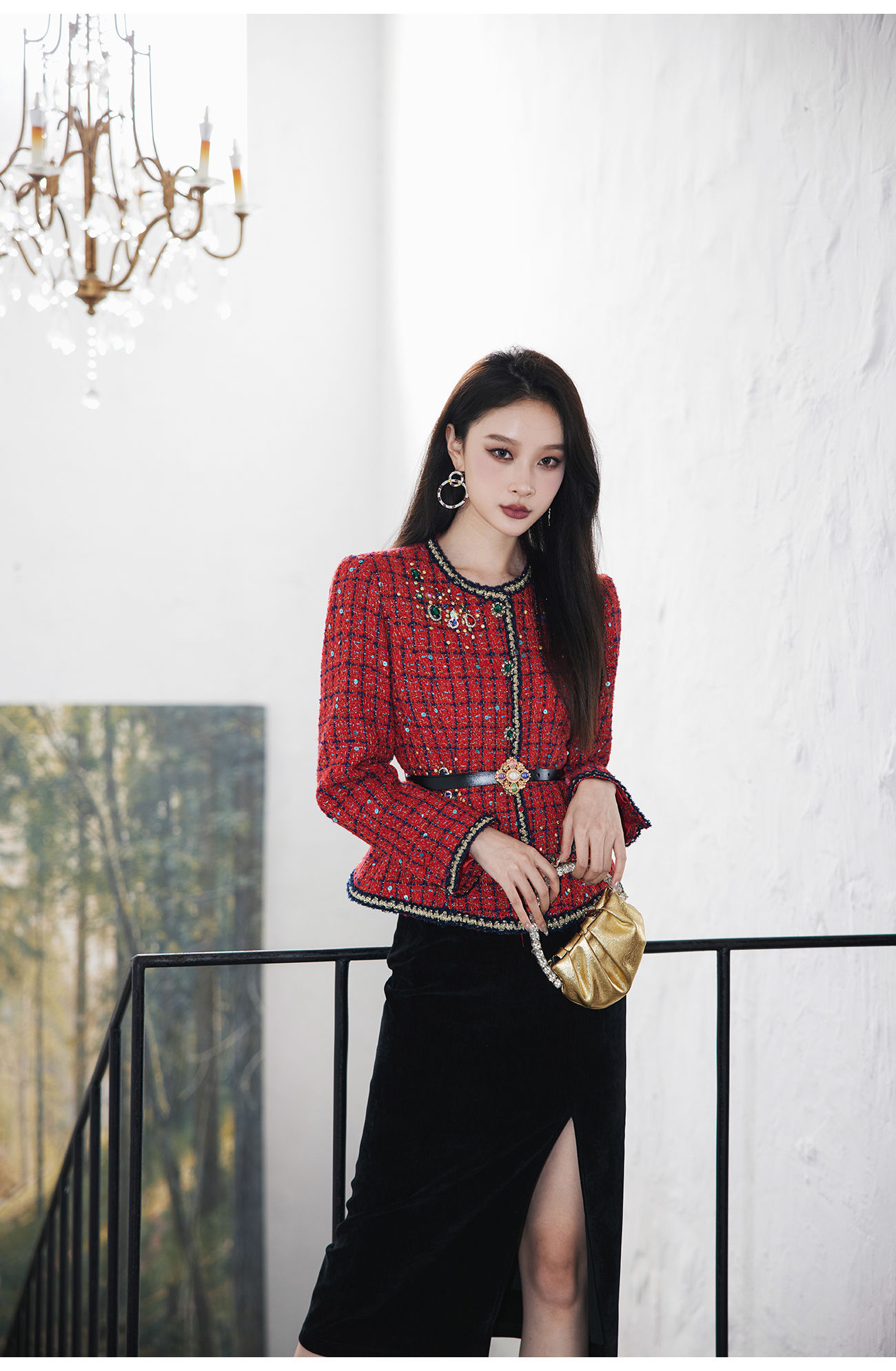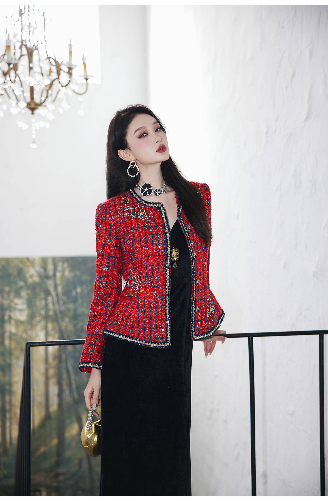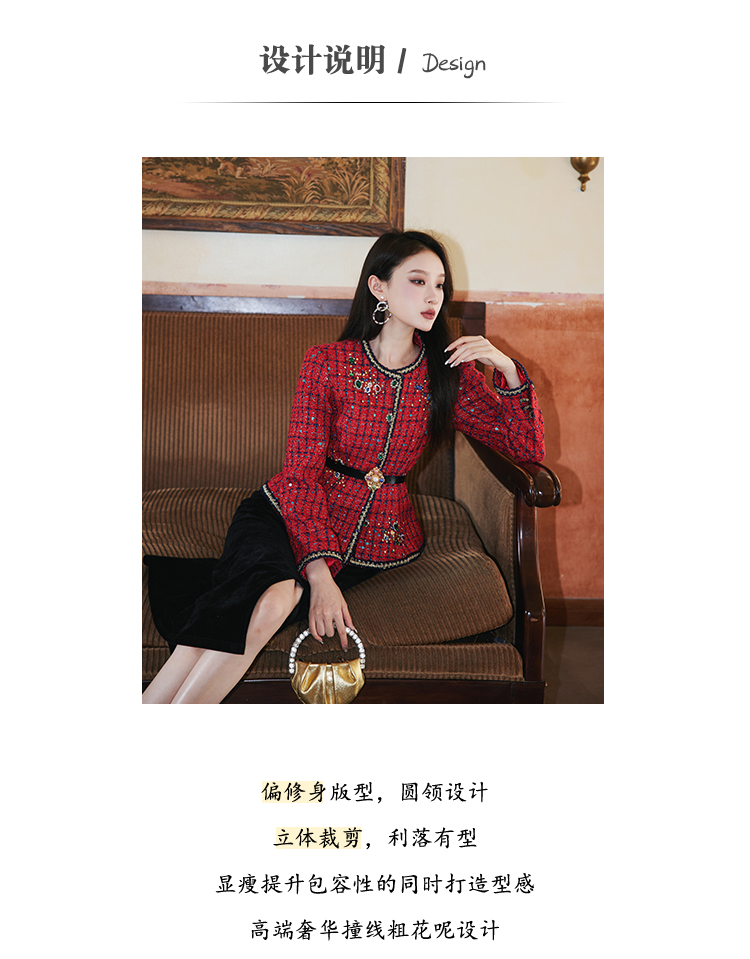 BeQueenStory【玫瑰骑士】立体裁剪显瘦手工缝钻小香外套