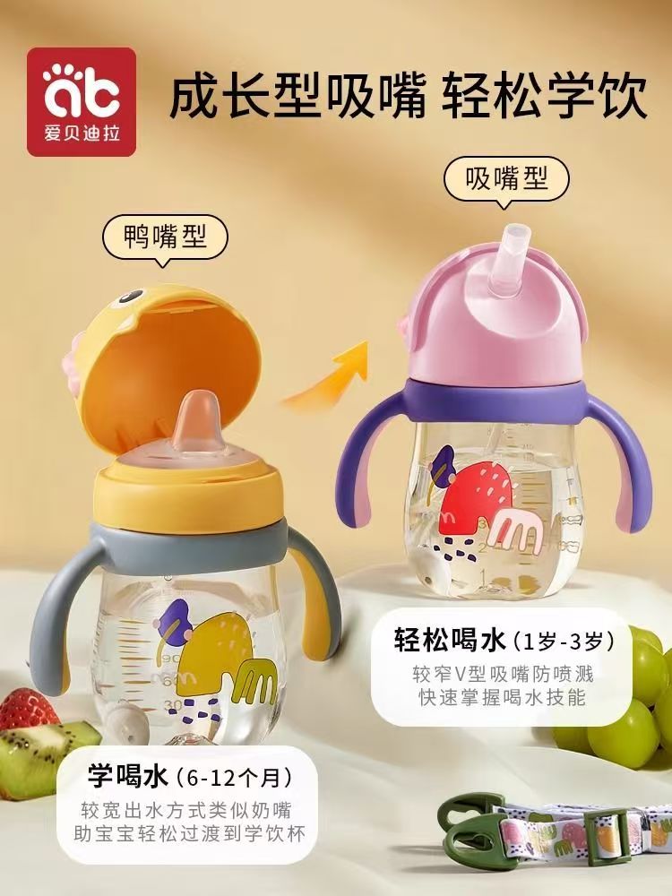 婴儿学饮杯鸭嘴饮杯ppsu吸管杯子宝宝喝水奶瓶防呛水杯直饮