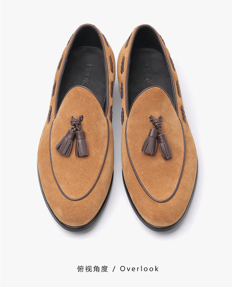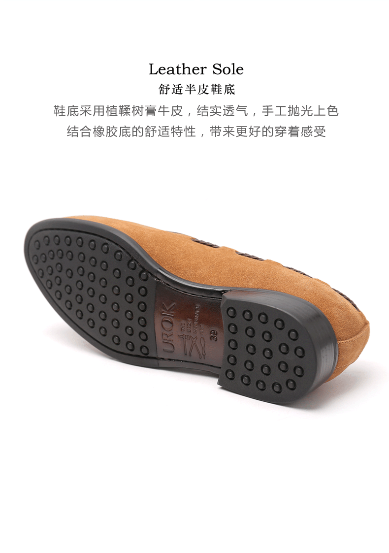 UROK手工反绒皮鞋男士正装男鞋商务乐福鞋