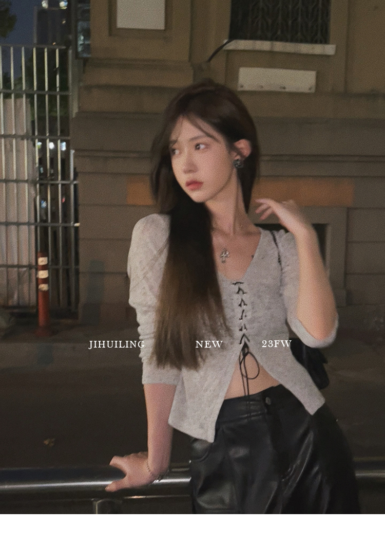 现货 杂色月豆 软糯轻薄纱 绑带简约针织罩衫