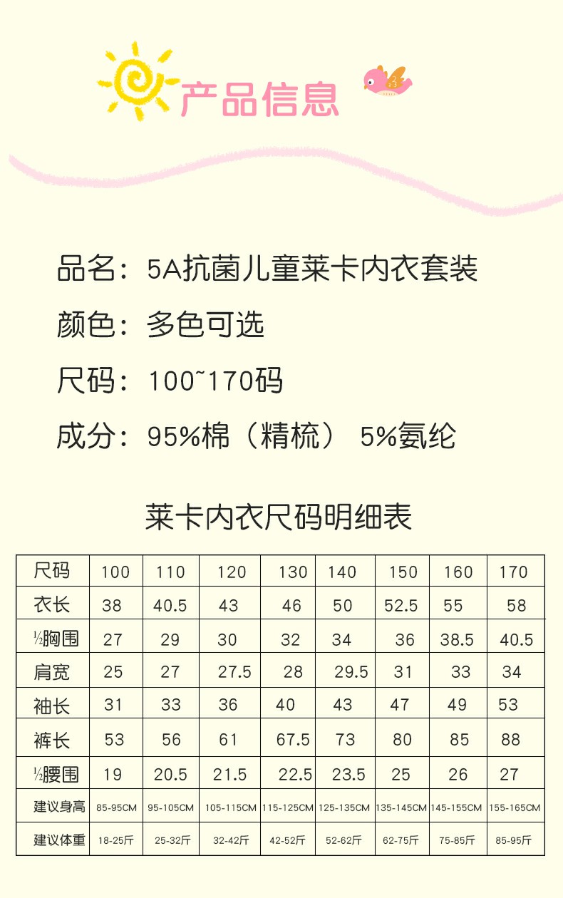 5A抗jun高弹莱卡棉内衣套装 柔软保暖舒适 A类母婴标准 可男女宝可亲子