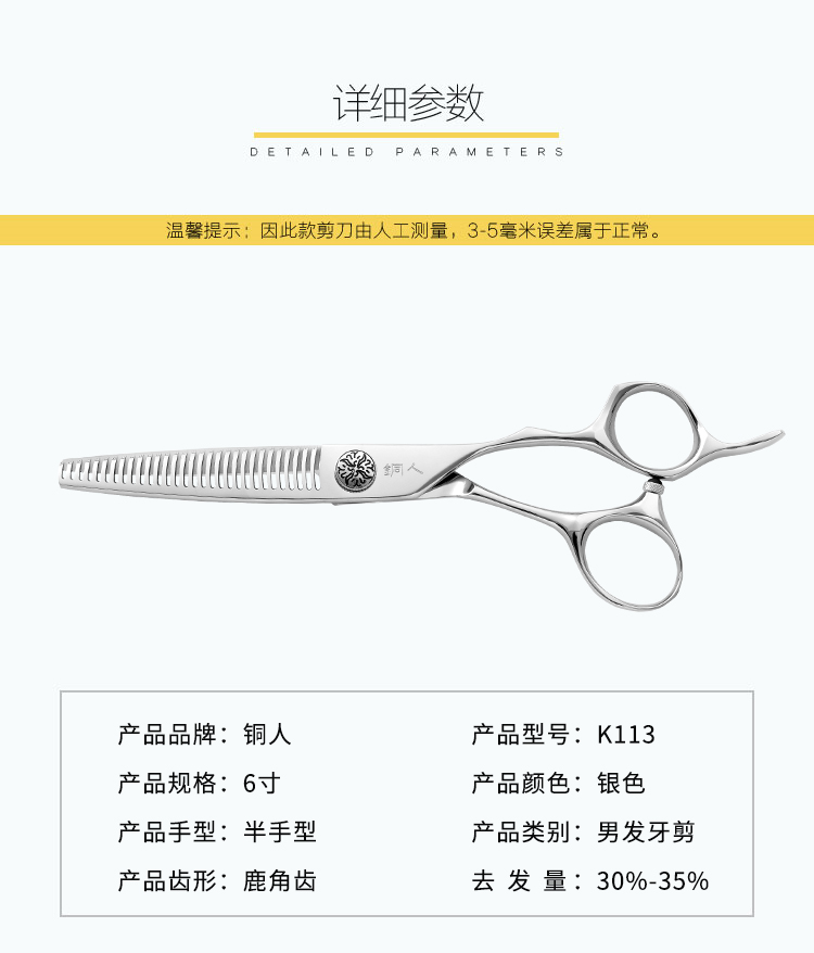 铜人滑刀K113美发剪刀男发牙剪30%-35%去发量打薄牙剪专业家用剪刀