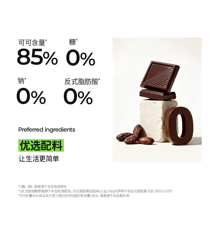 【共享分销】无糖黑巧克力 85%纯脂可可含量 精选西非可可豆与马来西亚可可粉制作 醇香丝滑 每盒约10片/共50g