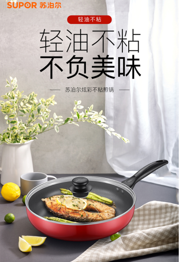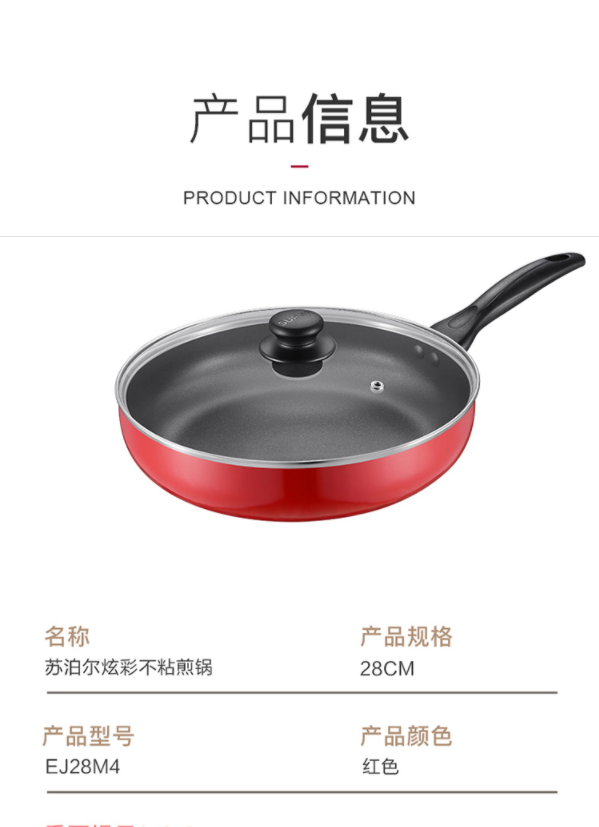 苏泊尔SUPOR 炫彩不粘煎锅牛排锅28cm燃气灶明火专用平底锅EJ28M4
