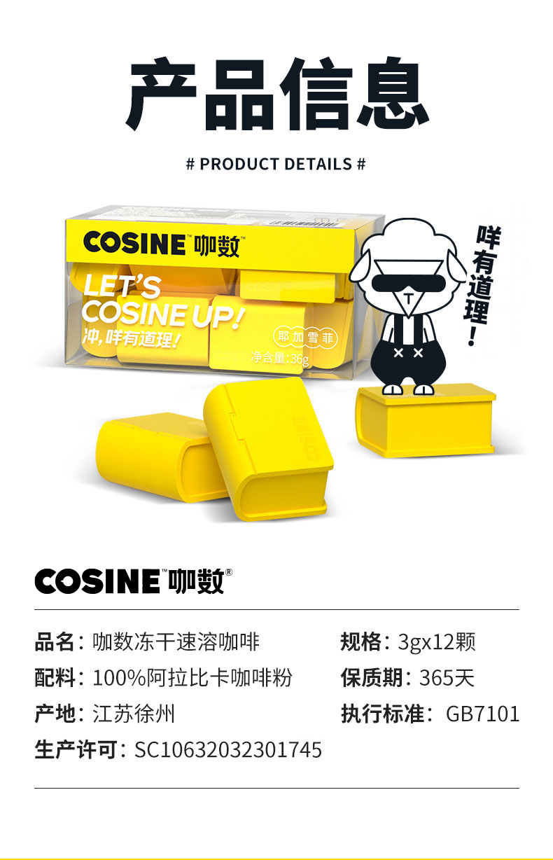 咖数Cosine/超即溶冻干咖啡耶加雪菲手冲美式黑咖啡粉提神醒脑
