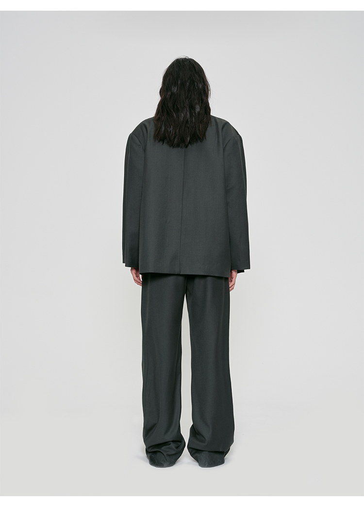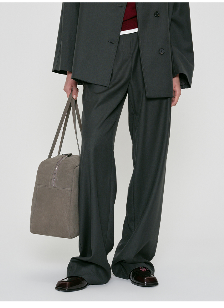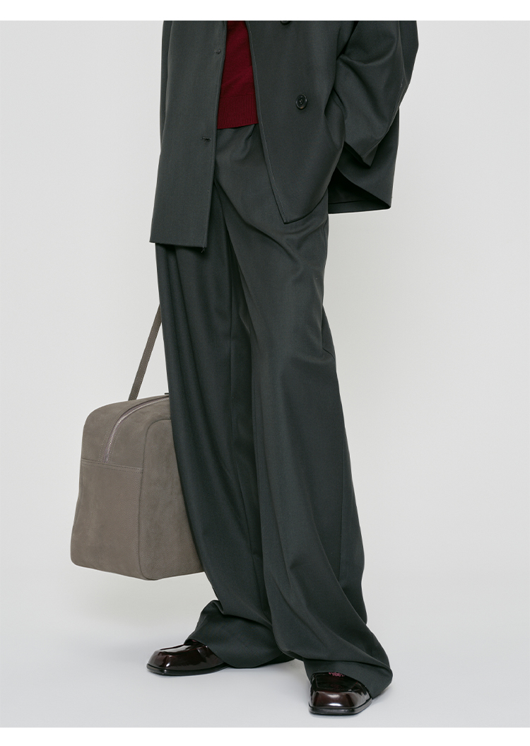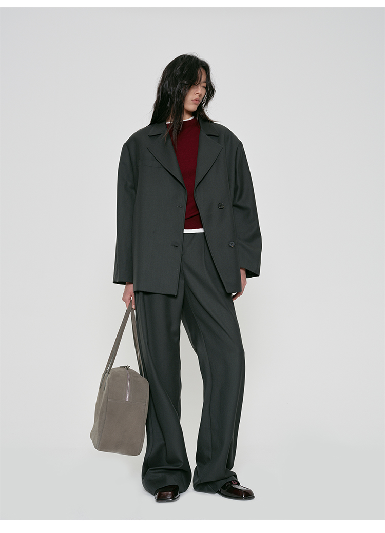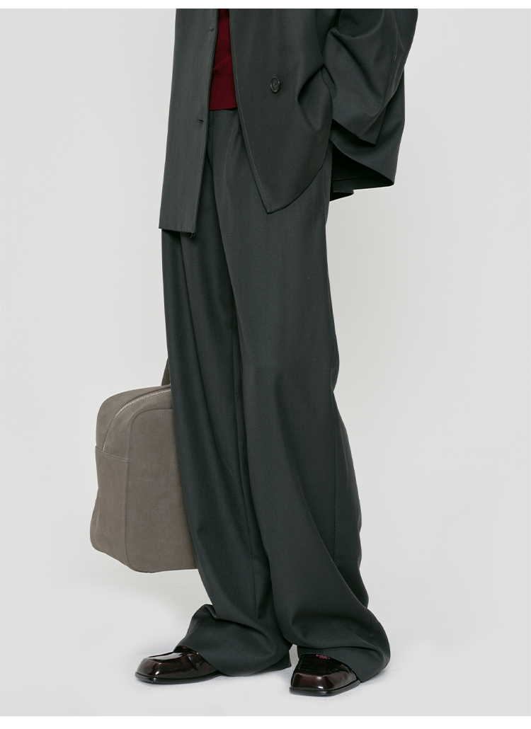 HIDEMI 莫兰迪灰蓝色显瘦双压褶中腰式设计感宽腿直筒西裤长裤