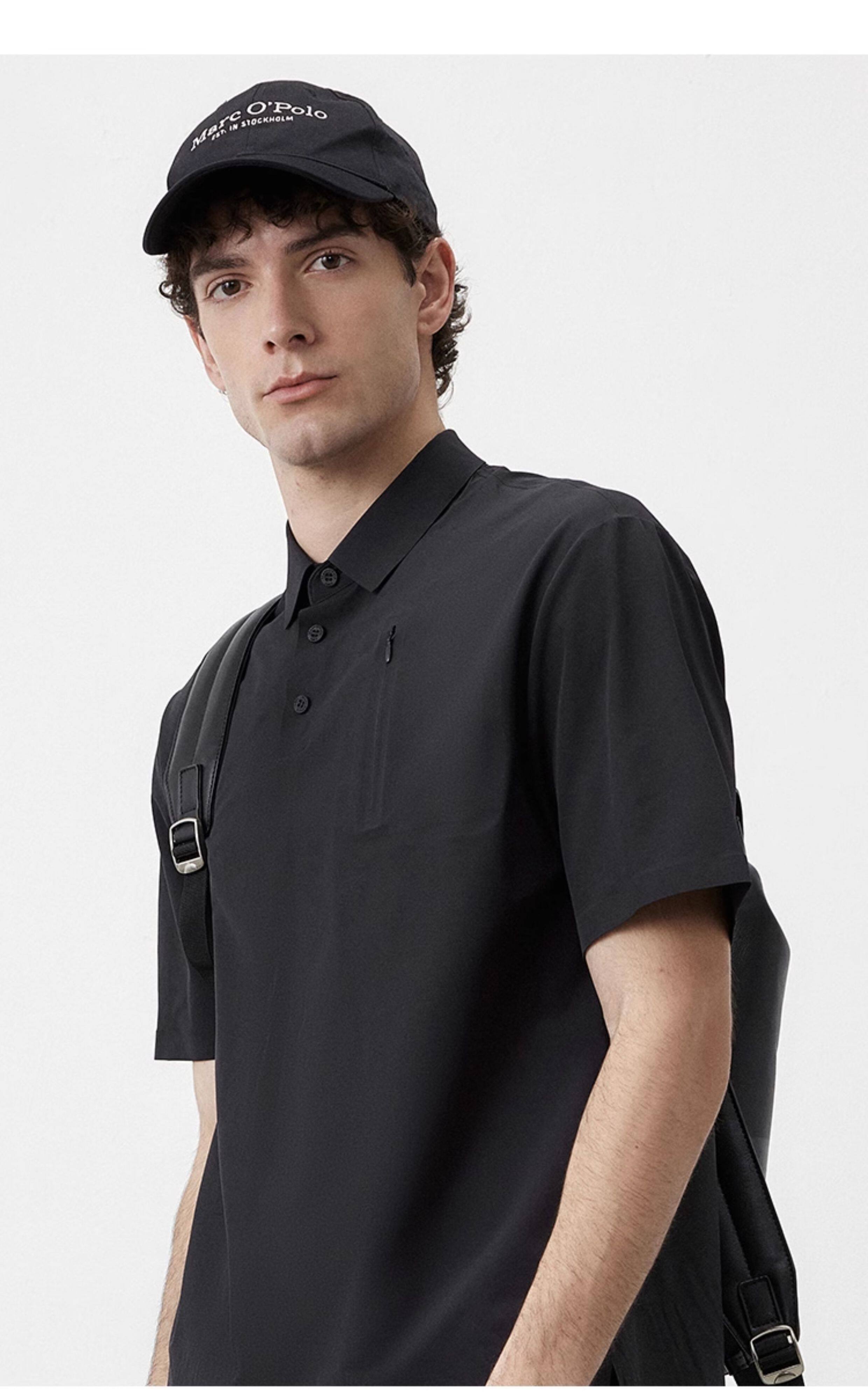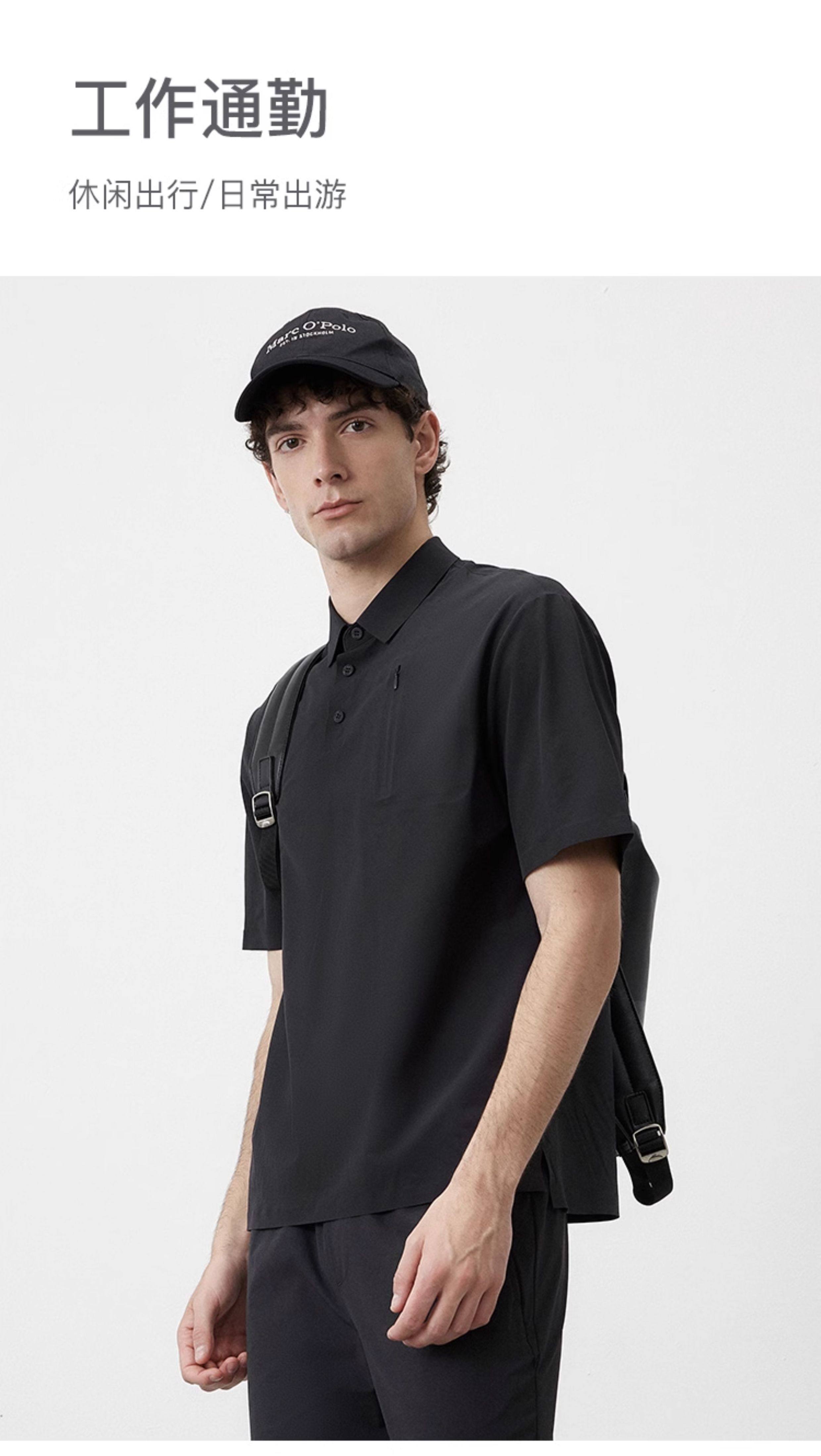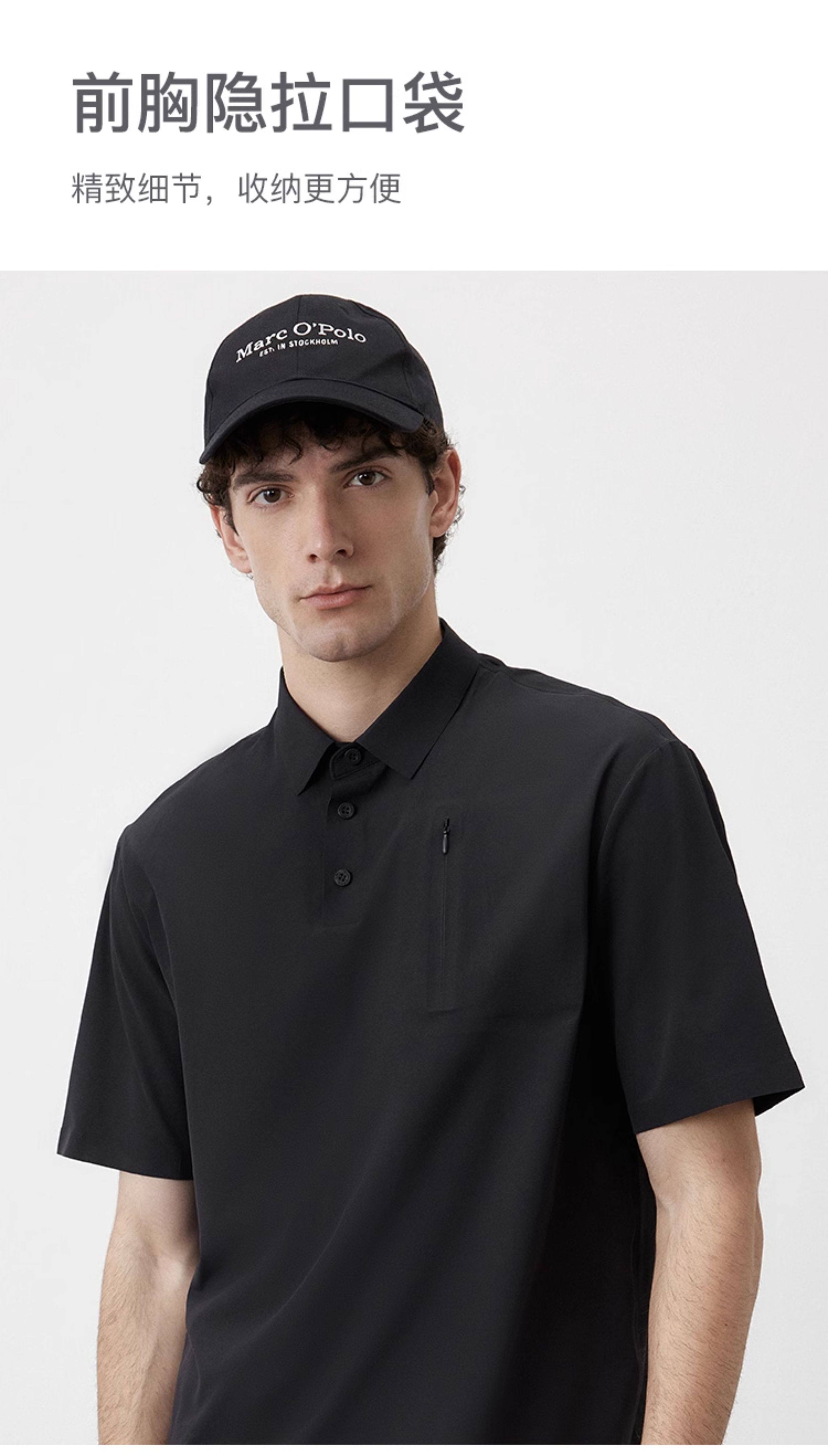 Marc O'Polo/MOP夏季新款高级黑色梭织舒适商务休闲短袖POLO衫男