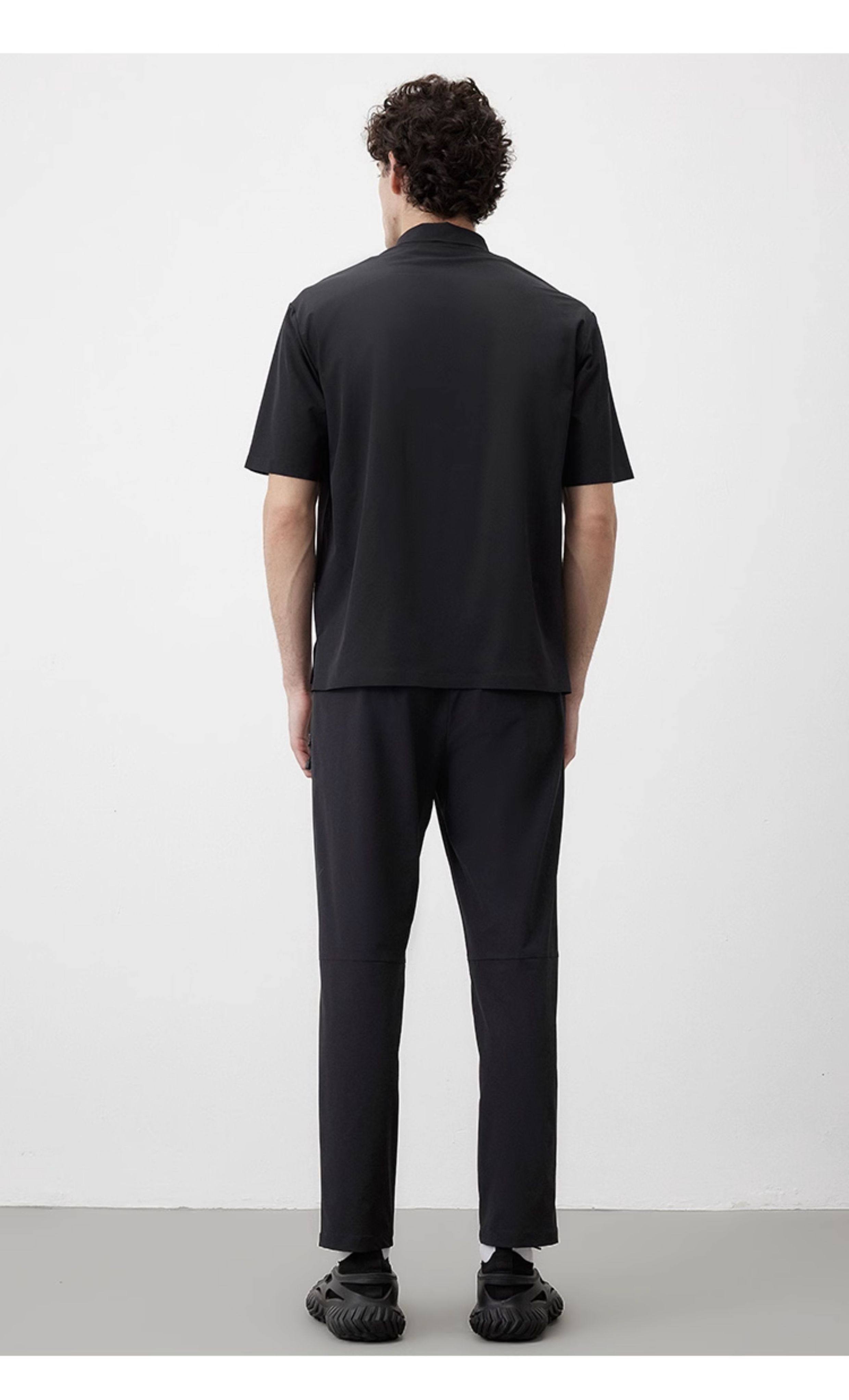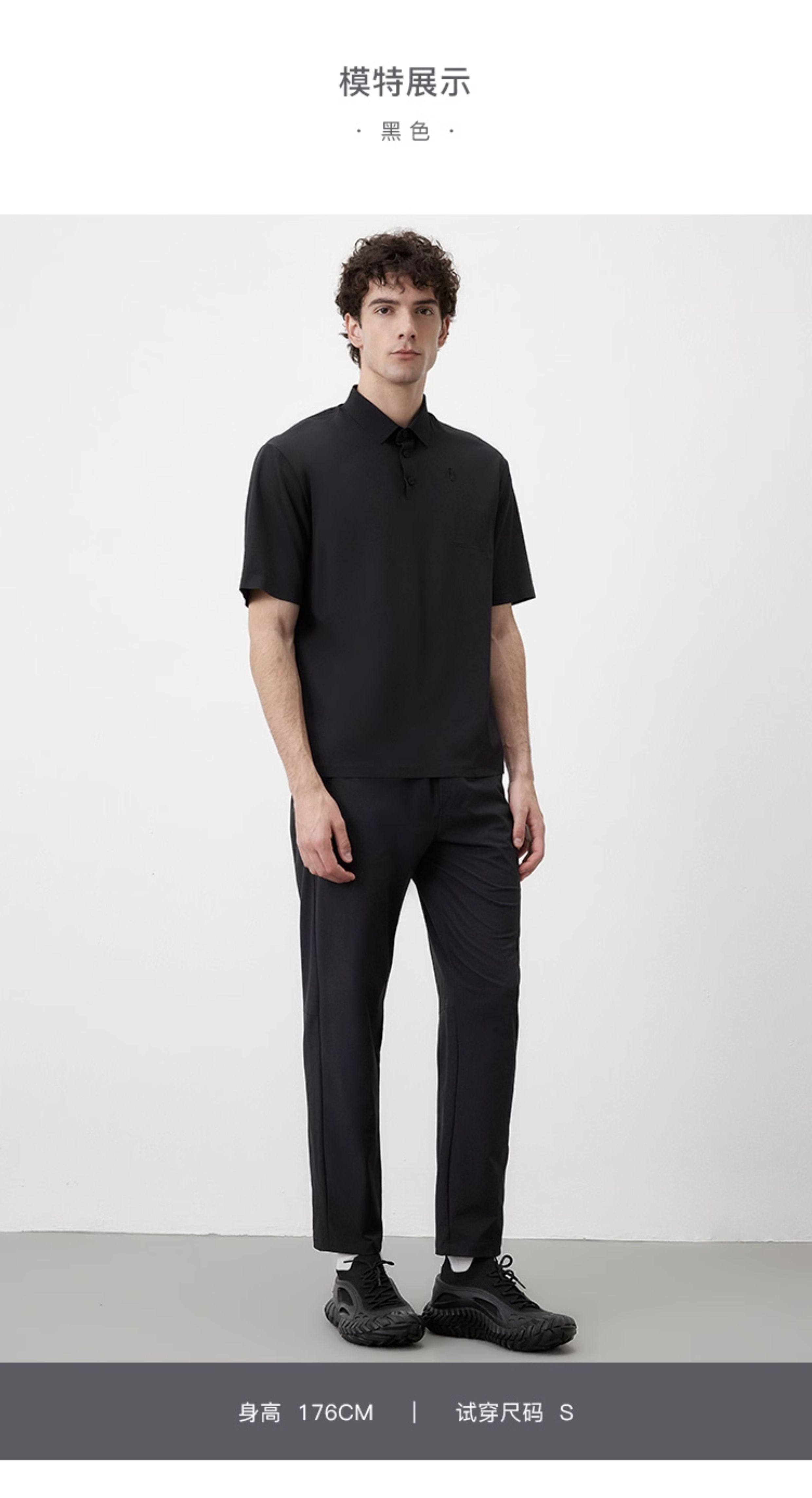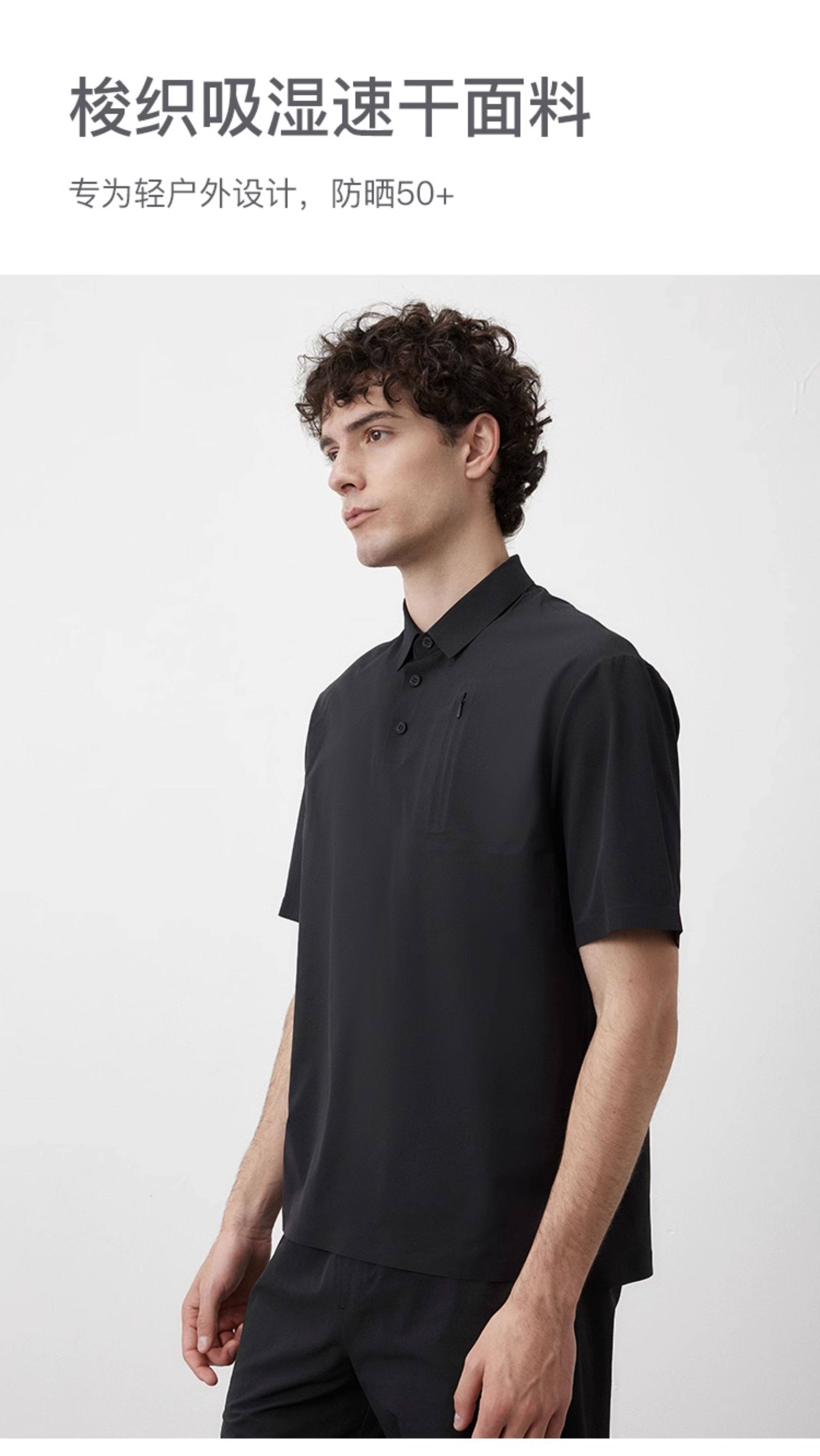 Marc O'Polo/MOP夏季新款高级黑色梭织舒适商务休闲短袖POLO衫男