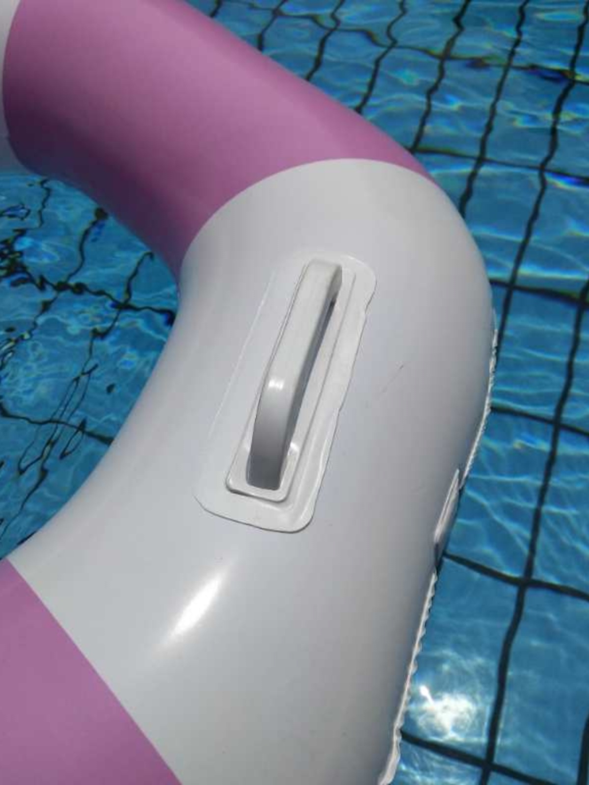 本游泳圈外观是六边形的,更有助于稳定,且泳圈上部还设有把手,可以给人提供更好的支撑,在水流急速的情况下,能够给于一定的支撑,保持人的平衡性。从而保护人的生命安全,防止溺水事故的意外发生。