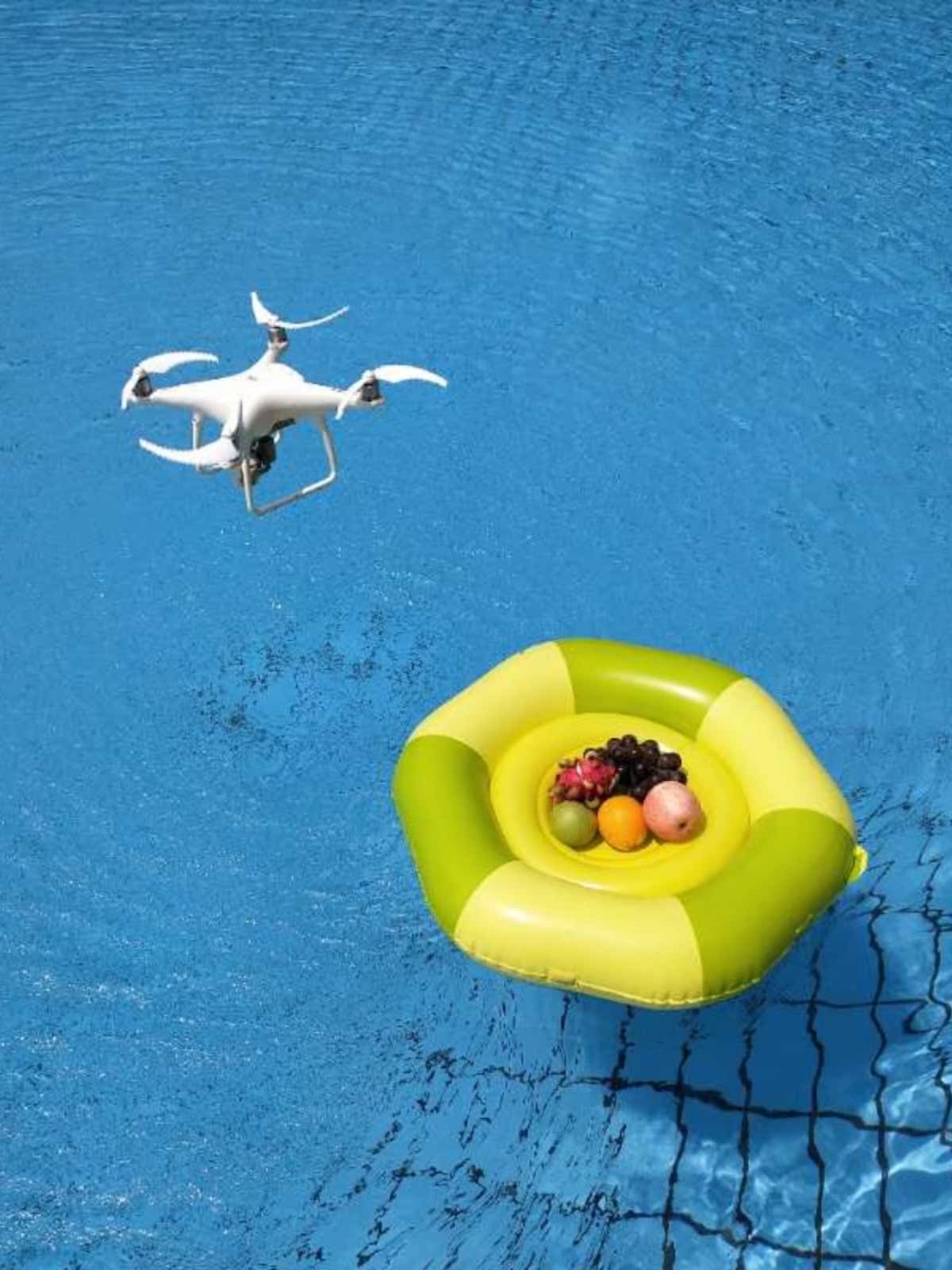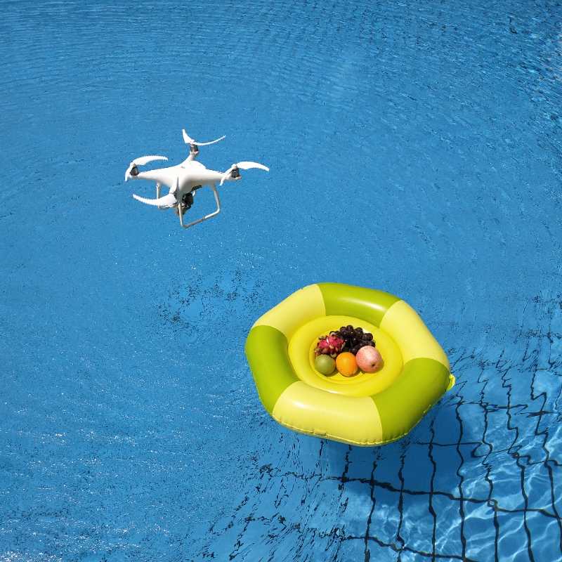 本游泳圈是致力于提供一种结构简单稳固、使用方便,易于拆装、兼具游水、置物、娱乐的多功能游泳圈。