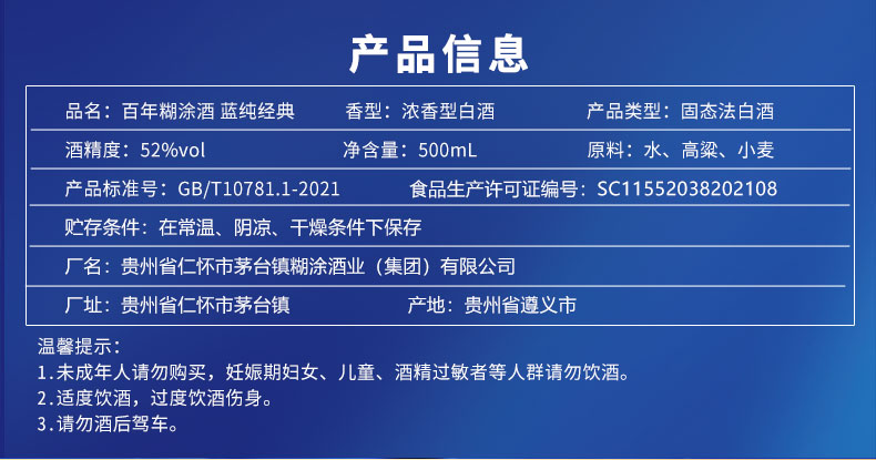 百年糊涂 蓝纯经典 52度 500mL*4 整箱装【官方商城正品保障】