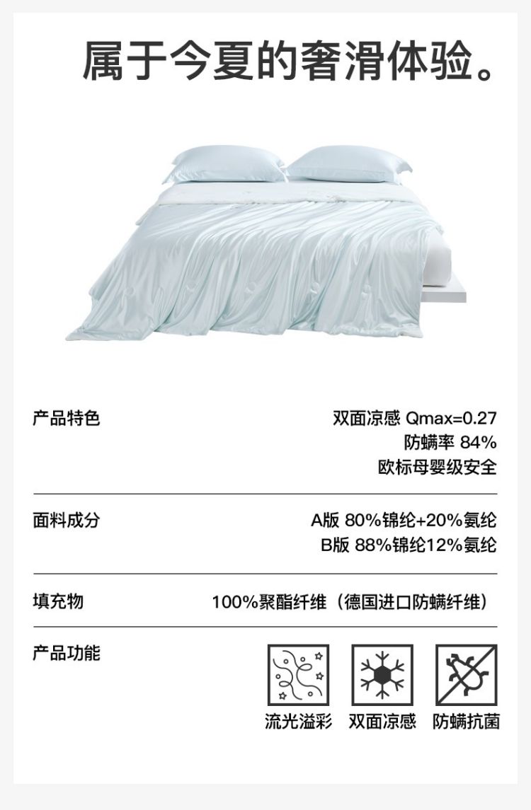 Suprelle舒飘儿流光凉感被,尽享丝滑,防螨、抗菌、透气,无需被套、可机洗,母婴级A类安全标准夏凉被