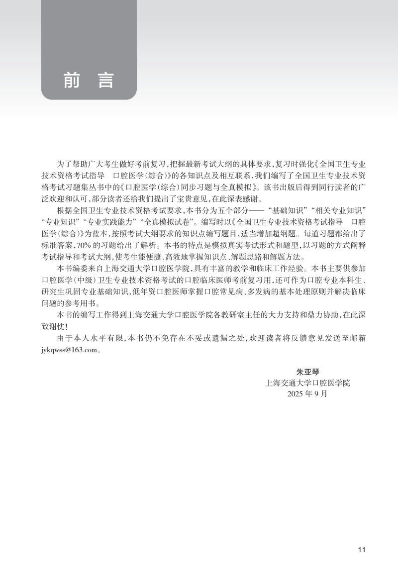 2026口腔医学(综合)同步习题与全真模拟 全国卫生专业技术资格考试习题集丛书 朱亚琴 适用专业 口腔医学(中级) 人民卫生出版社