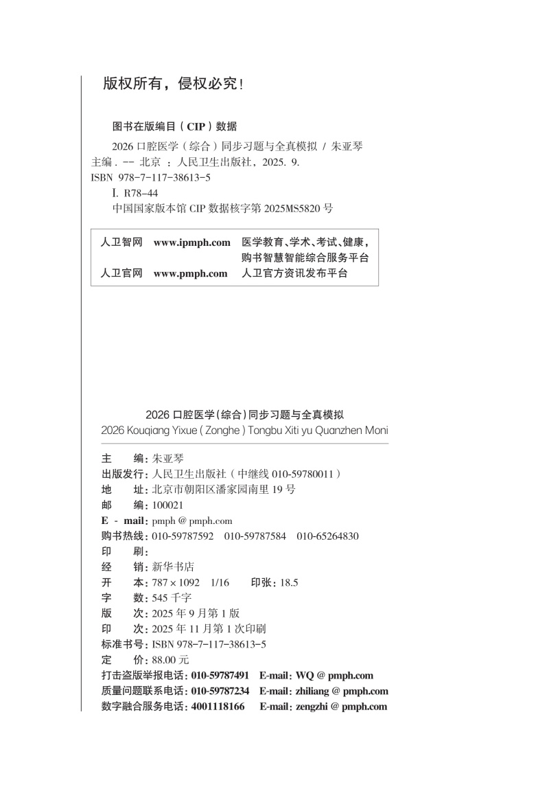 书名:2026口腔医学(综合)同步习题与全真模拟