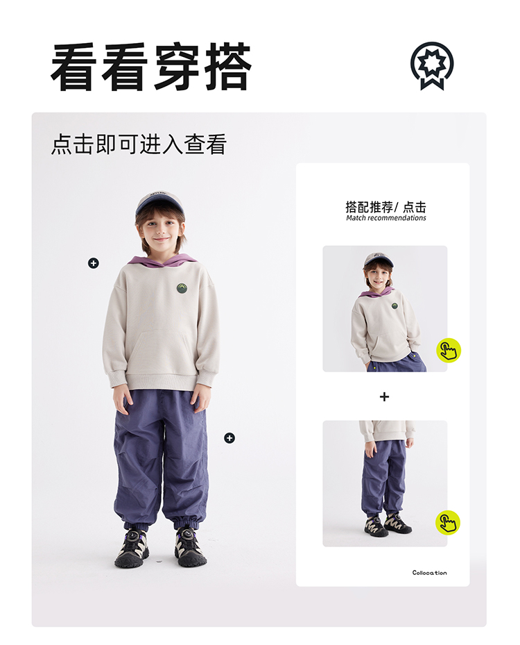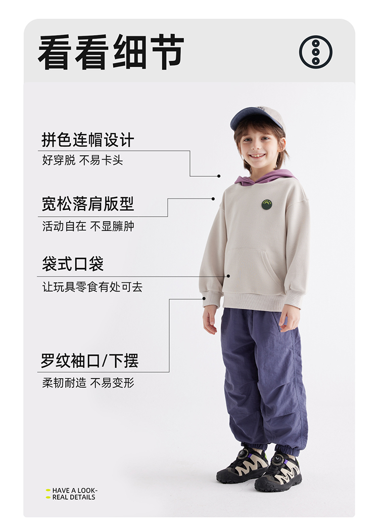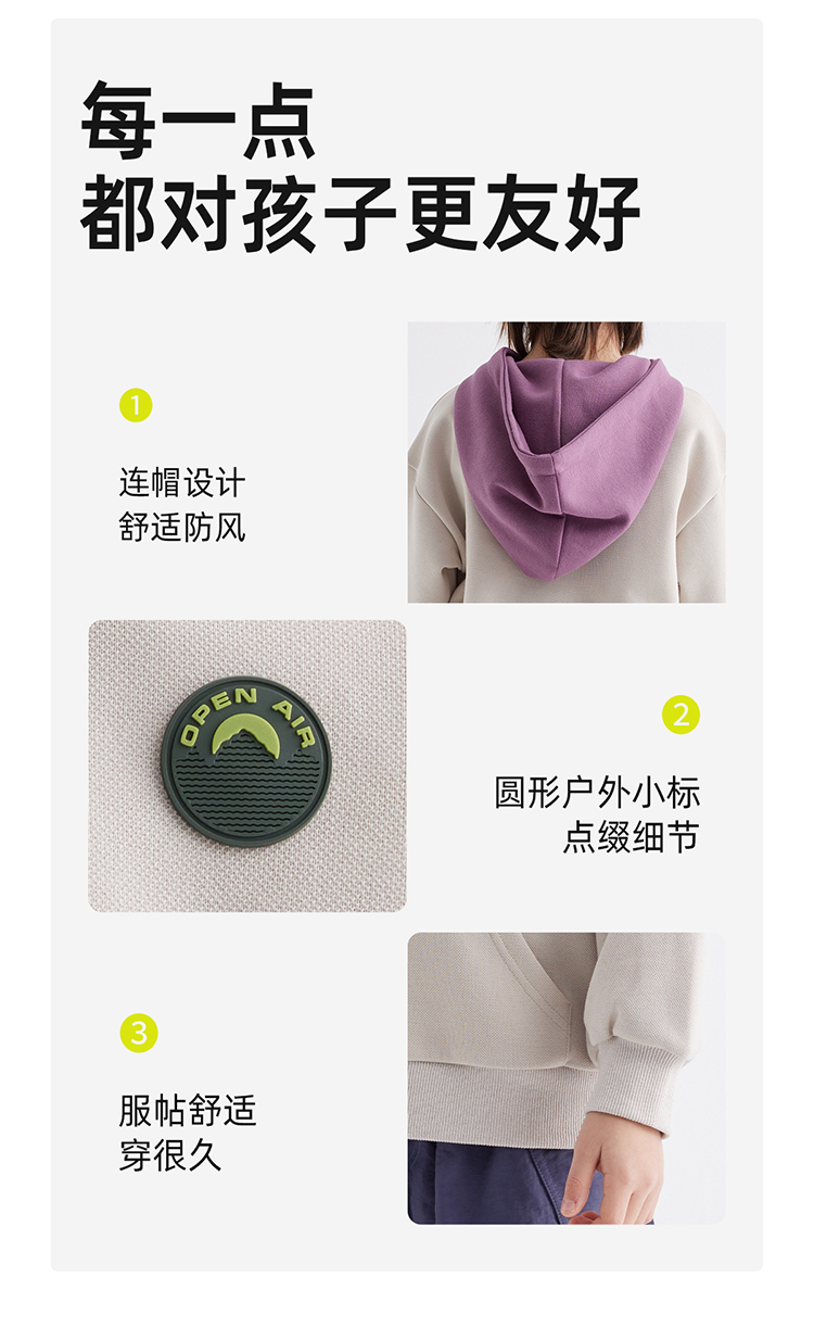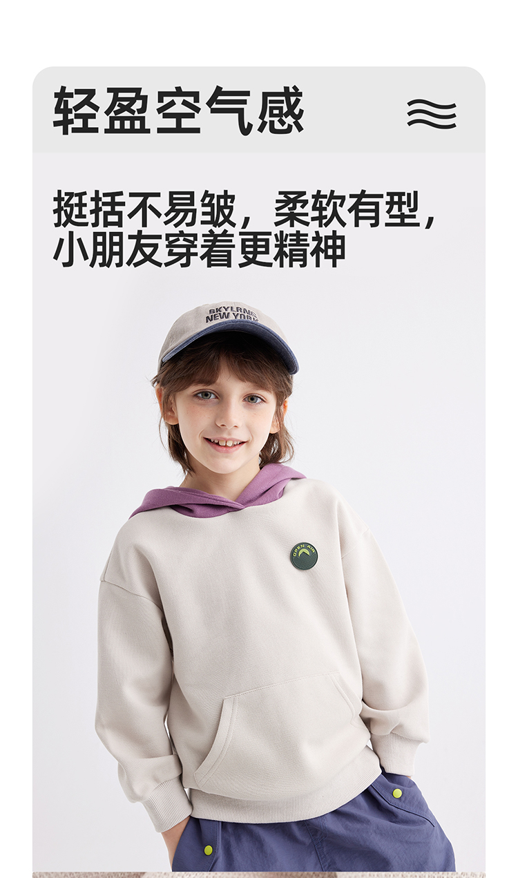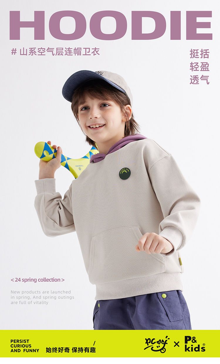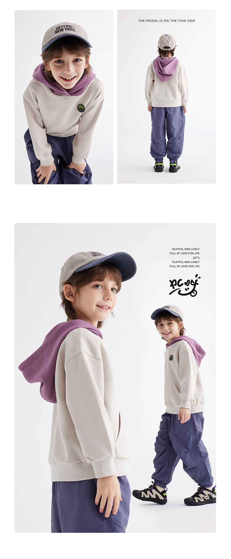 【棉感蜂窝珠地空气层】儿童山系空气层撞色连帽卫衣 PCWY2417
