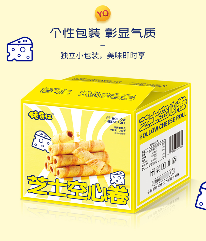 佬食仁芝士空心卷整箱手工鸡蛋卷无夹心脆卷健康零食饼干下午茶