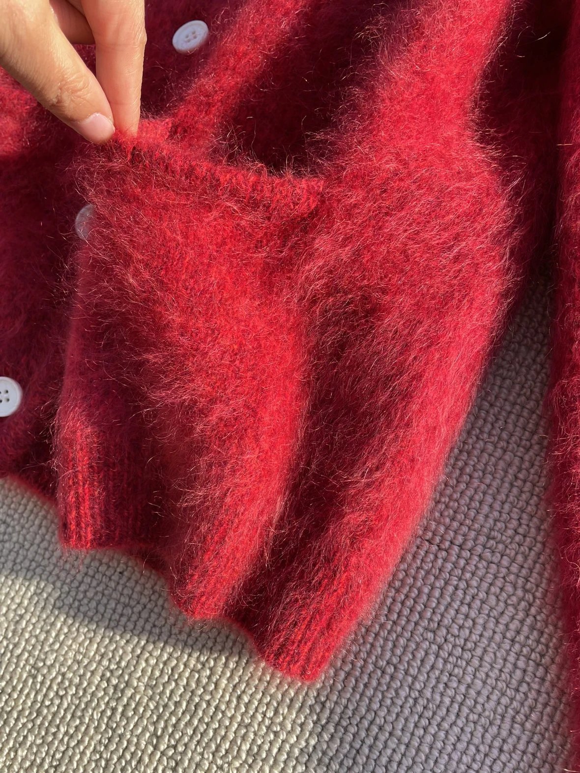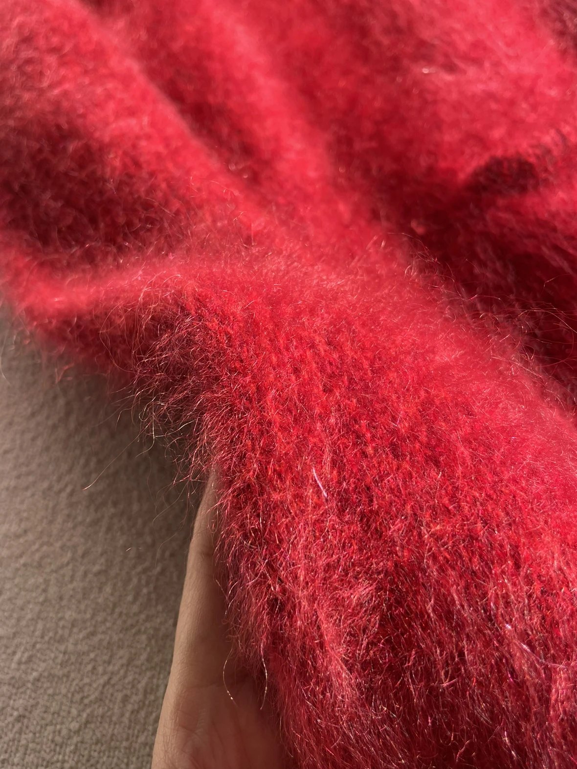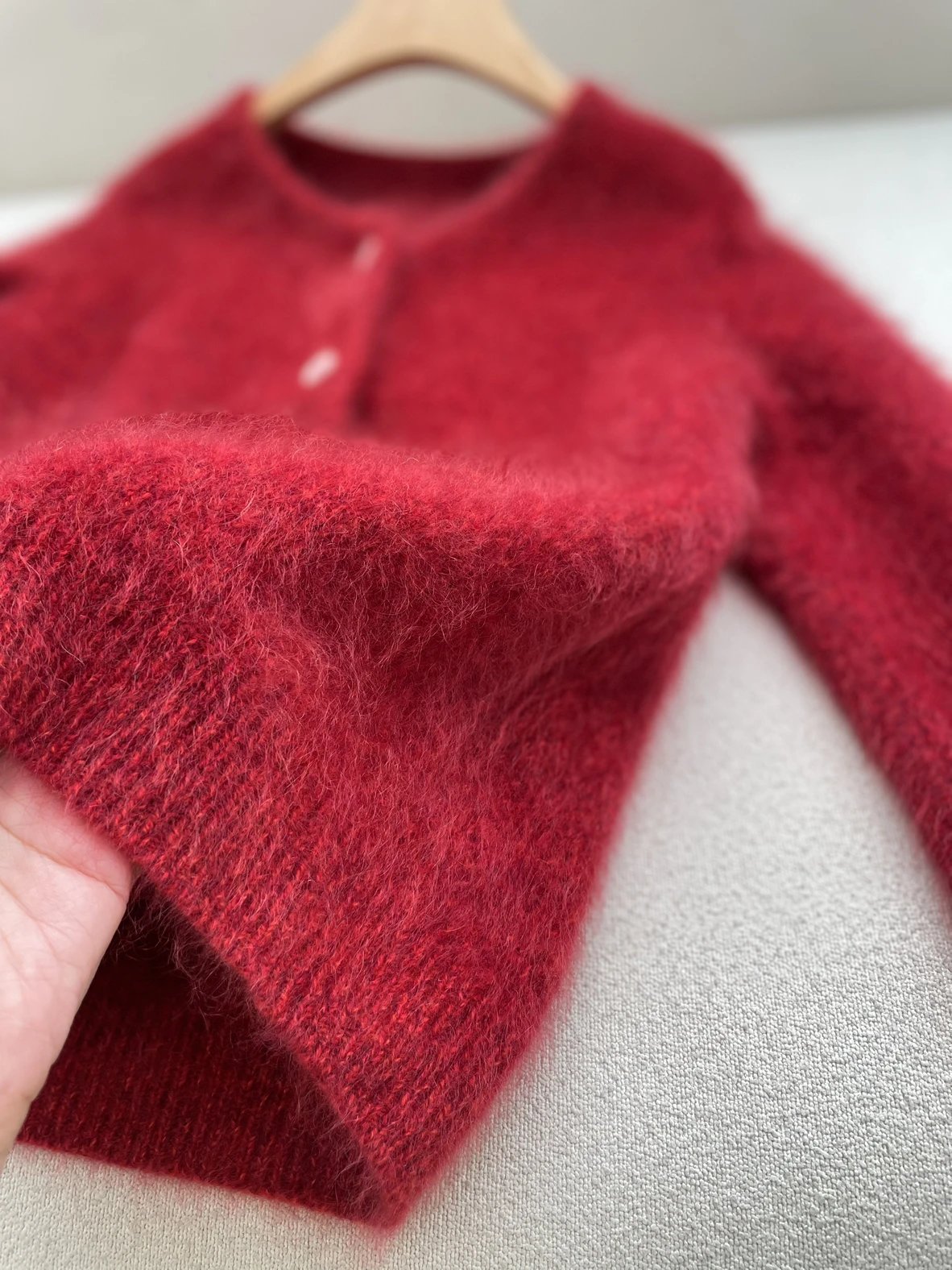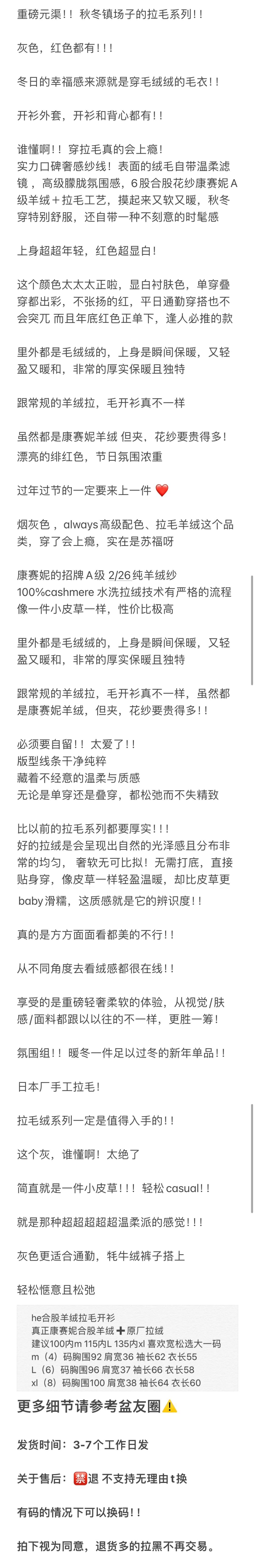 重磅渠道 IC合股羊绒拉毛开衫 红色/灰色 针织开衫外套 日本工厂拉毛技术