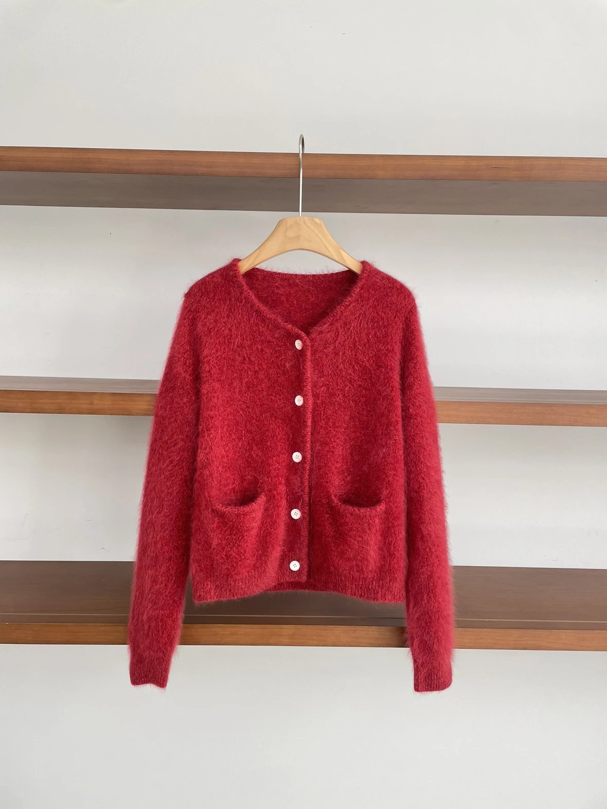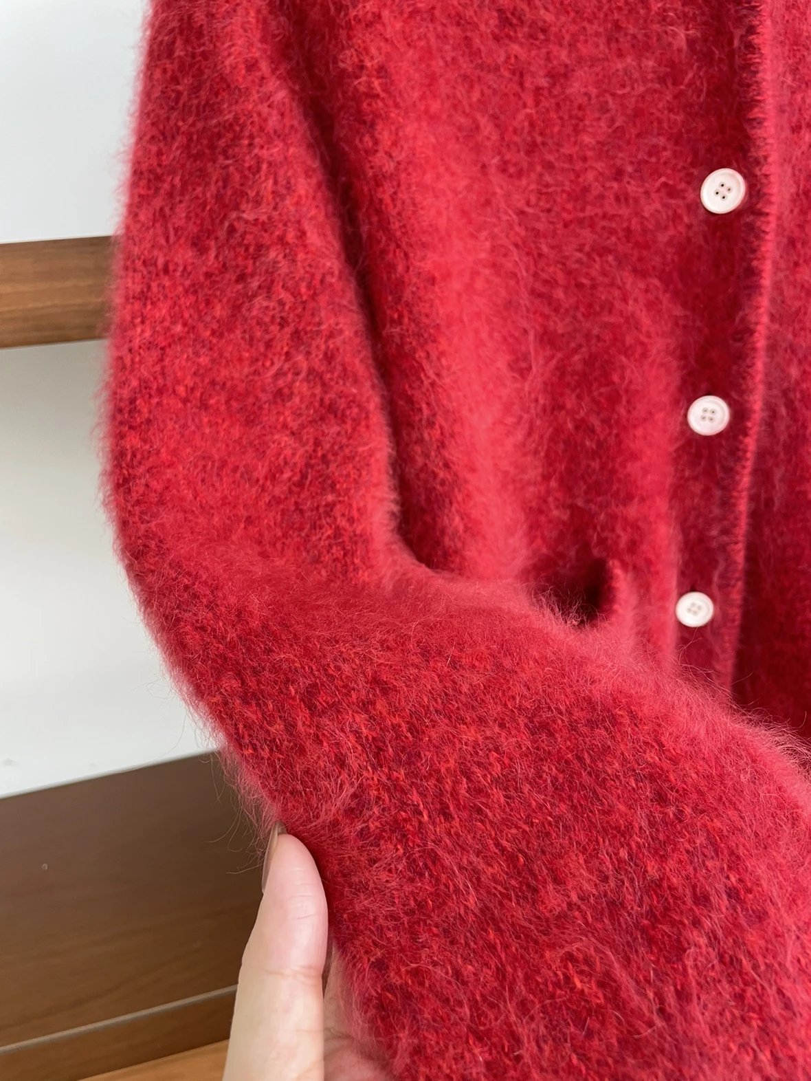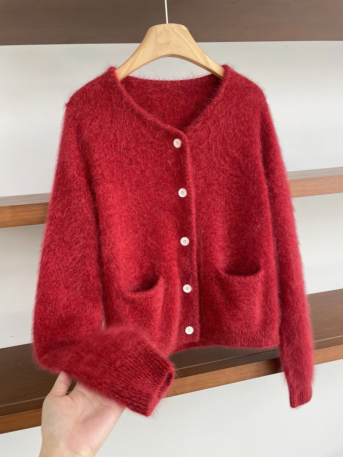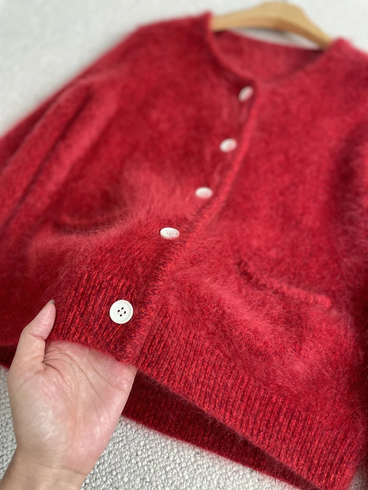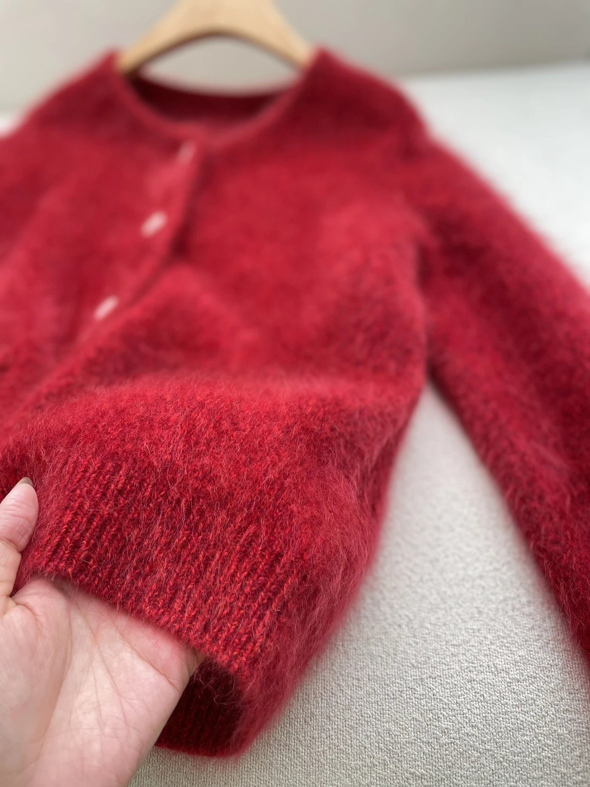 重磅渠道 IC合股羊绒拉毛开衫 红色/灰色 针织开衫外套 日本工厂拉毛技术