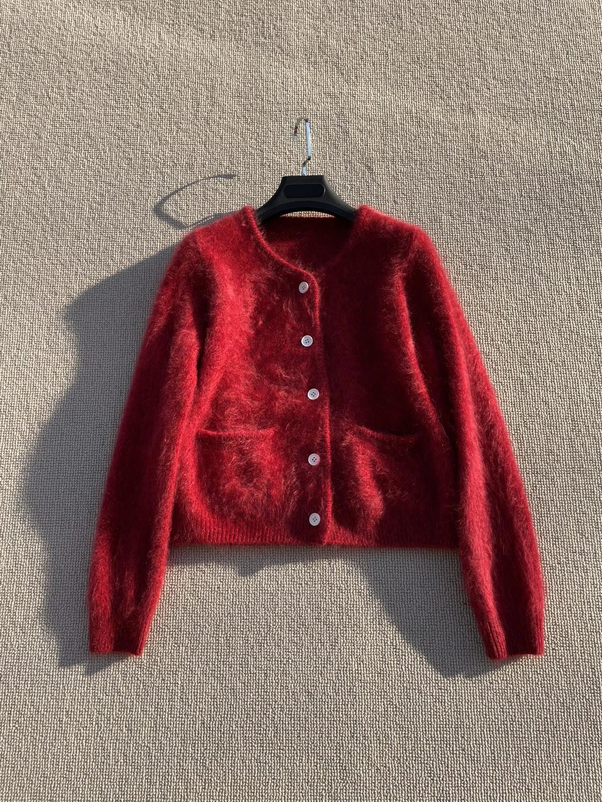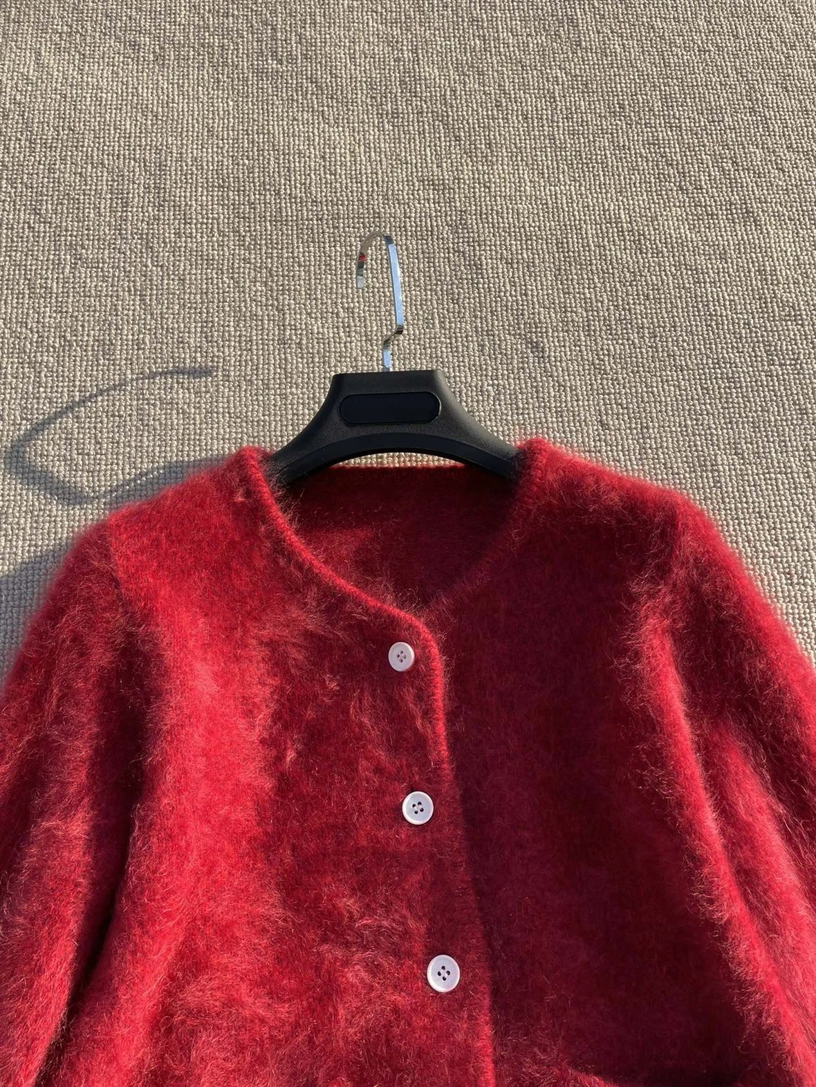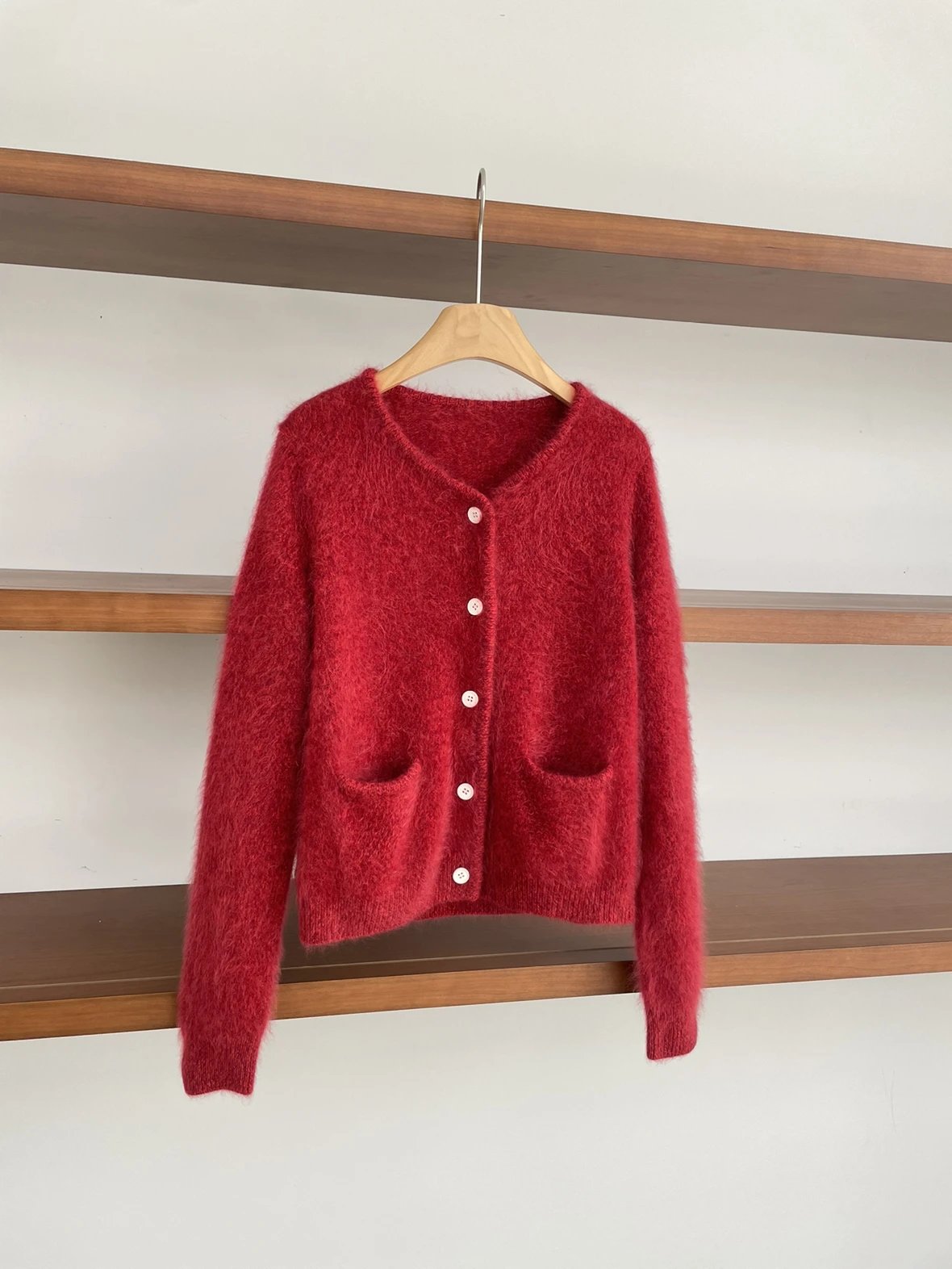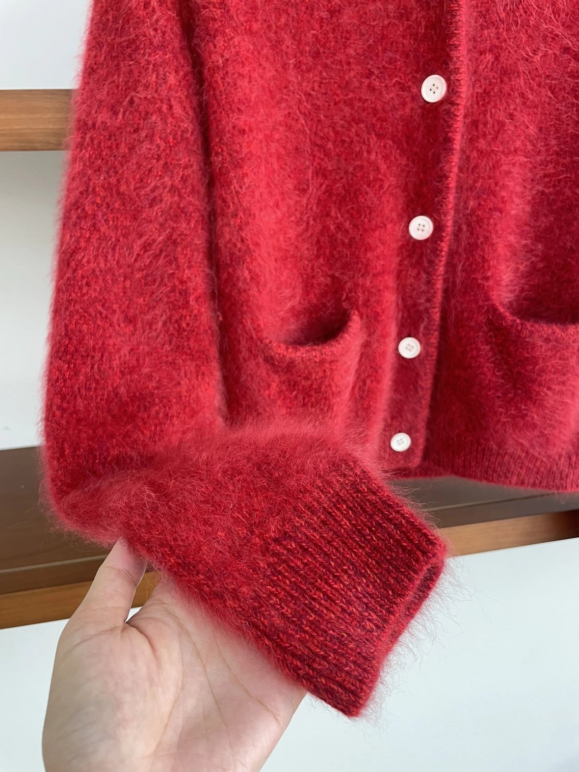 重磅渠道 IC合股羊绒拉毛开衫 红色/灰色 针织开衫外套 日本工厂拉毛技术
