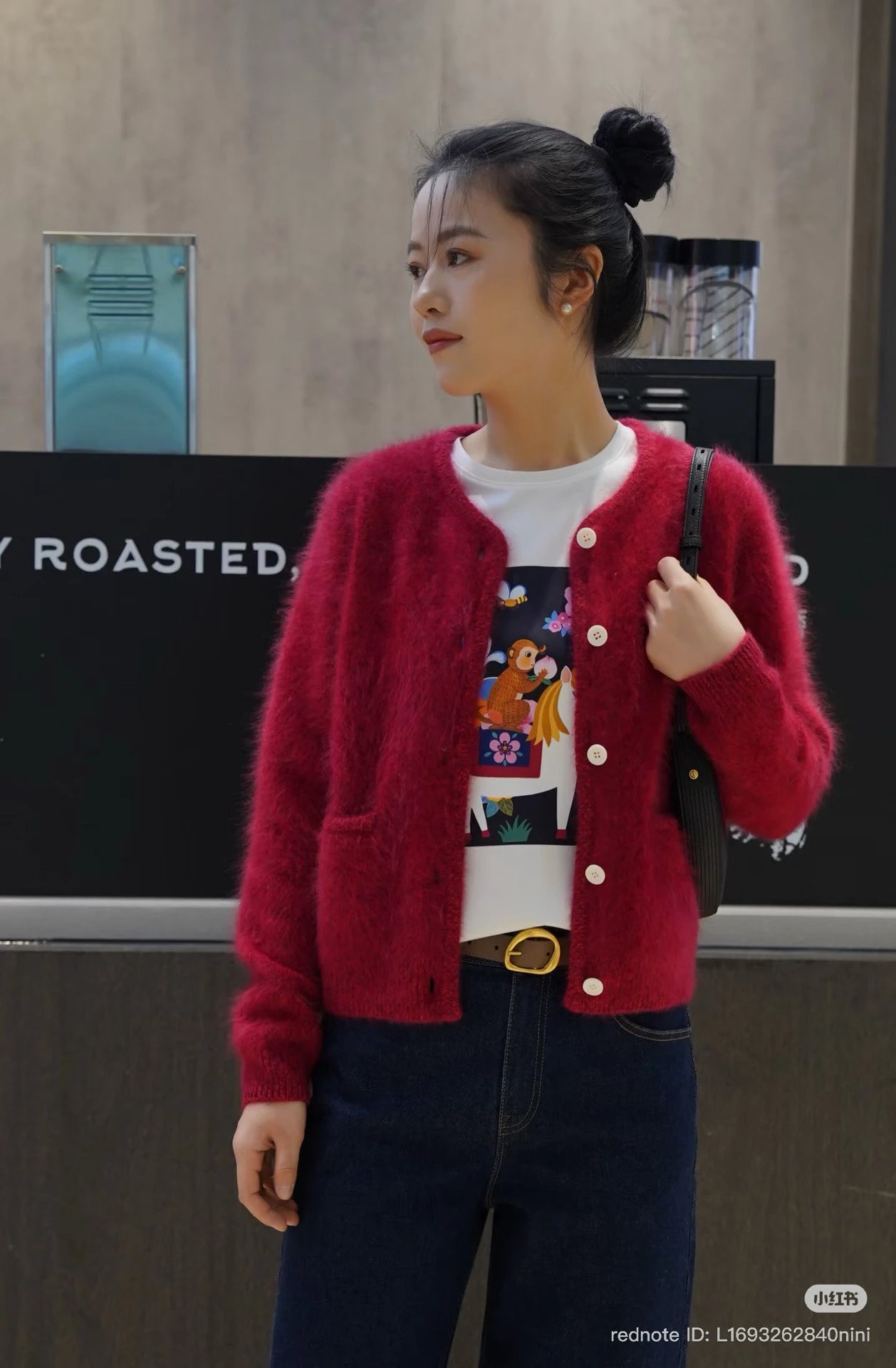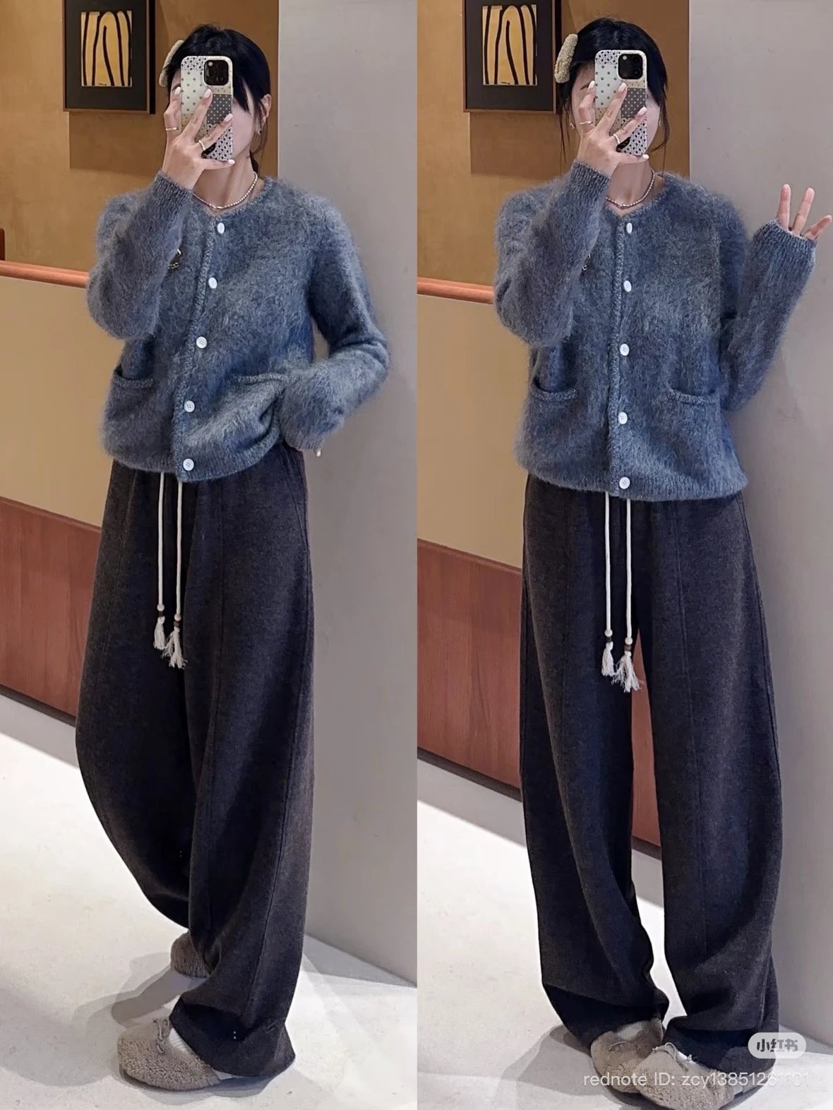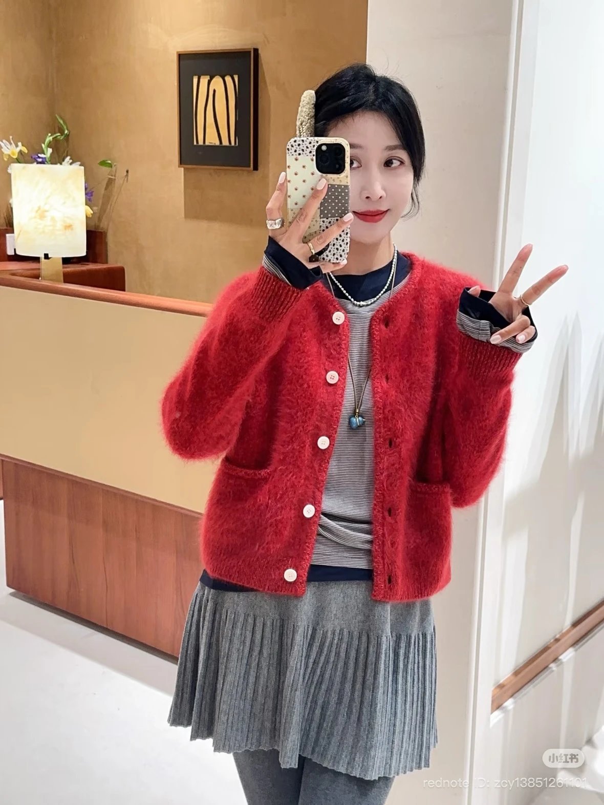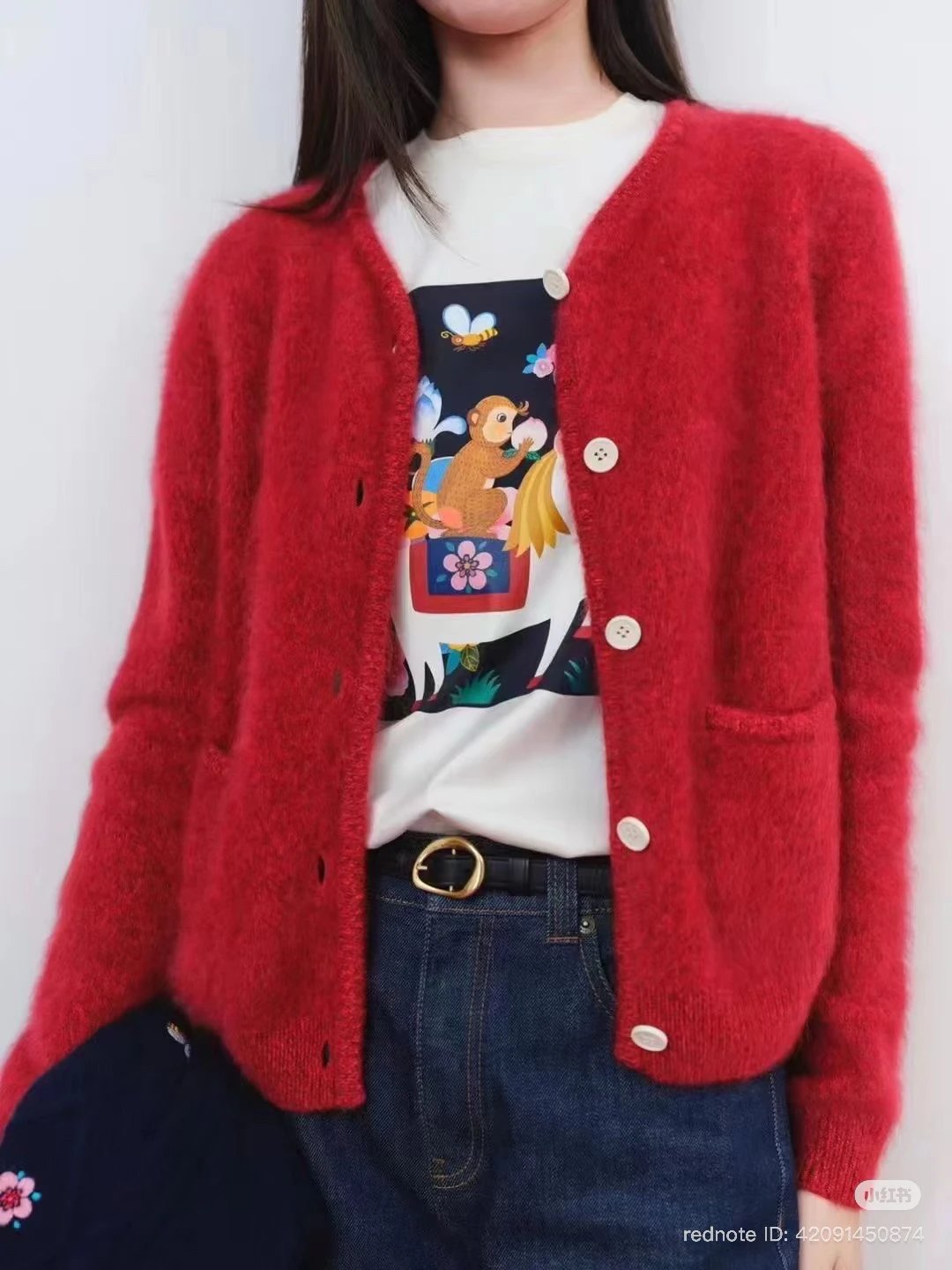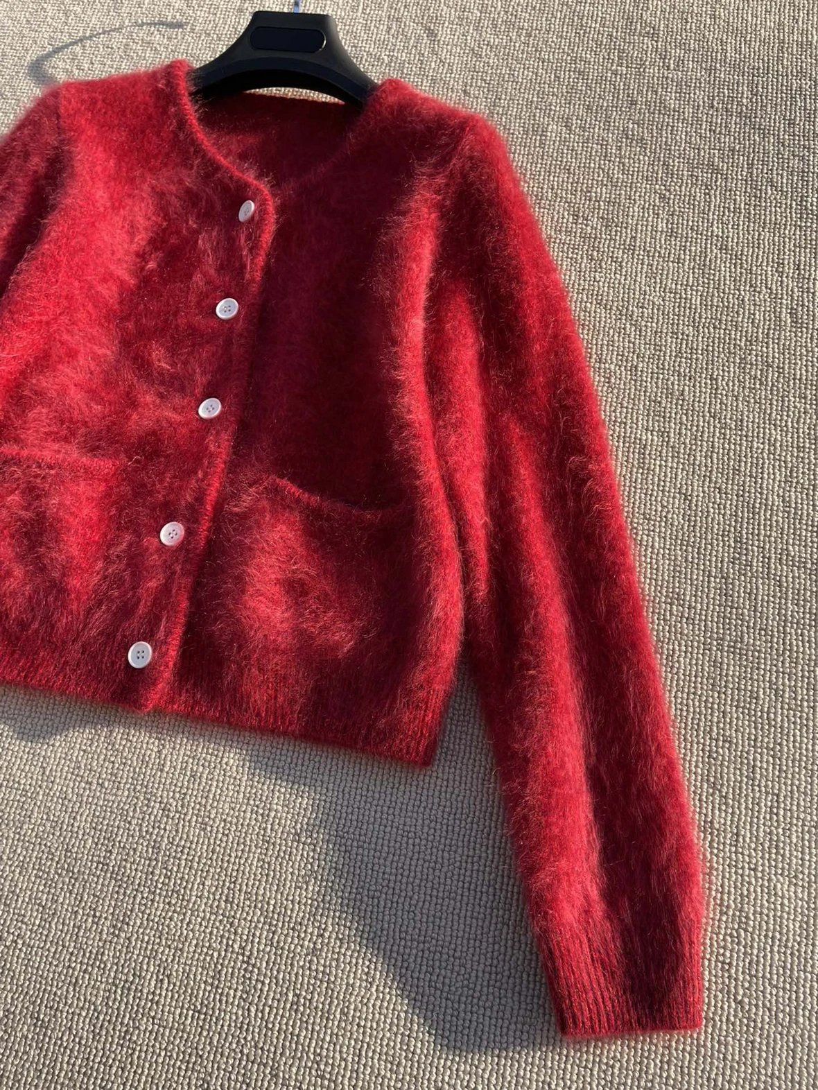 重磅渠道 IC合股羊绒拉毛开衫 红色/灰色 针织开衫外套 日本工厂拉毛技术