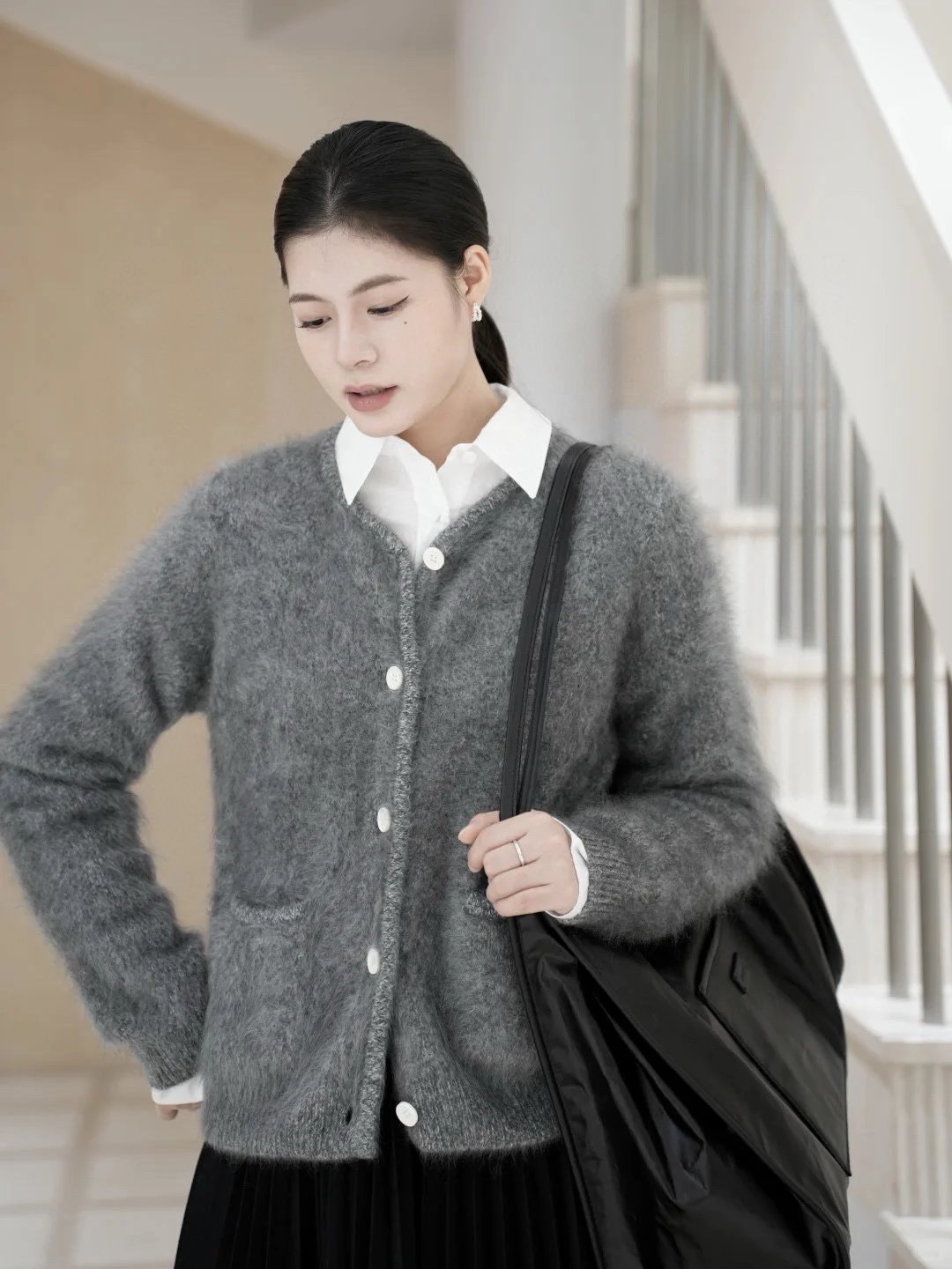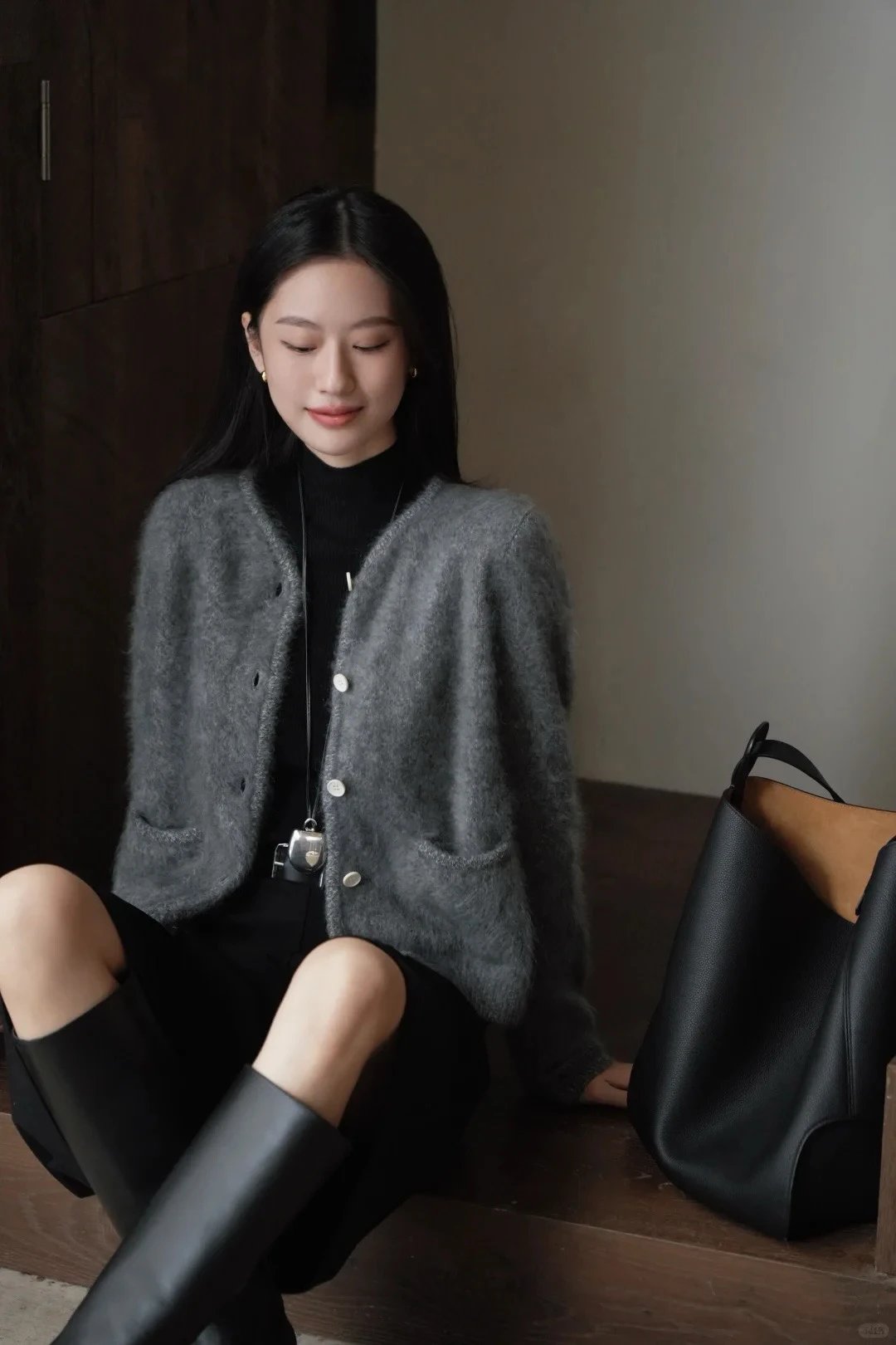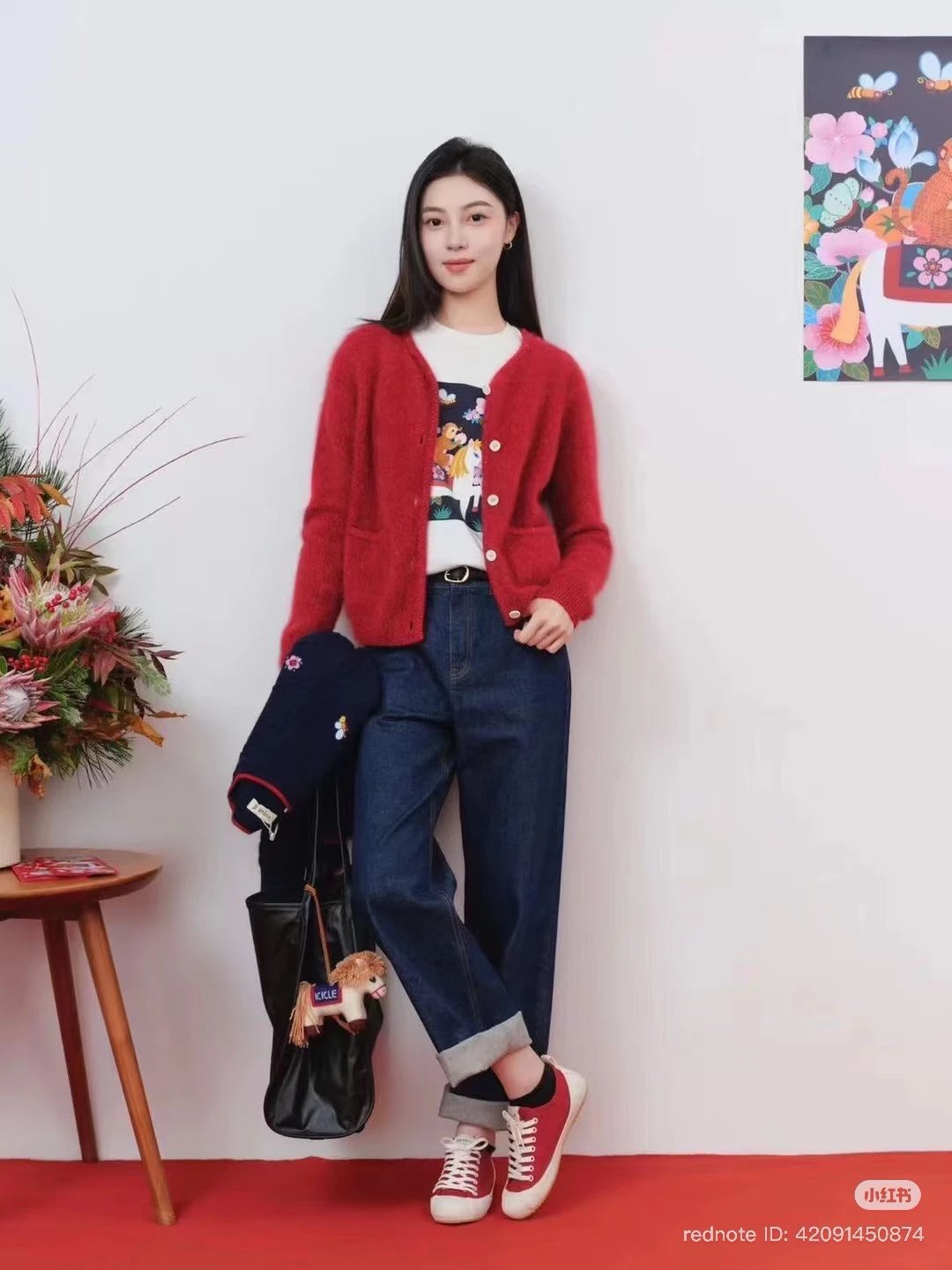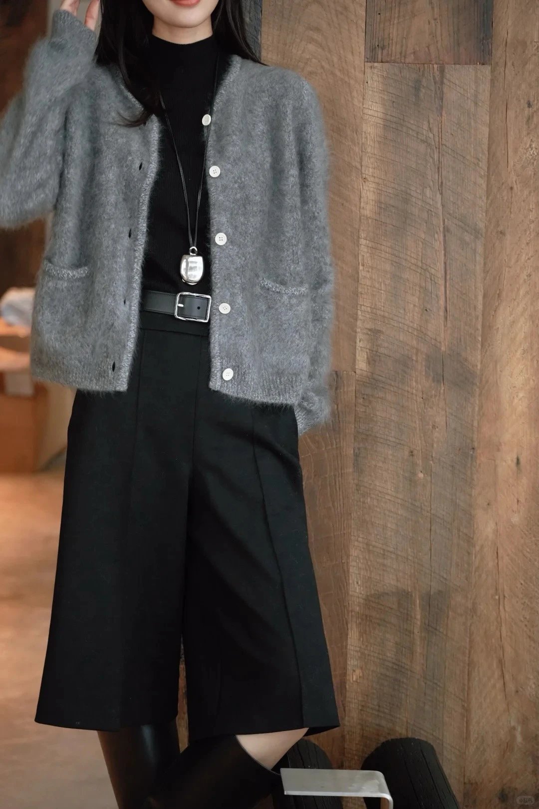 重磅渠道 IC合股羊绒拉毛开衫 红色/灰色 针织开衫外套 日本工厂拉毛技术