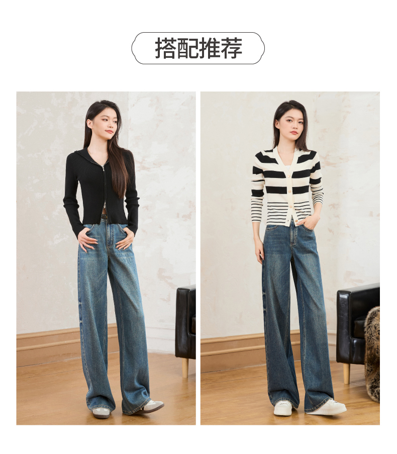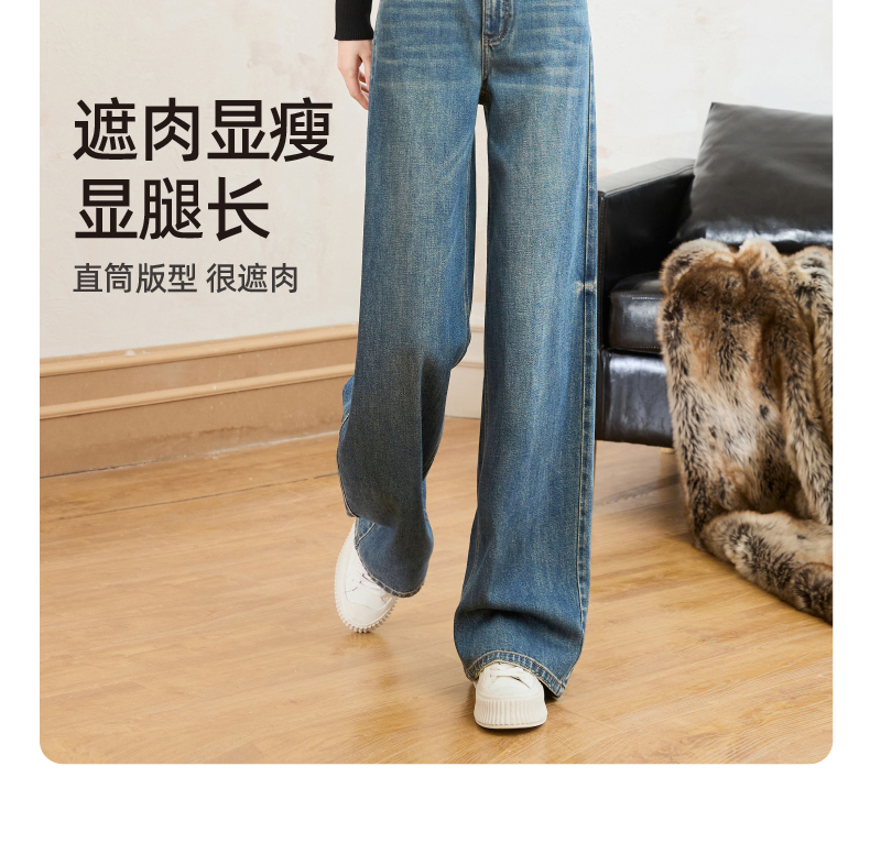 【时尚洗水-宽直筒裤】逸阳秋季柔软舒适遮肉显瘦垂顺阔腿牛仔裤子1439