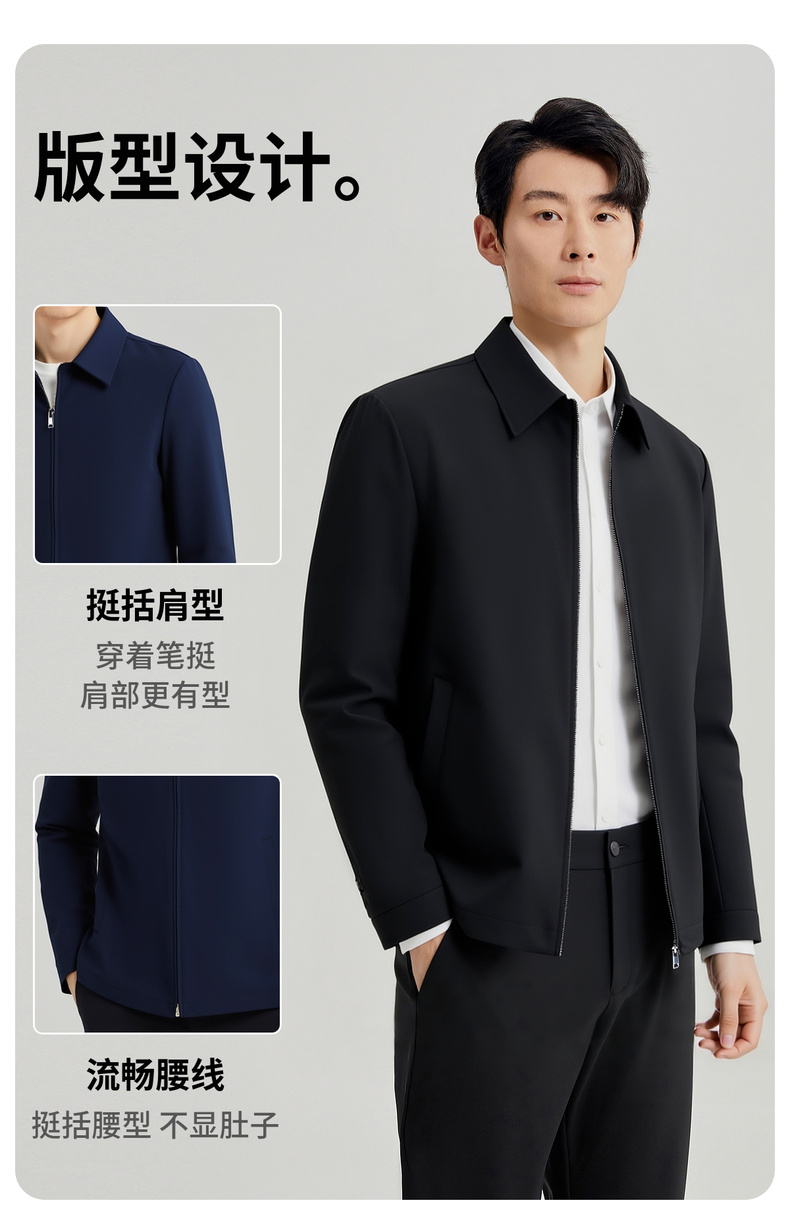 【含羊毛】圣得西男士夹克2025年秋季新款抗皱耐磨商务翻领外套