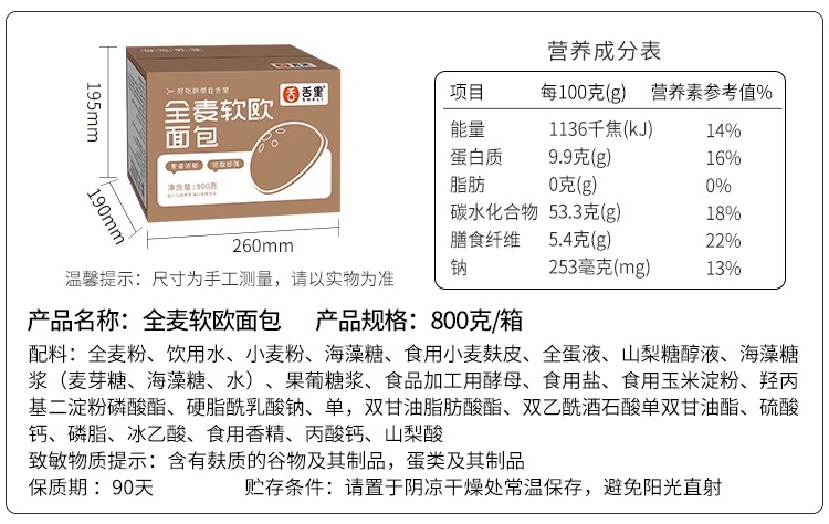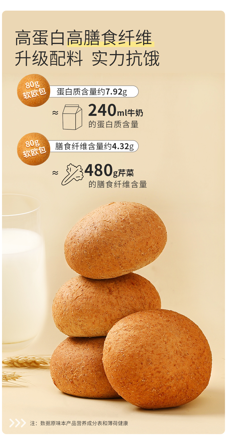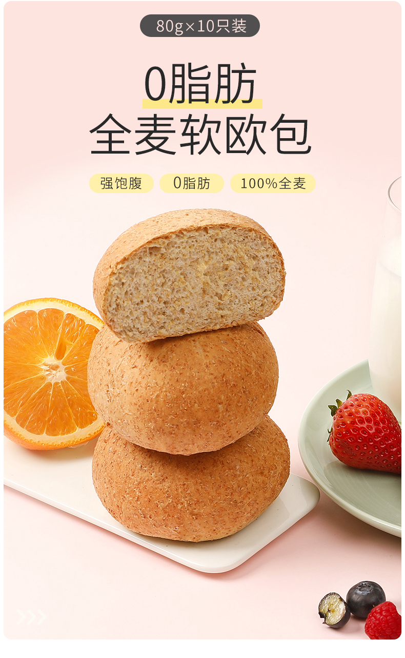 119-50 【全麦软欧包800g】0脂肪全麦欧包早餐代餐速食粗粮面包