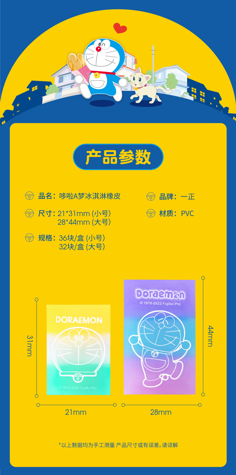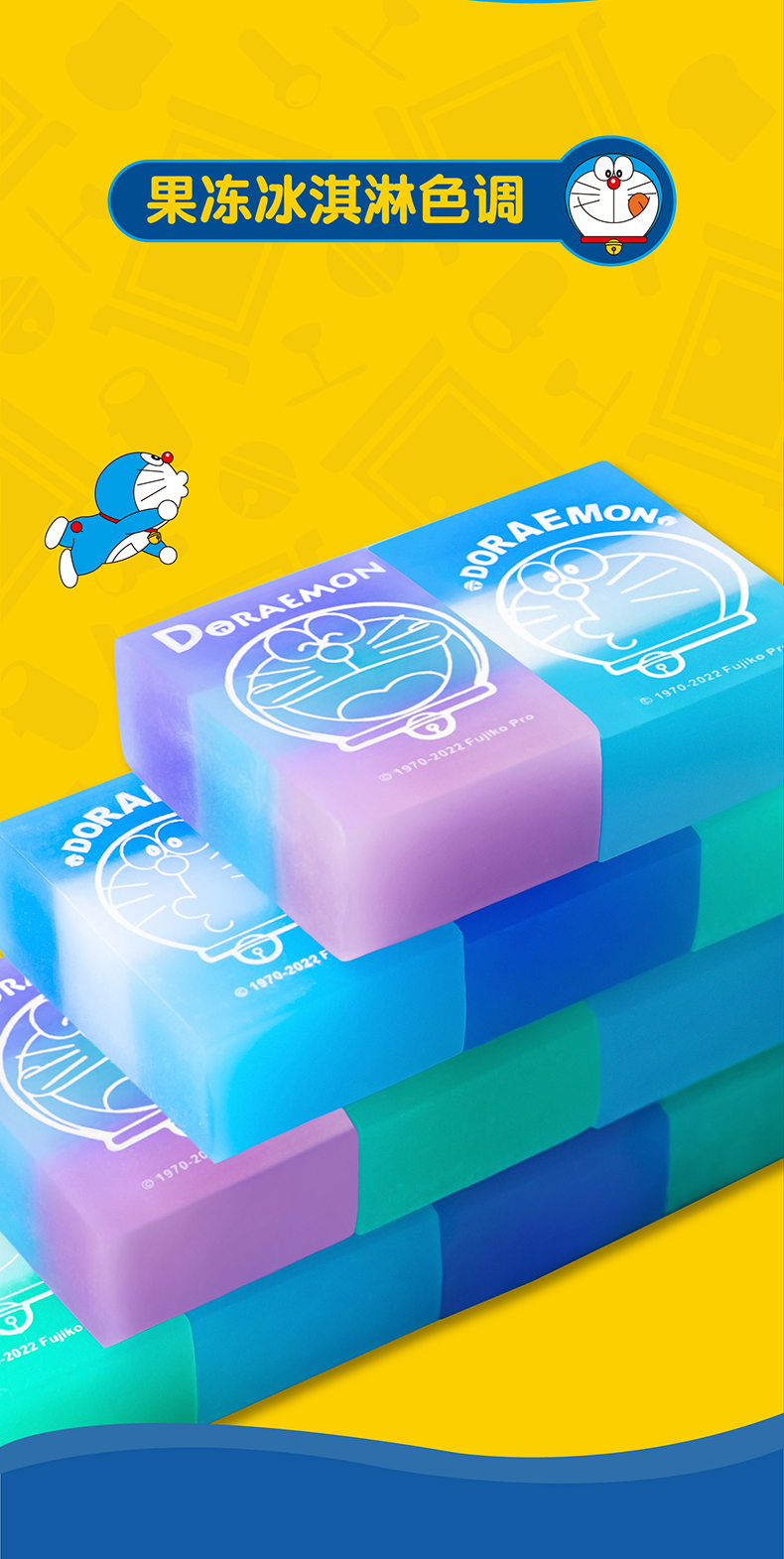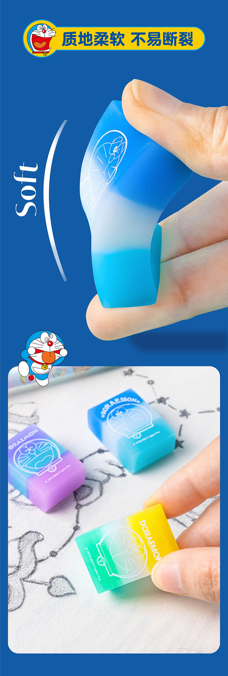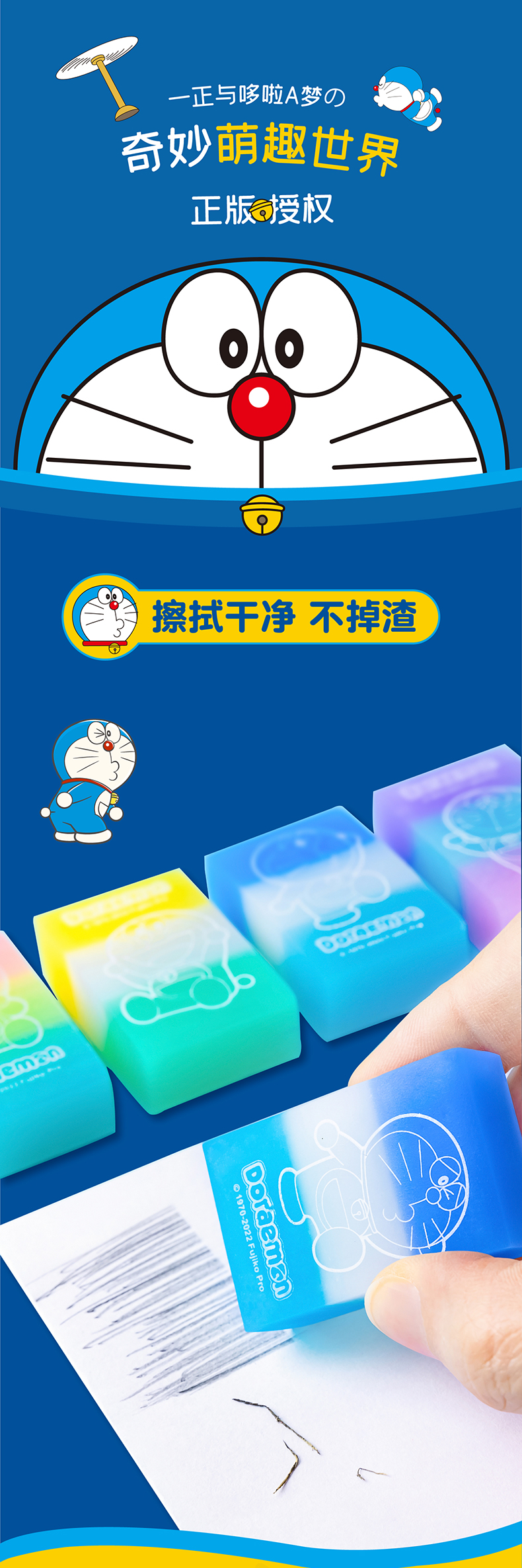 iigen一正学生橡皮擦彩色款正版哆啦a梦学生橡皮擦的干净少碎屑 蓝胖子学生文具儿童橡皮卡通橡皮擦