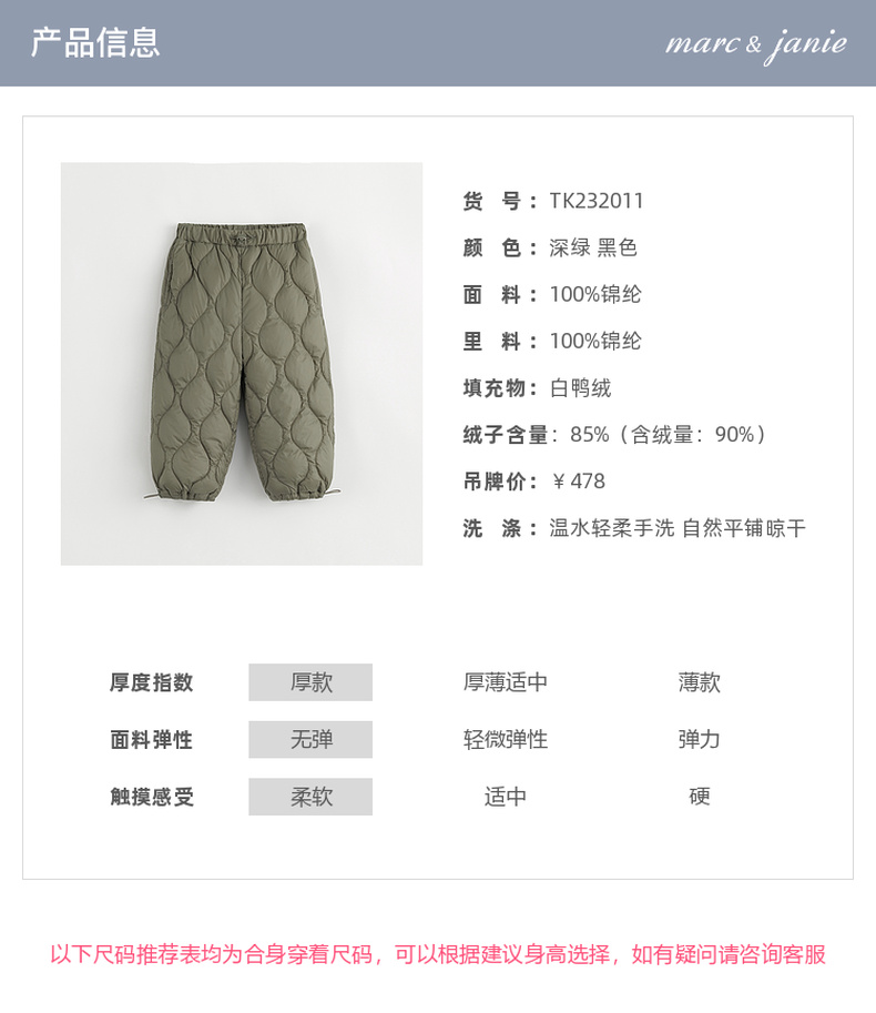 【三防羽绒裤】马克珍妮冬装男童山系户外超轻保暖羽绒裤232011