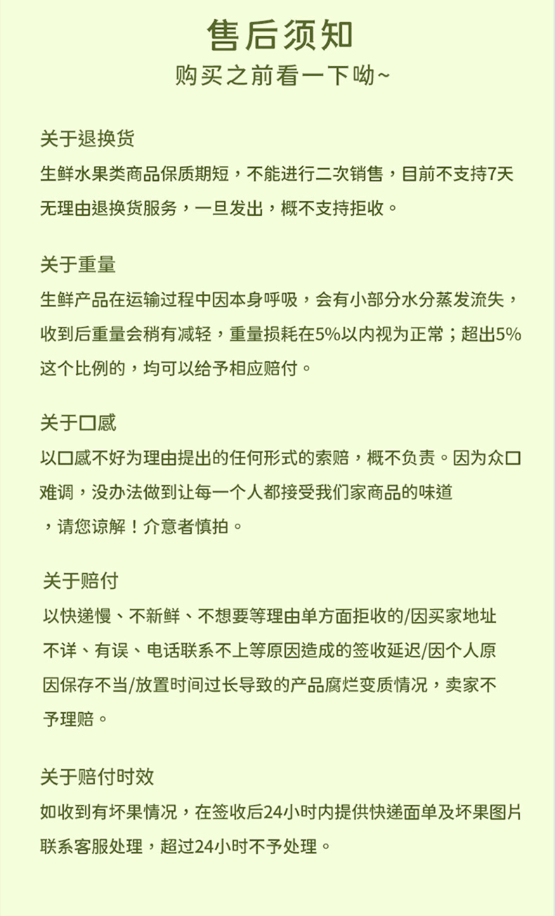 2.茶桔表皮青黄果属于正常情况嗷,青黄果一样美味,青黄果不在售后范围内