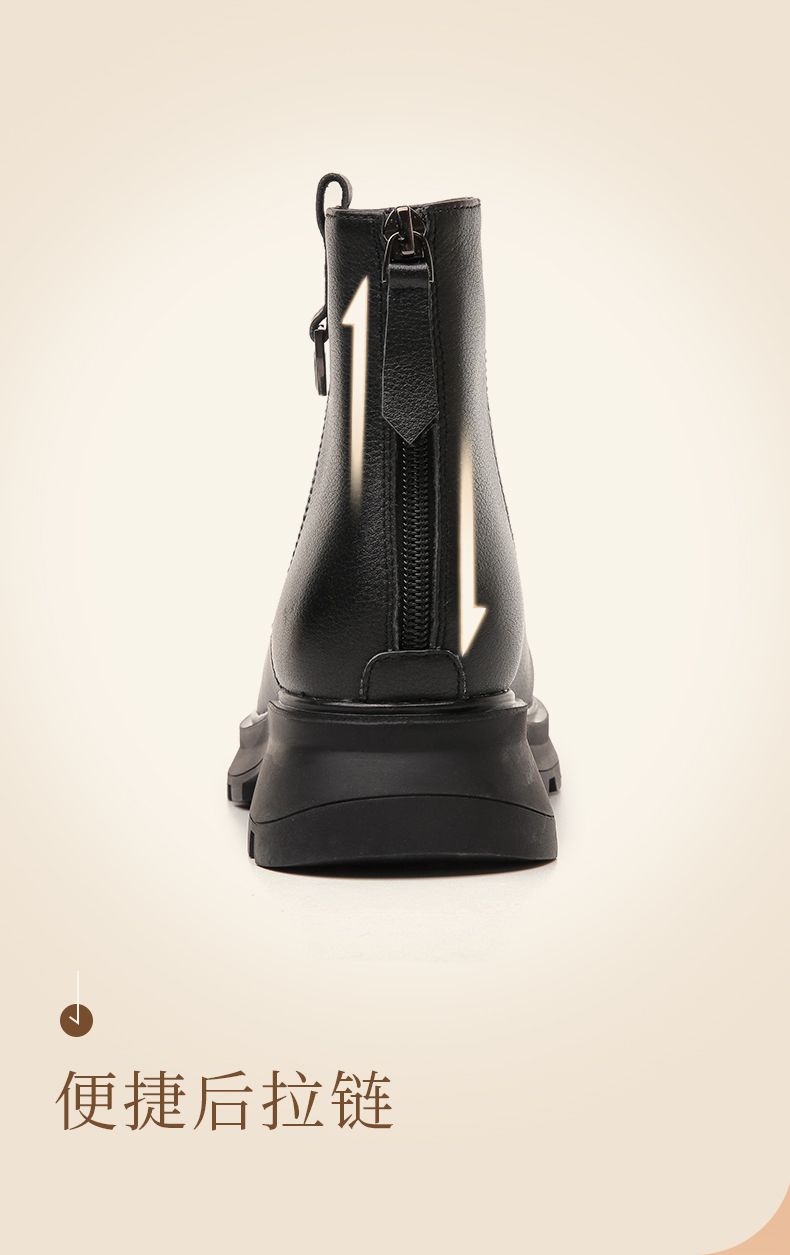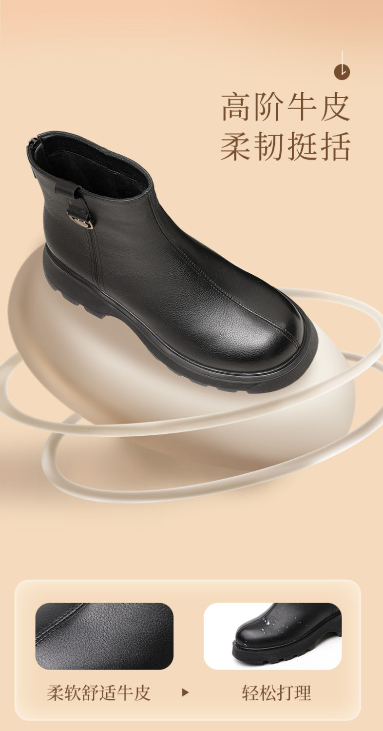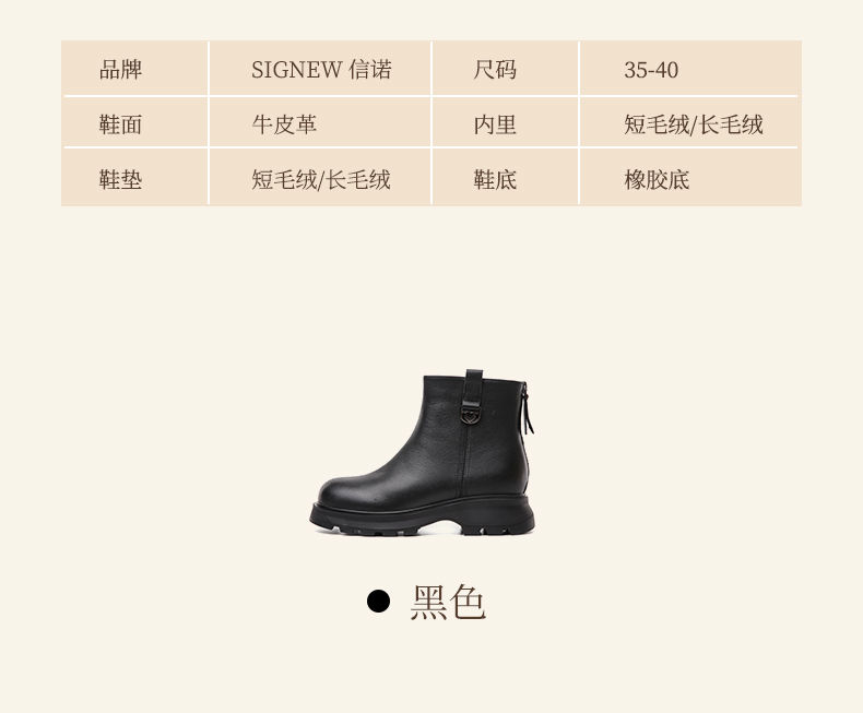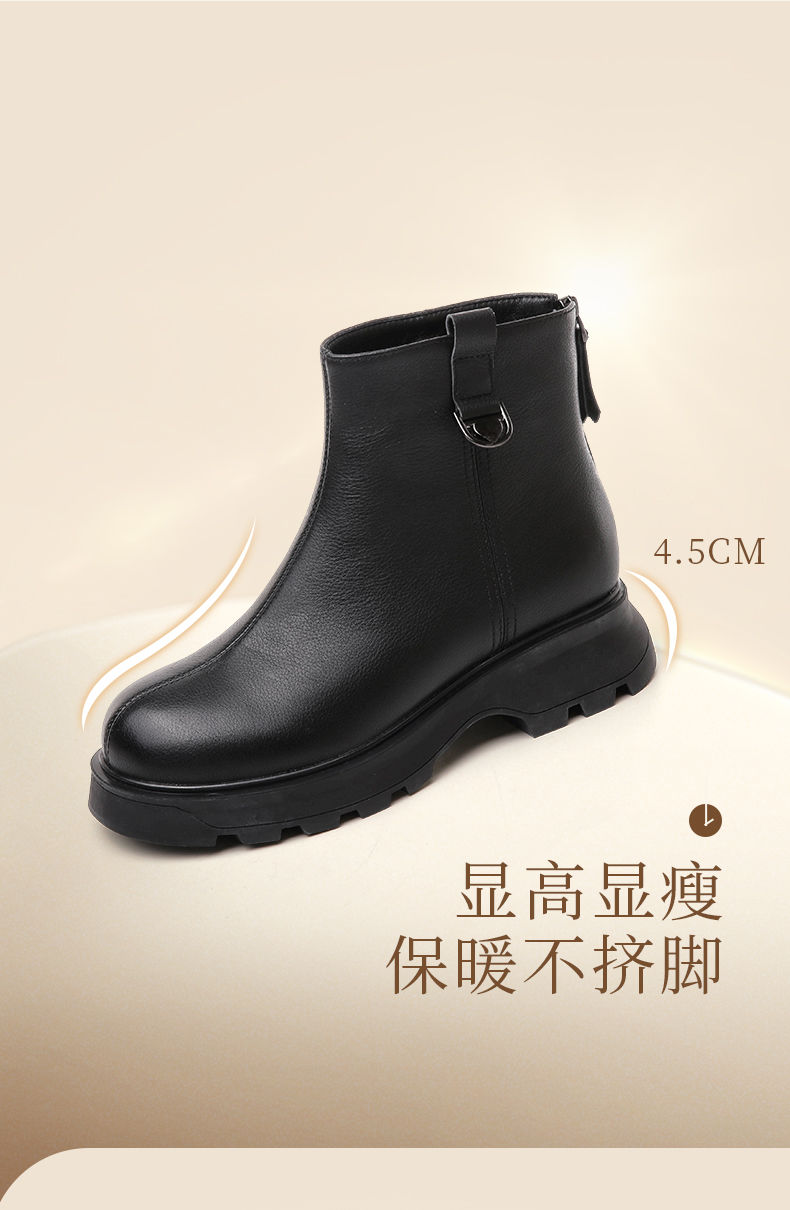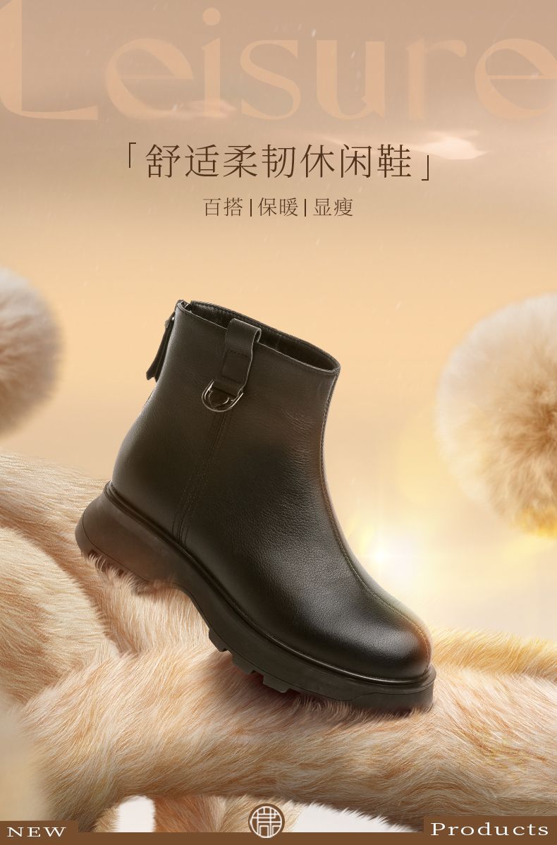 信诺真皮马丁靴妈妈加绒靴子2023冬新款短筒平底舒适短靴女皮靴23M516-1H