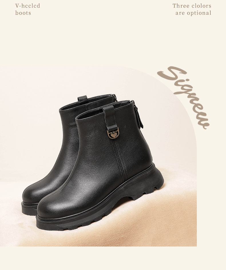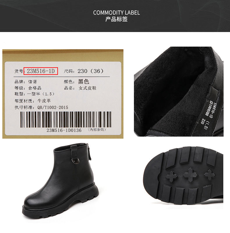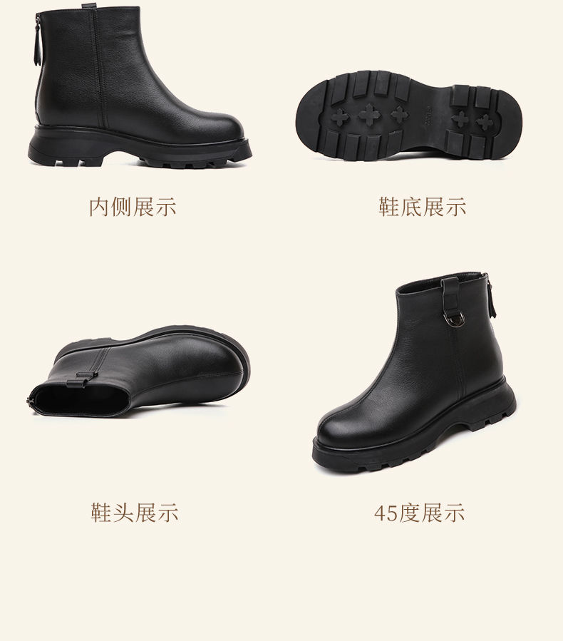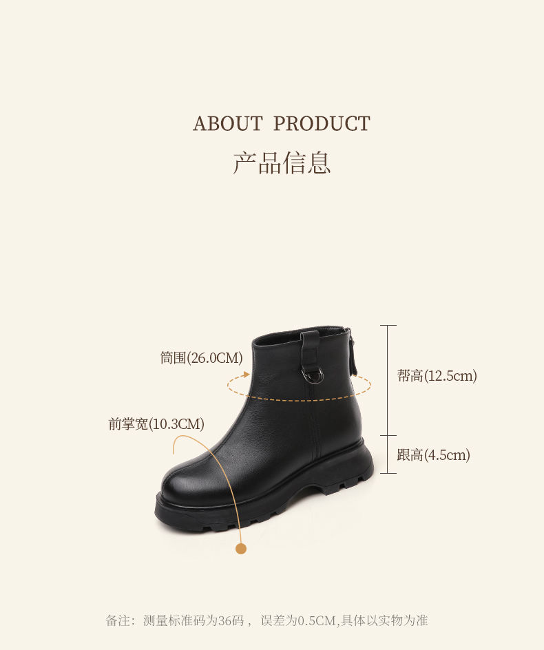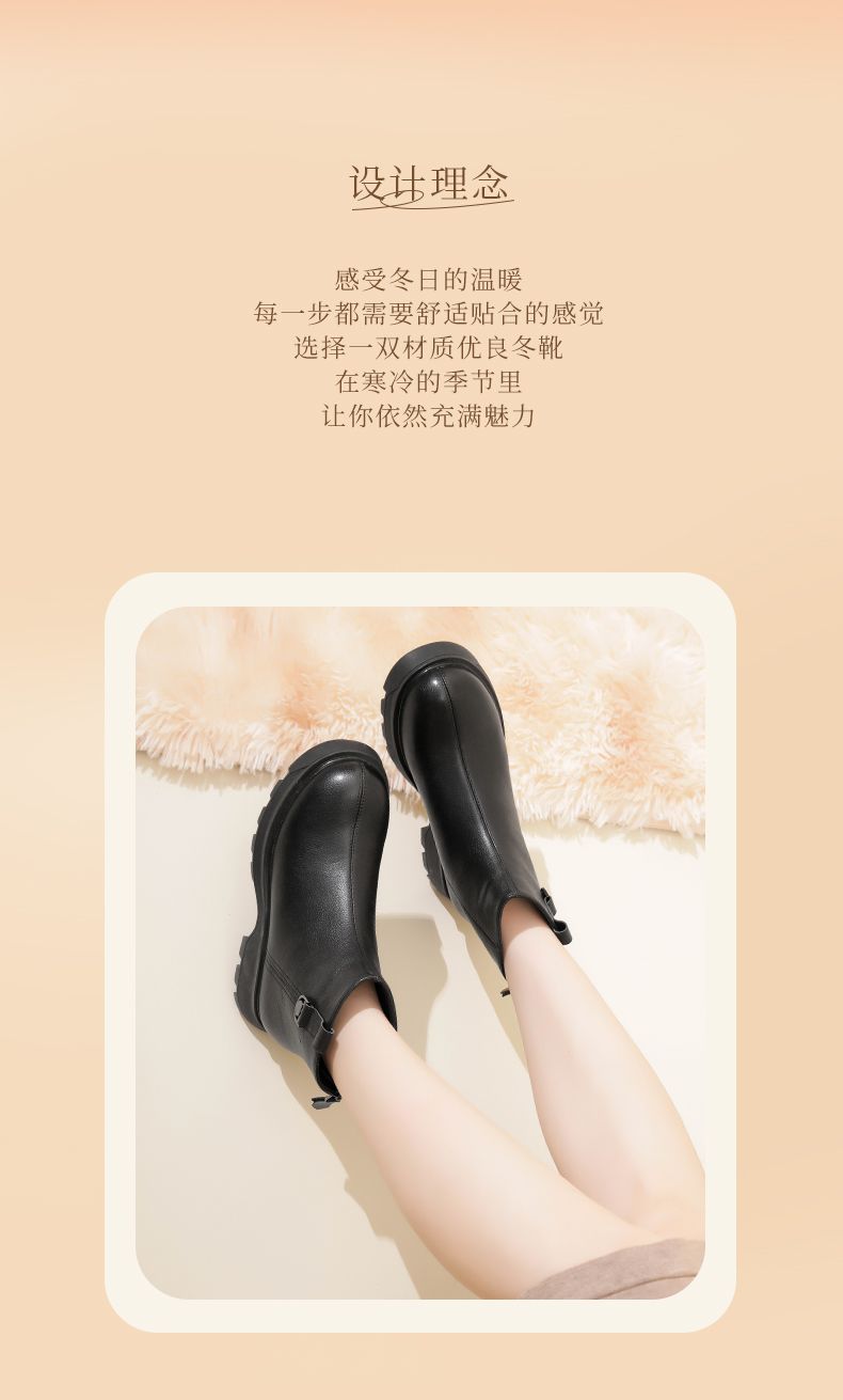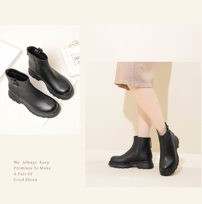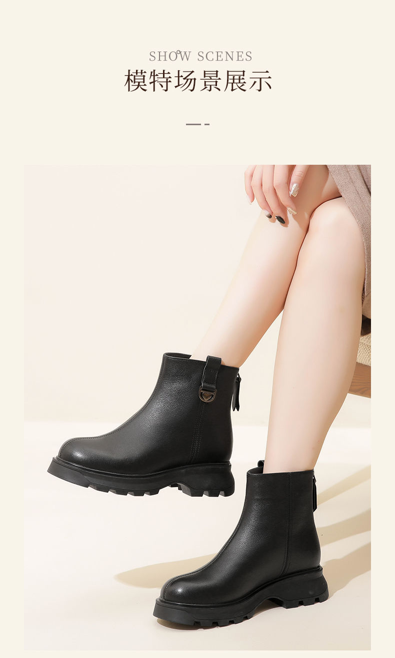 信诺真皮马丁靴妈妈加绒靴子2023冬新款短筒平底舒适短靴女皮靴23M516-1H