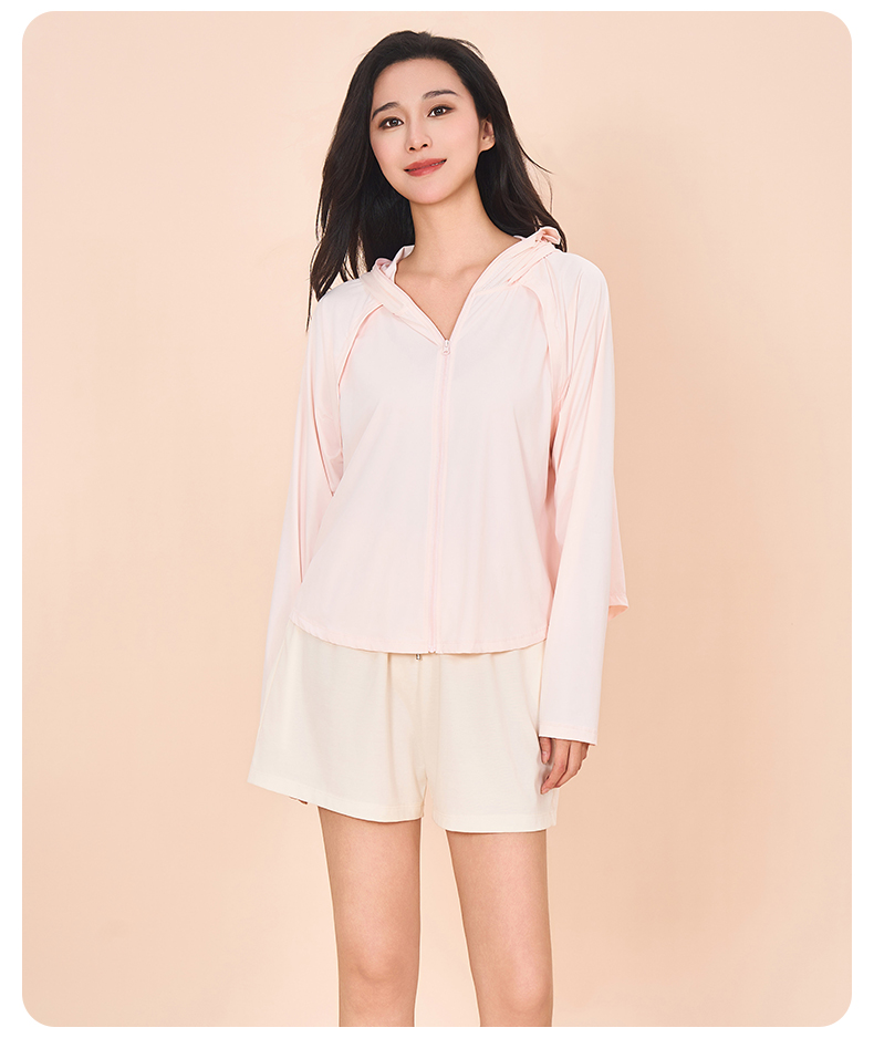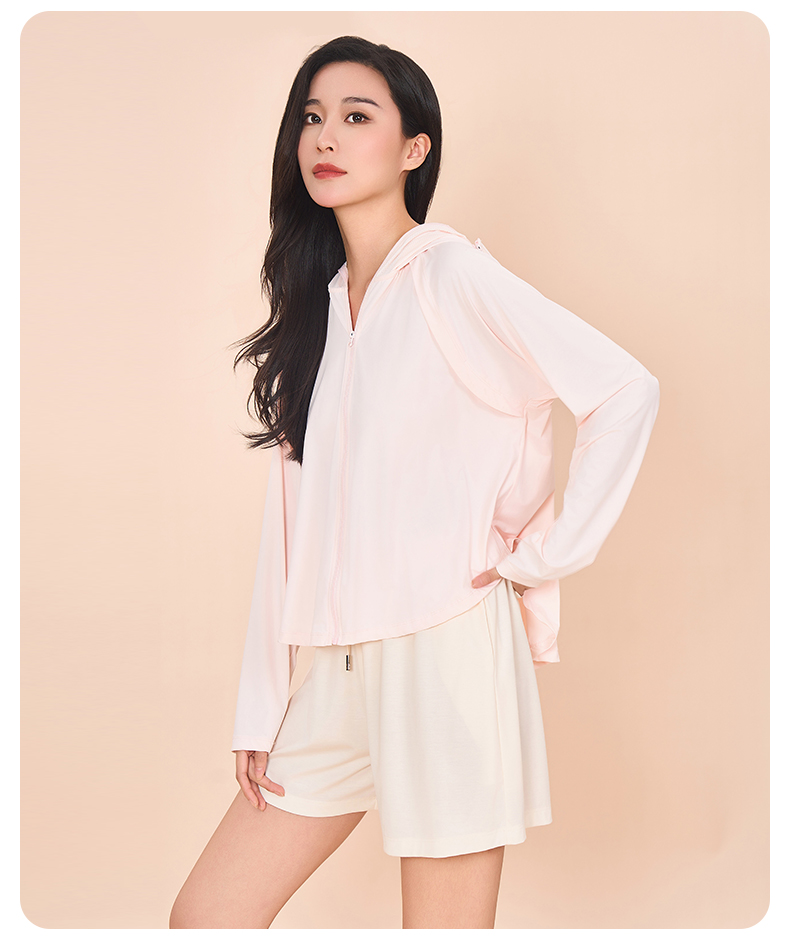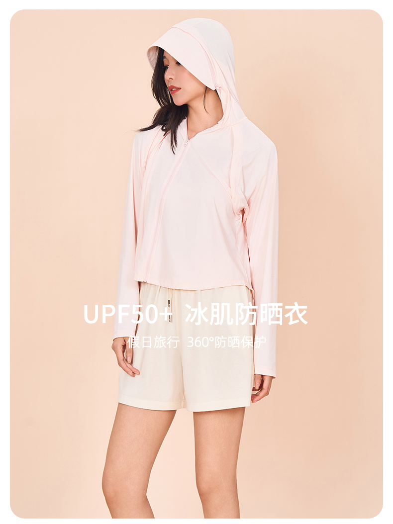 【商场同款】熳洁儿 夏日女士冰感防晒衣短款防晒防紫外线UPF50连帽大帽檐24223101